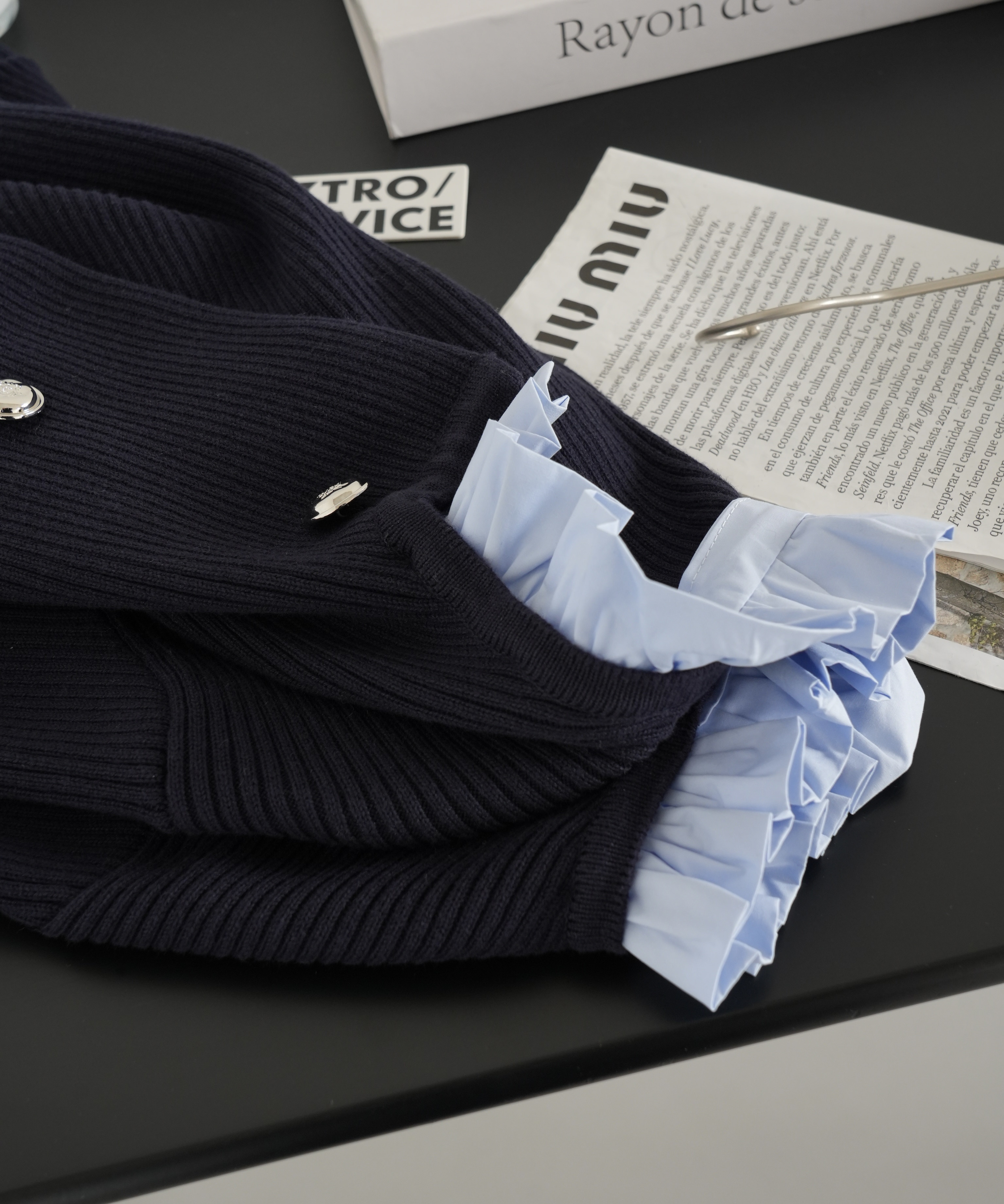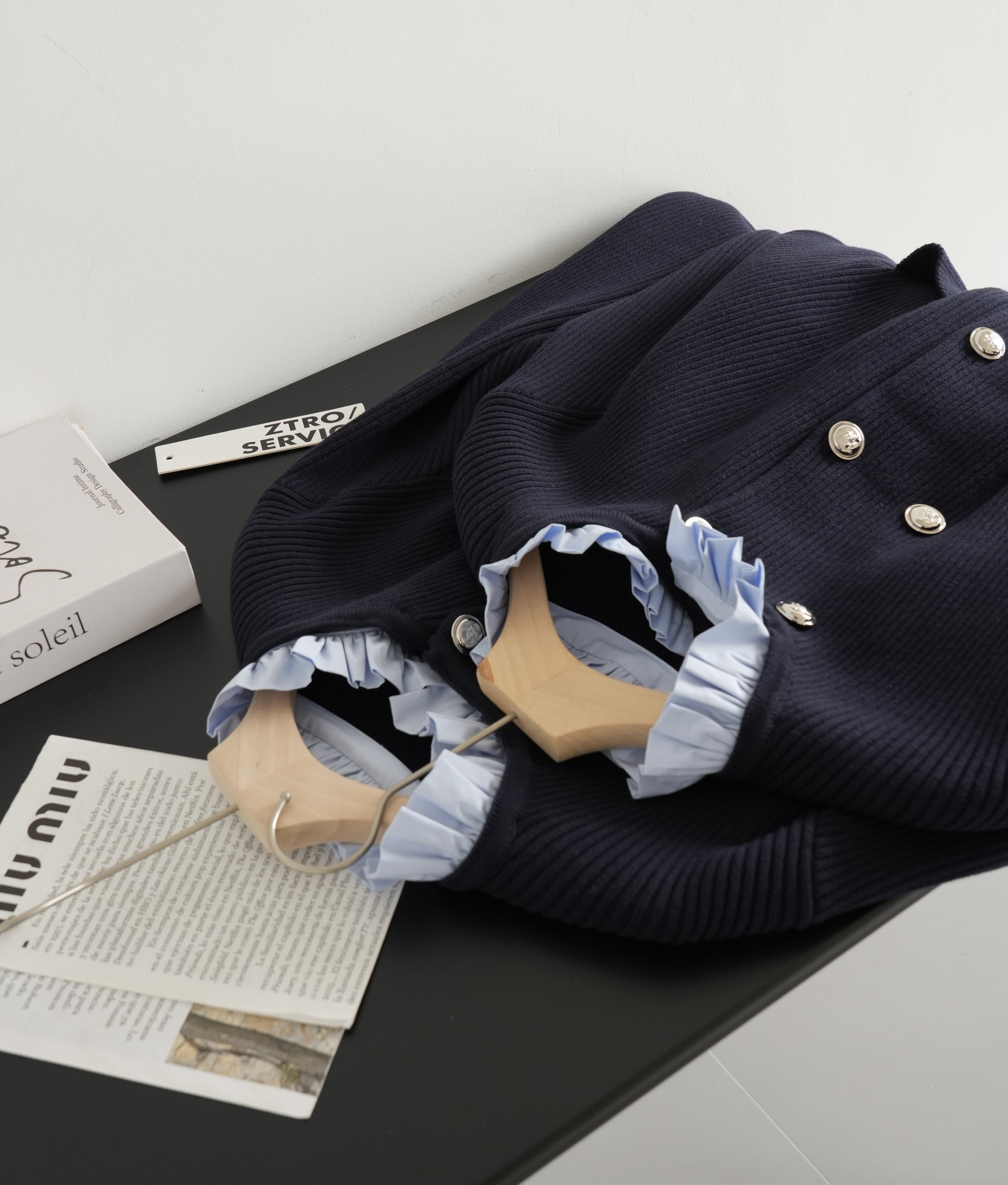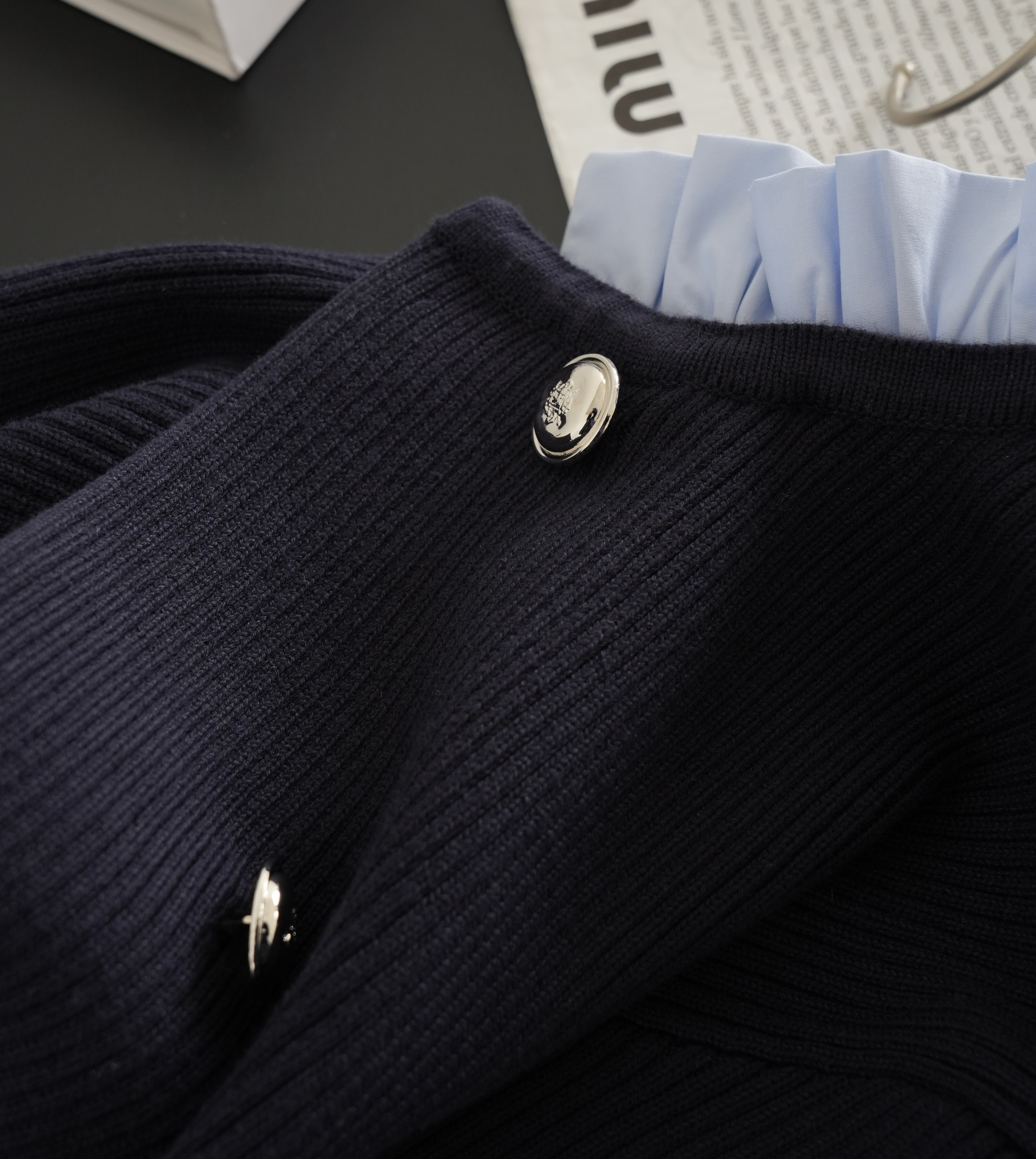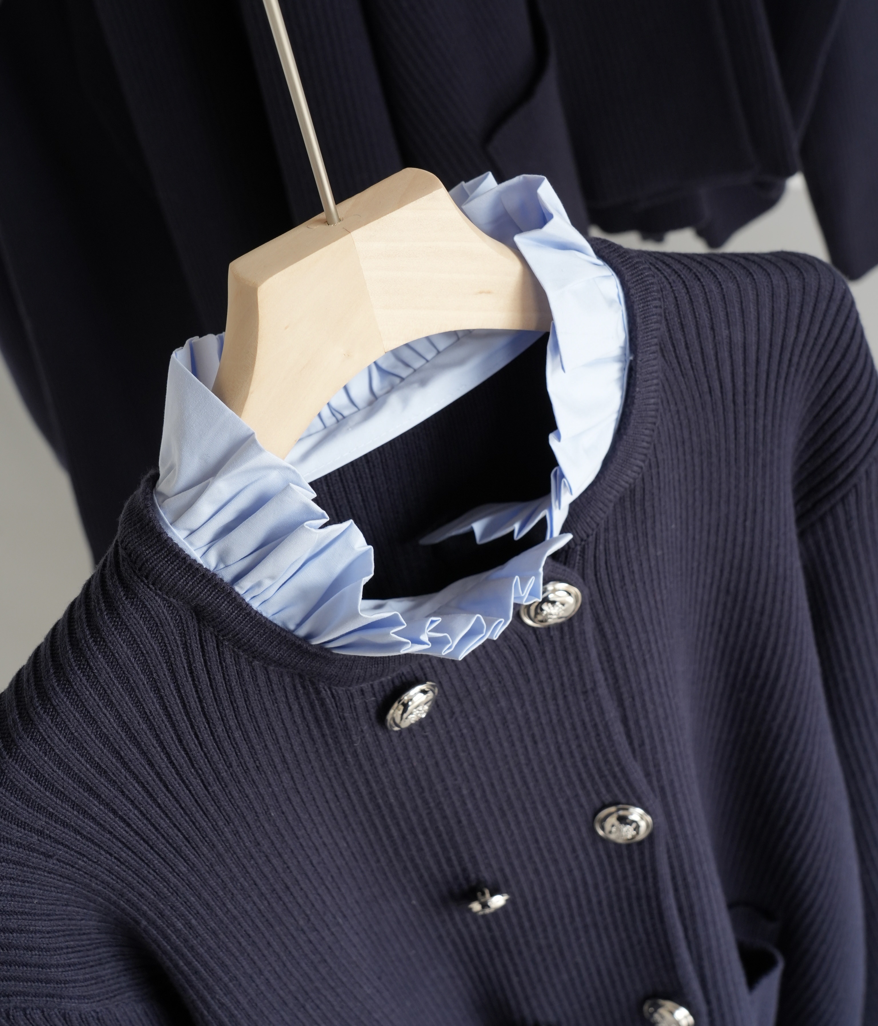 原价2000➕藏青色➕浅蓝色撞色设计花边领,