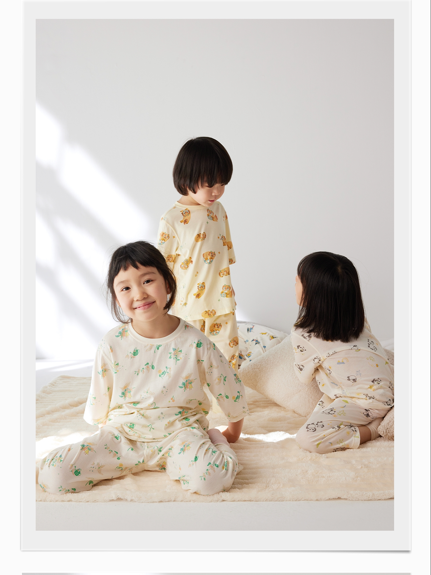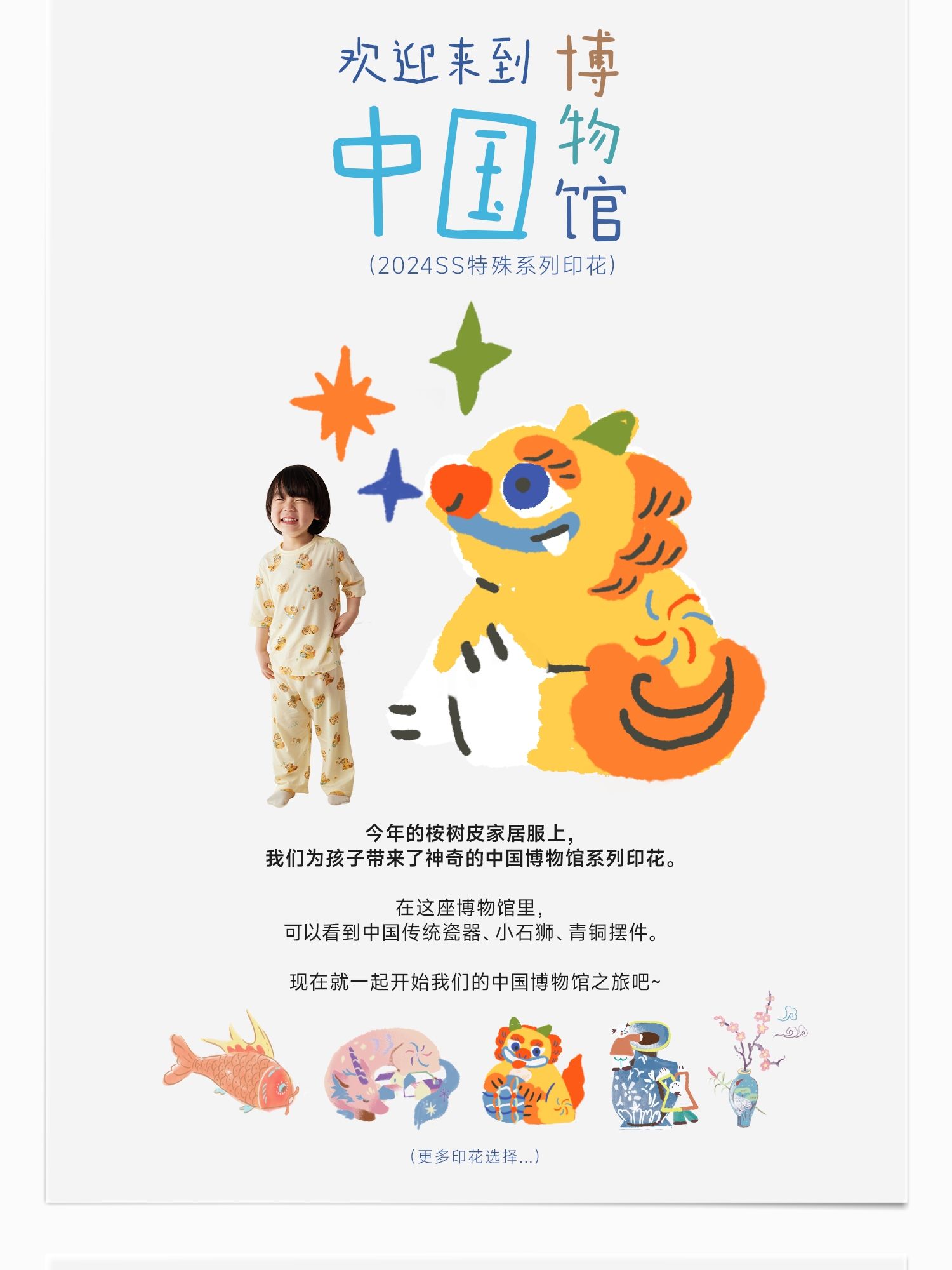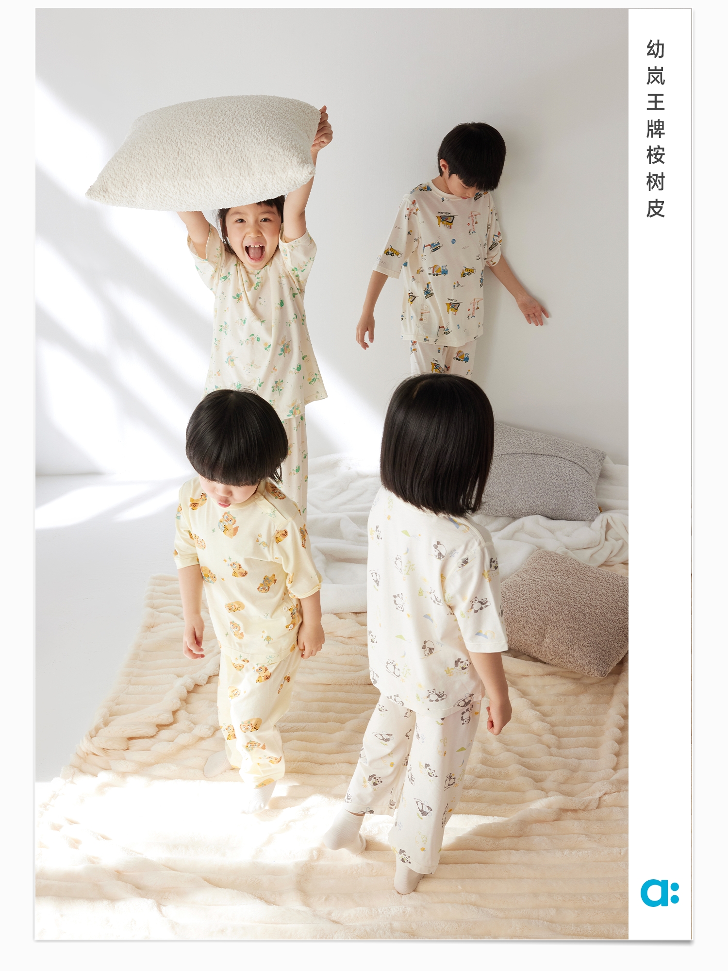 【好友特惠-中国博物馆系列】幼岚「王牌桉树皮」新中式七分袖儿童家居服ZY
