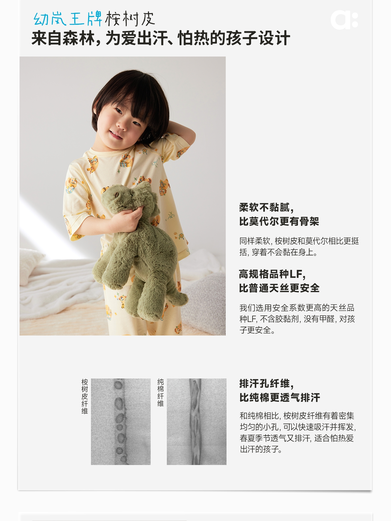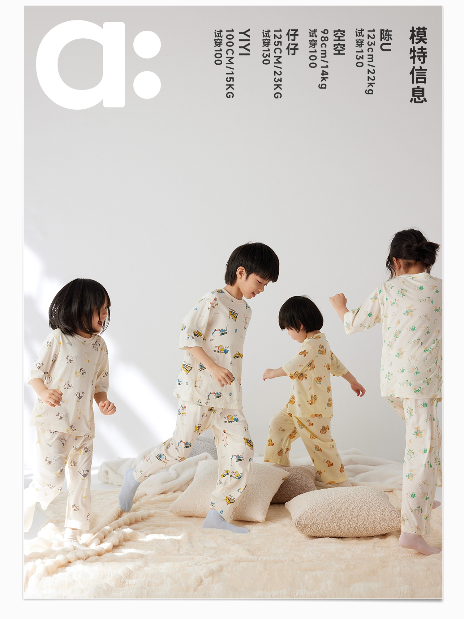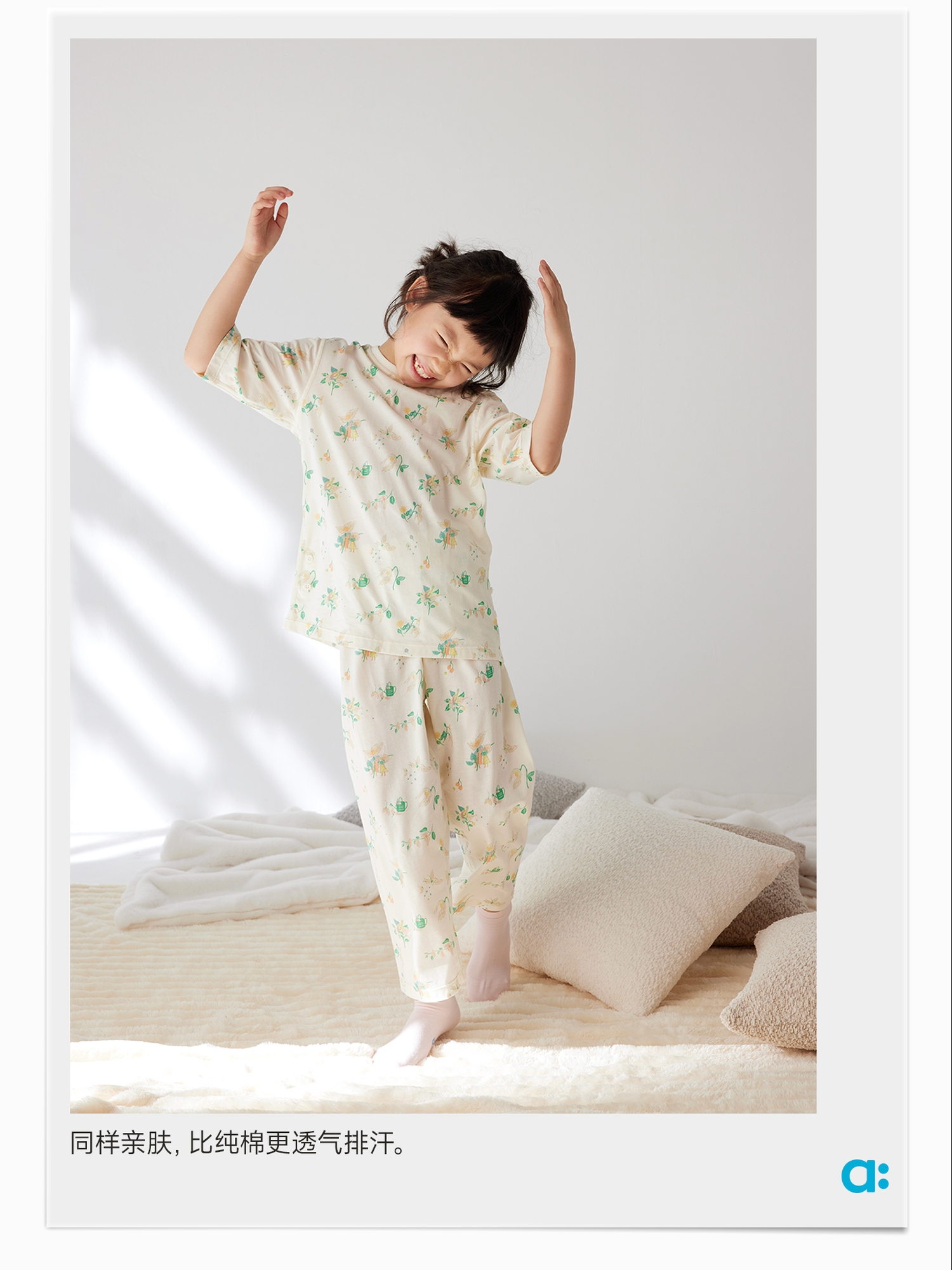 【好友特惠-中国博物馆系列】幼岚「王牌桉树皮」新中式七分袖儿童家居服ZY