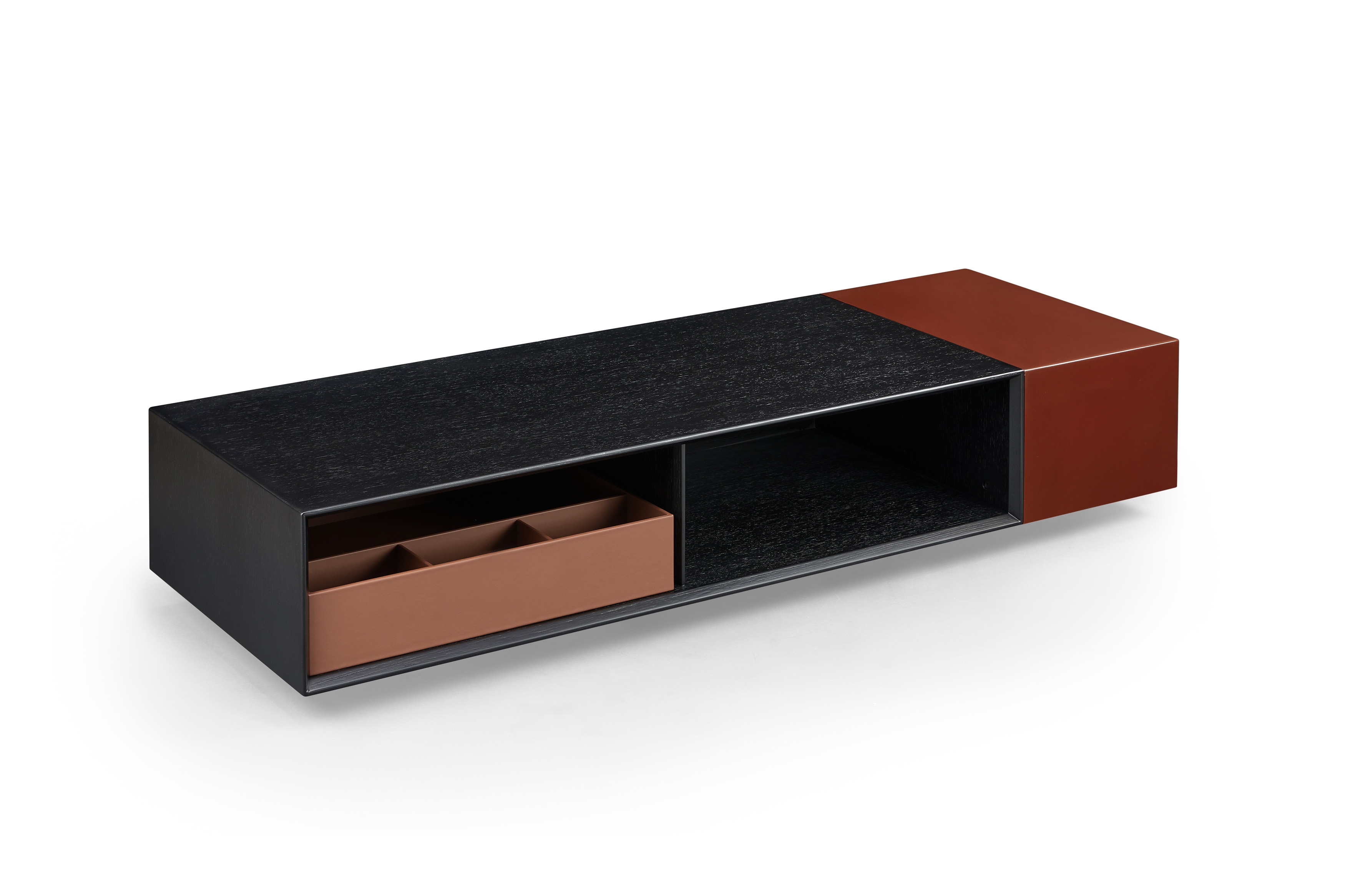 主材:拉丝红橡木皮+朱砂红抛光漆