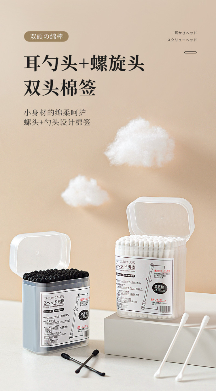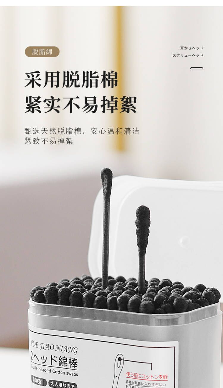 挖耳勺棉签粘掏耳朵黑色绵球棒大人专用一次性螺旋双头棉花棒