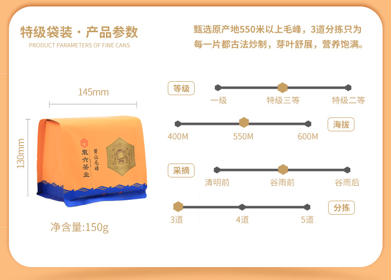 2025新茶上市徽六黄山毛峰口粮寻味300茶叶绿茶春茶150g