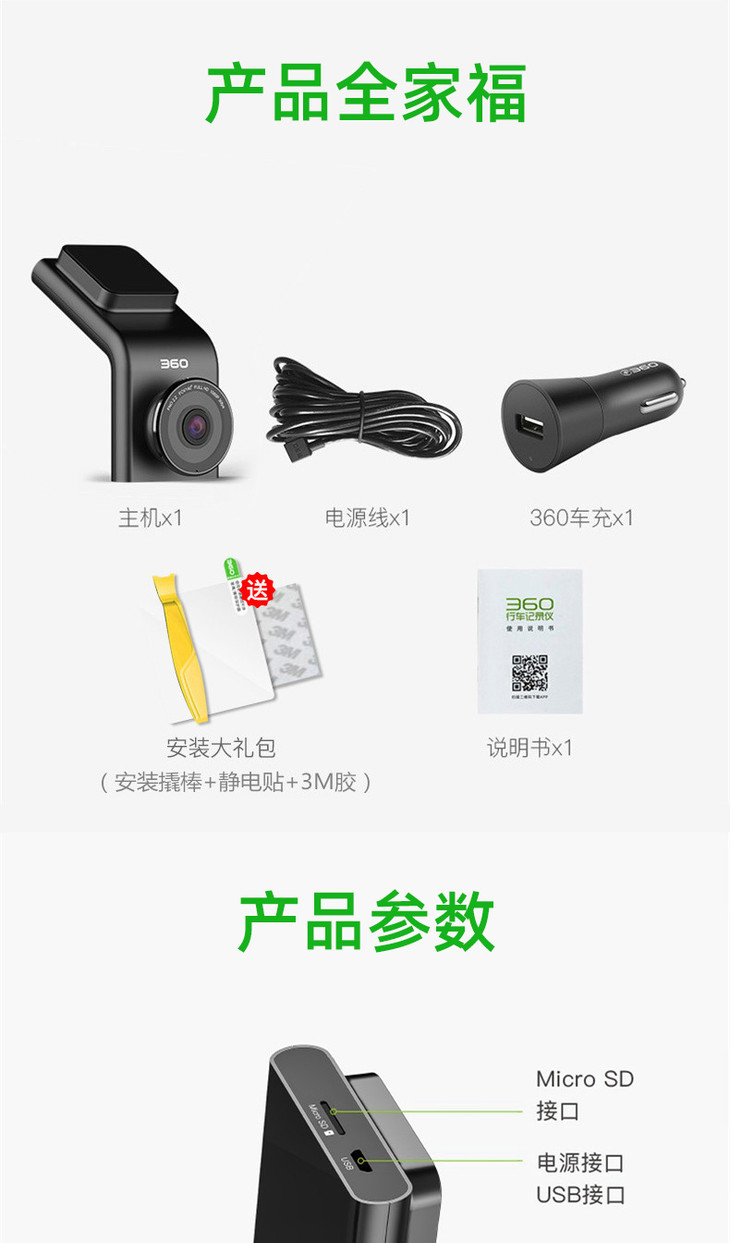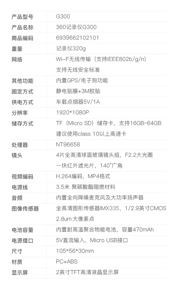 360行车记录仪G300为本机型号,如果不要内存卡,售价365元。