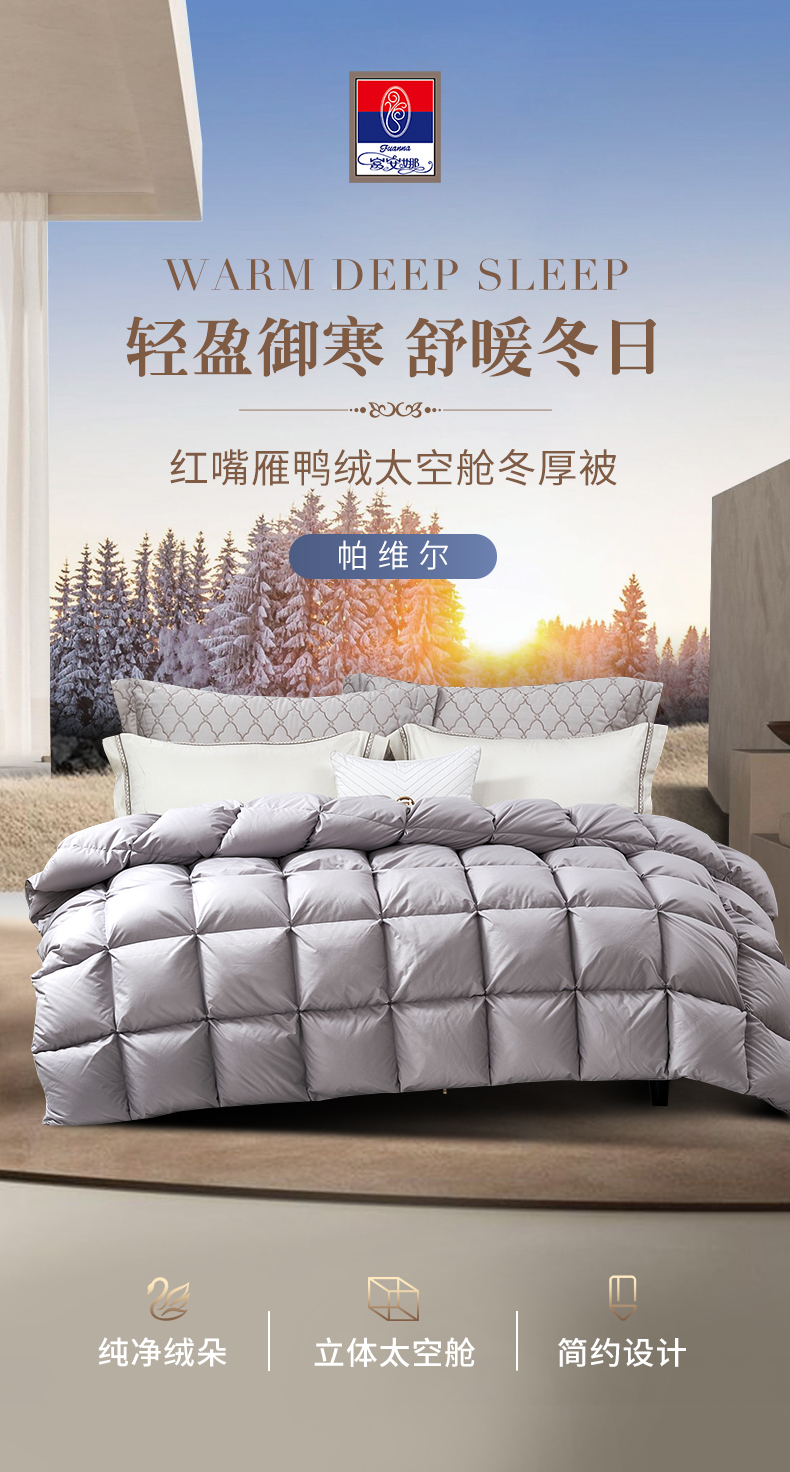【6楼】富安娜红嘴雁鸭绒太空舱冬厚被\帕维尔,牌牌价10800~11800元,三八爆品活动价1999~2199元