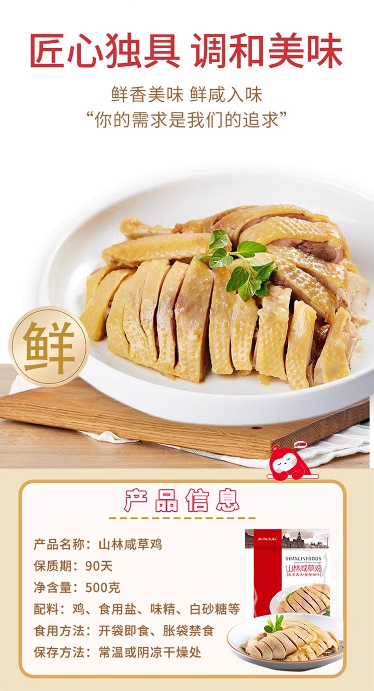 山林大红咸草鸡上海特产白斩鸡整只真空卤味熟食开袋即食盐焗鸡肉