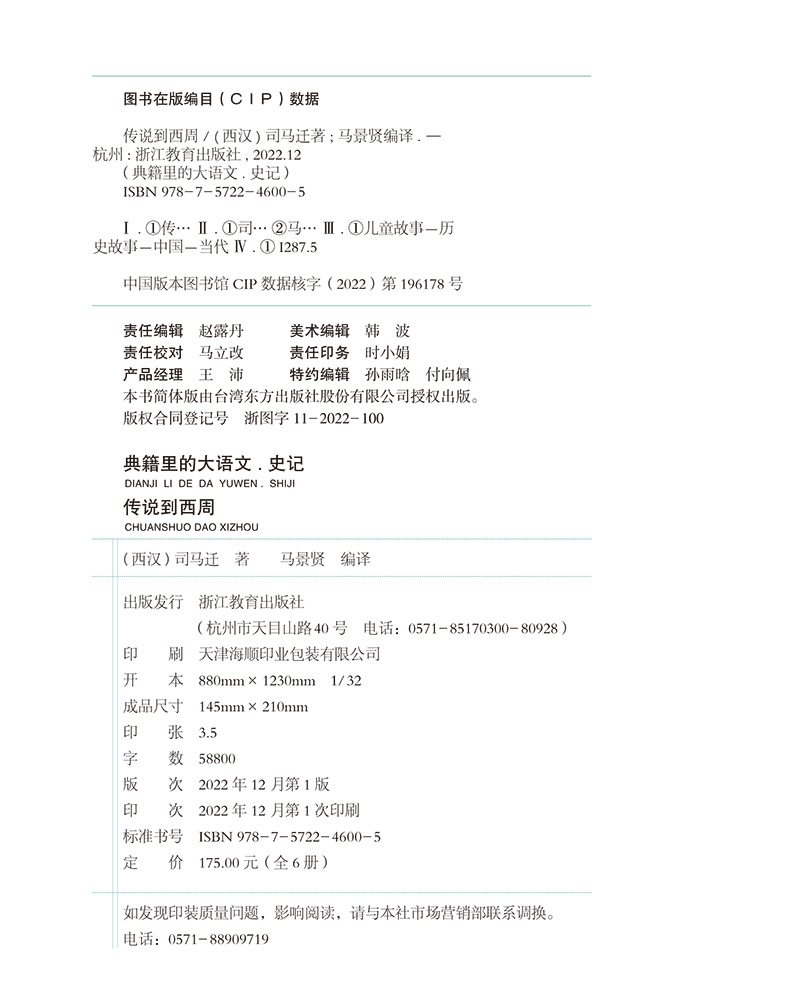 【新东方专享】典籍里的大语文:史记(全6册)名家给6-12岁孩子的史记通识读本