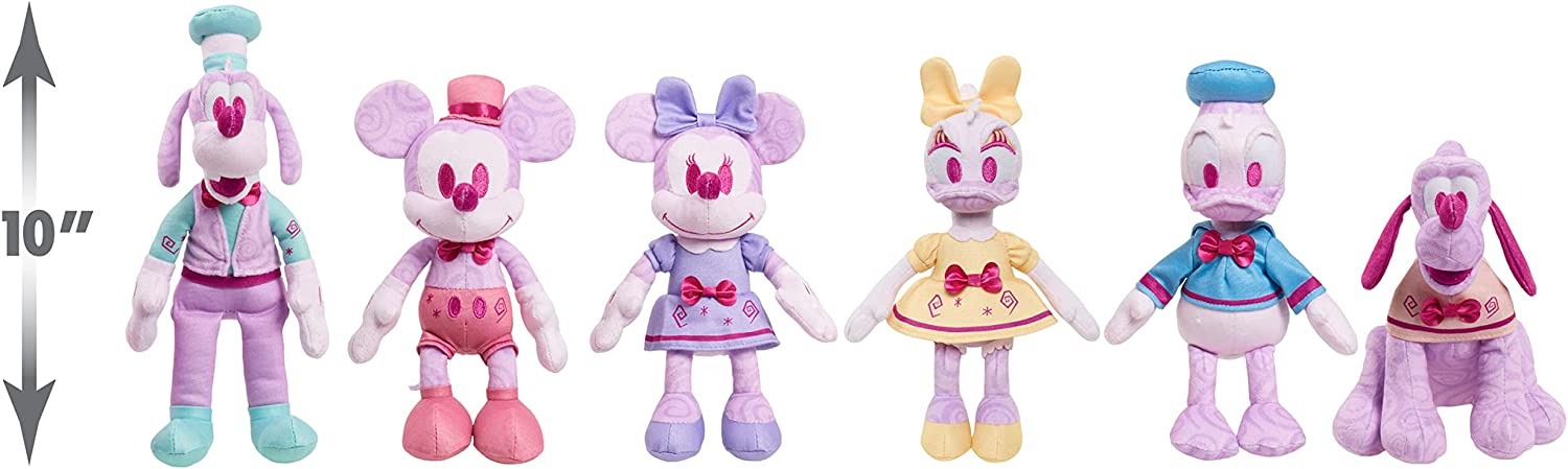 每套都包含4个毛绒玩具(Mad Tea Party 有6个):米奇、米妮、唐老鸭和高飞。特色就在于玩偶的肤色和衣着都变成纪念地标的色系,看着既特别又很可爱,现在封面款4.3折,官网已经售罄啦,买来送人是个不错的礼物呢。每个尺寸是25cm左右。