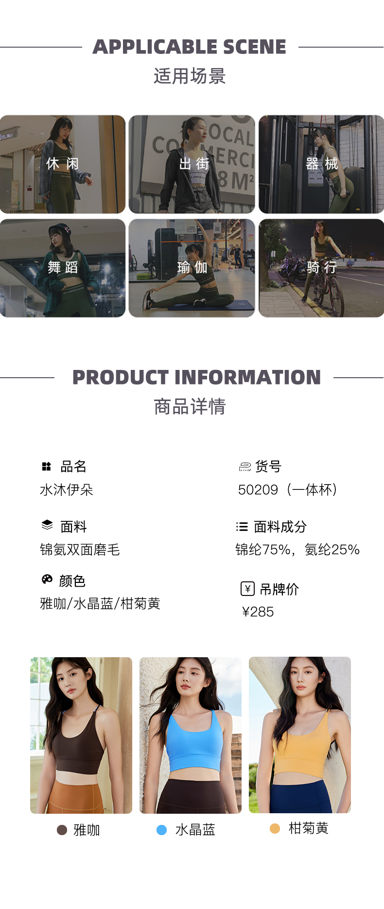水沐伊朵运动女健身衣透气一体式薄款背心有弹力瑜伽50209