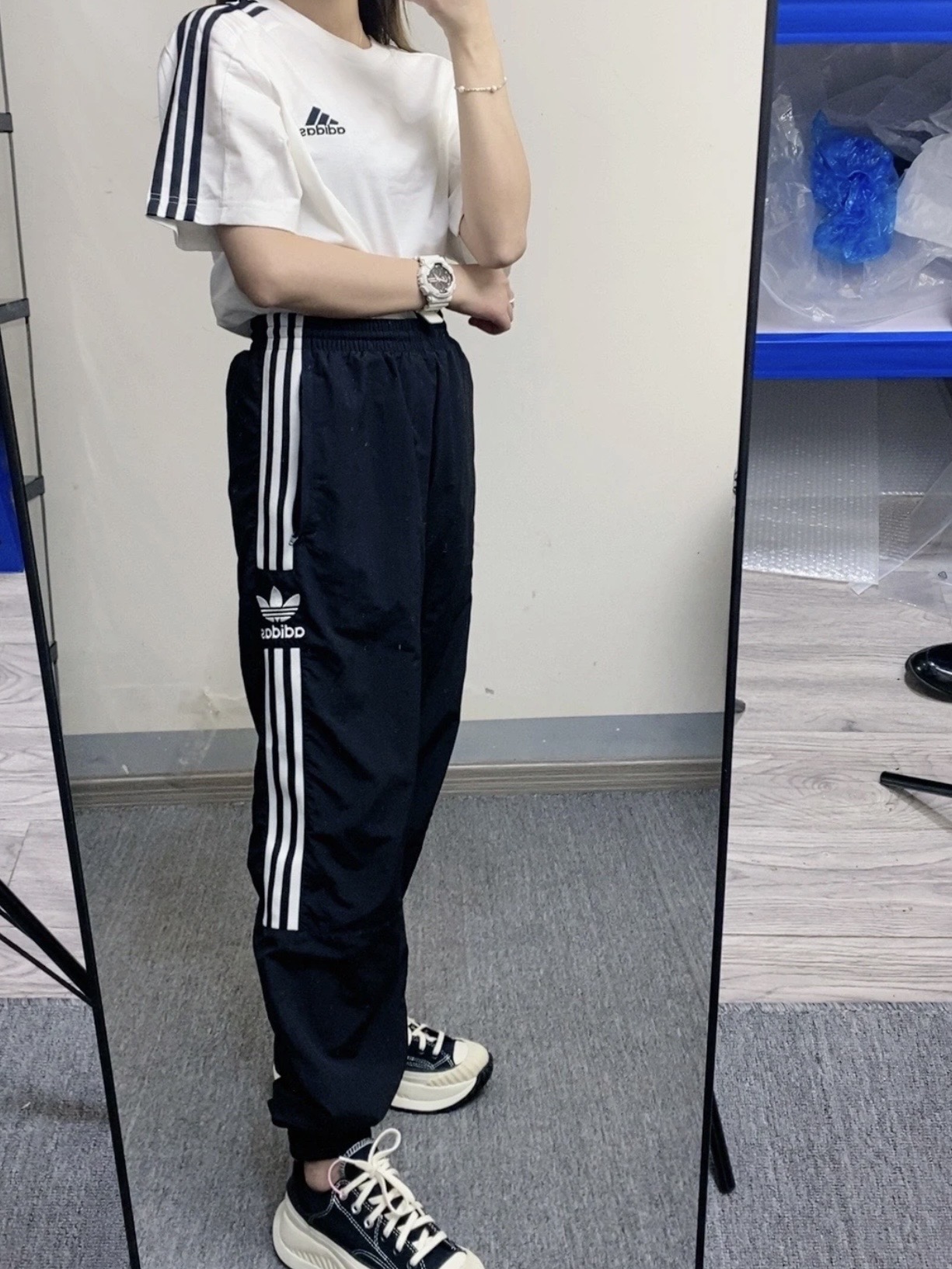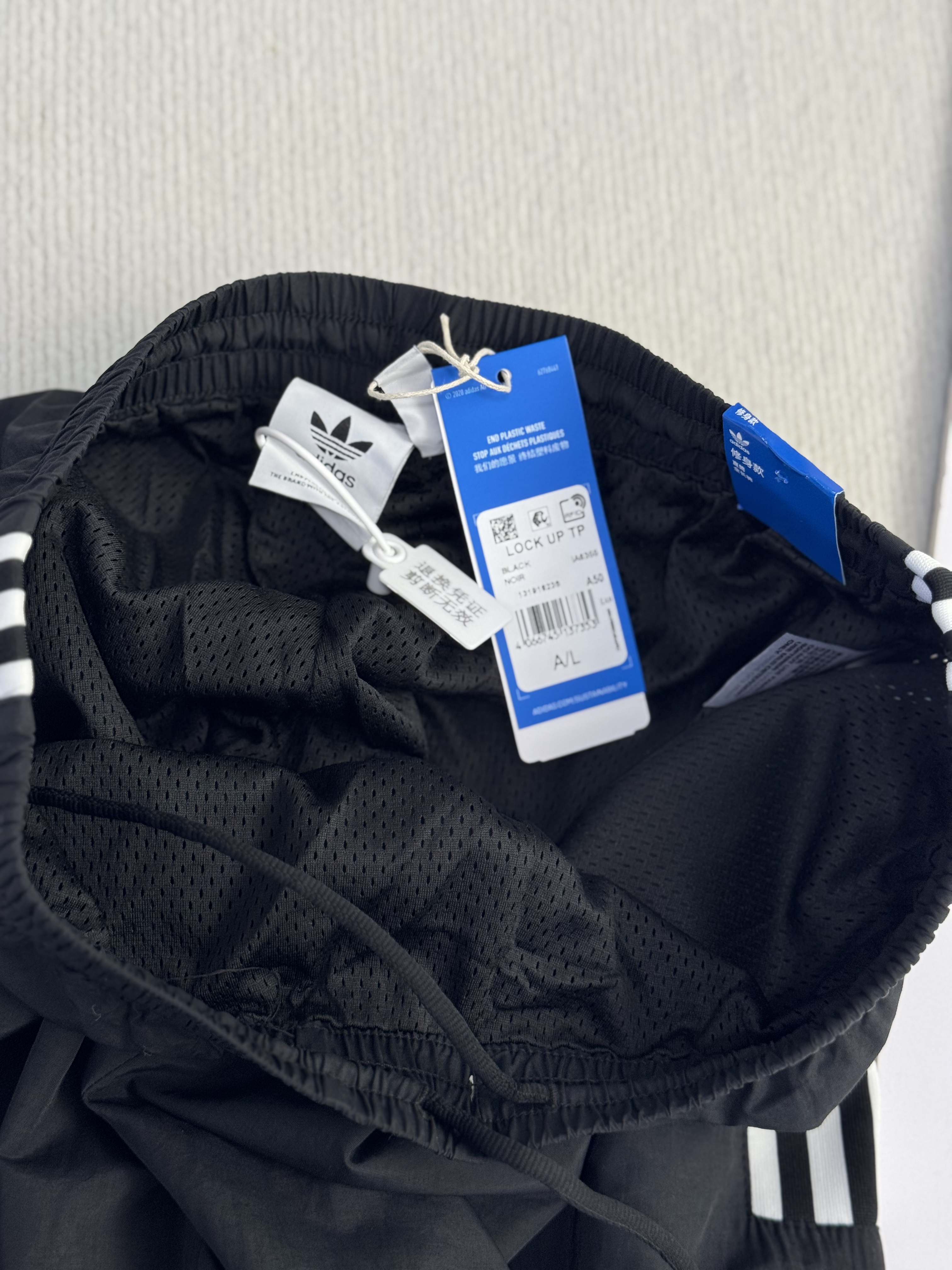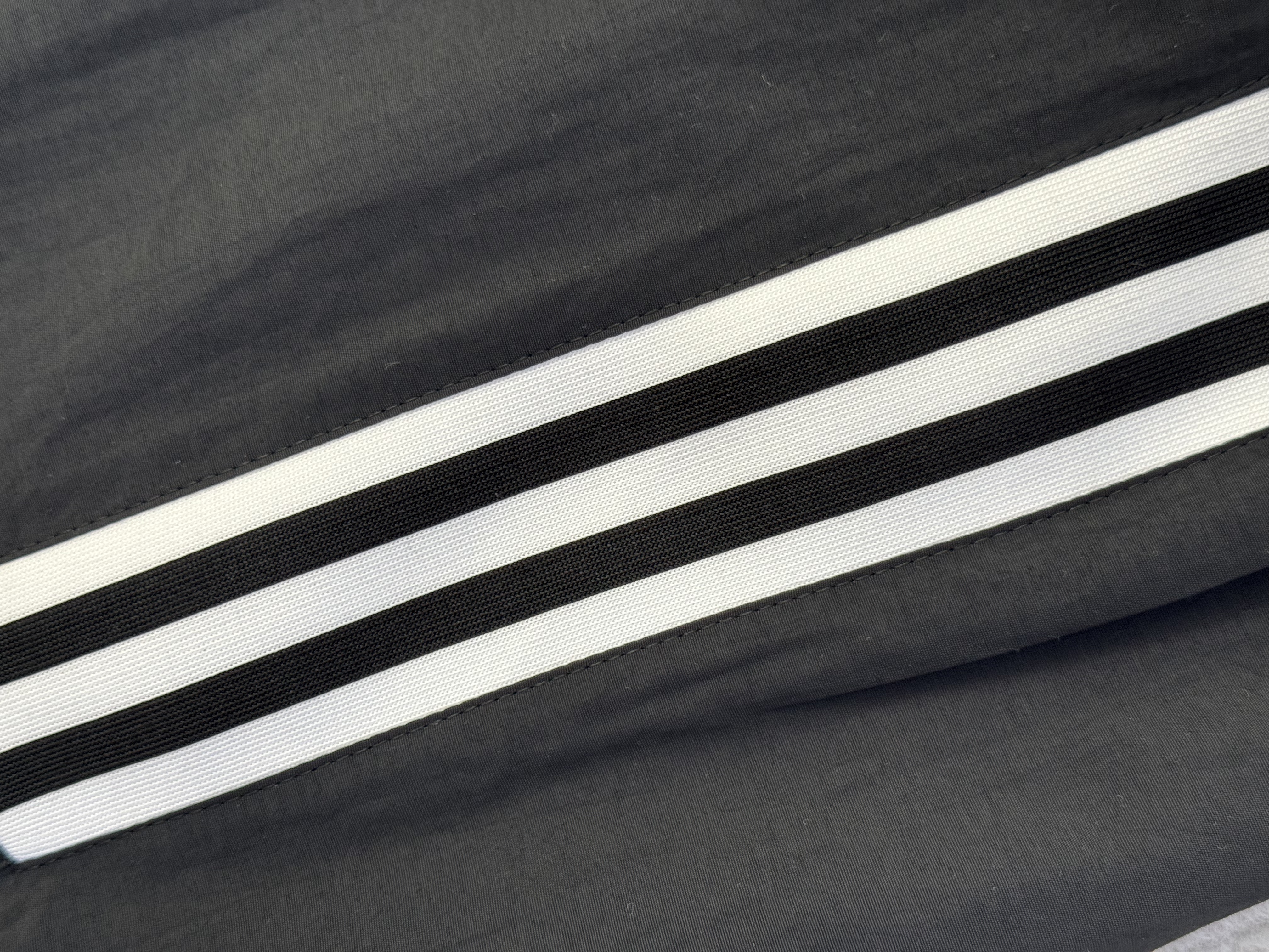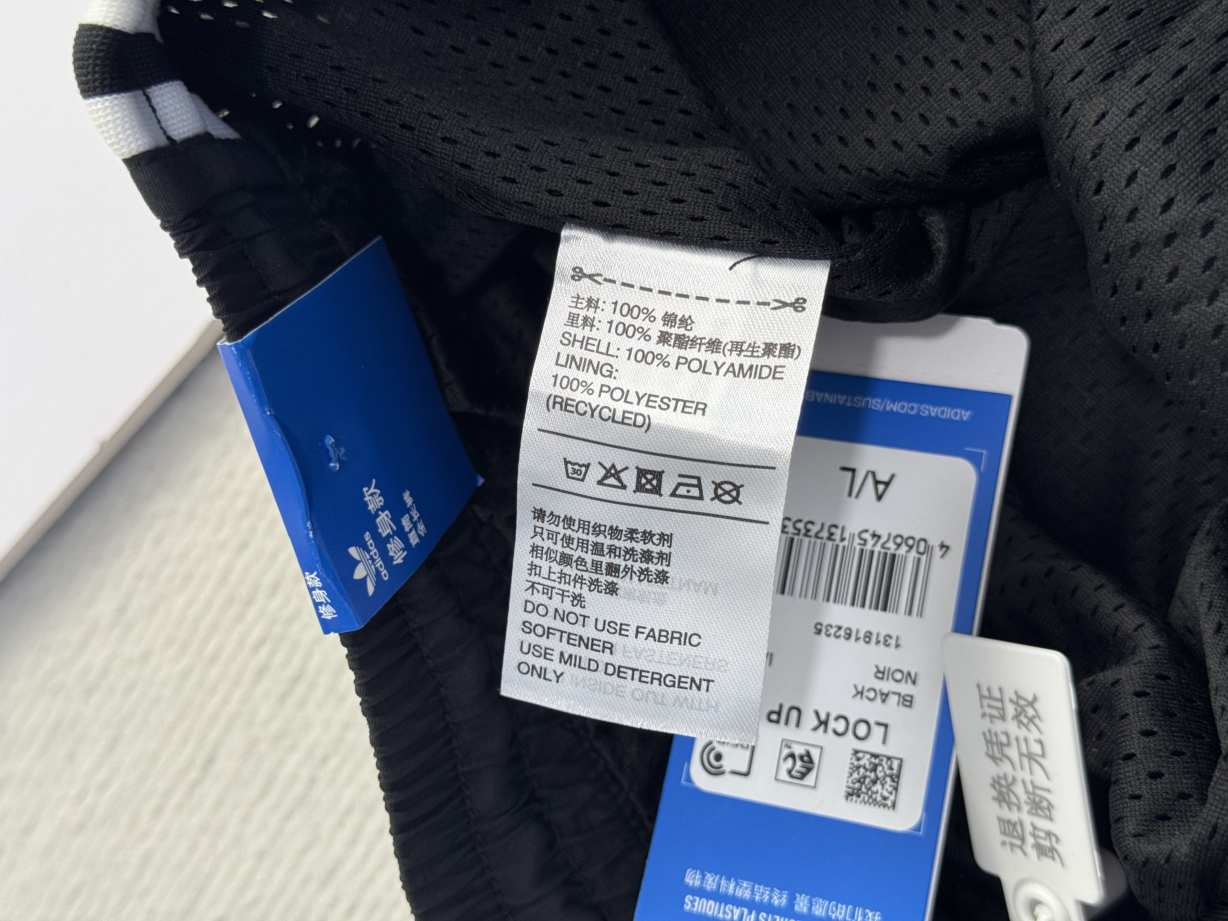 梭织面料! 带网眼内衬;侧缝经典三道杠加三叶草刺绣点缀!
