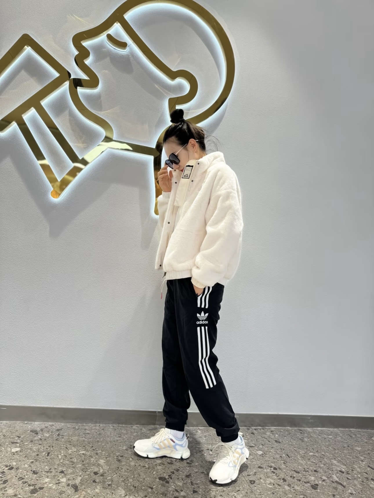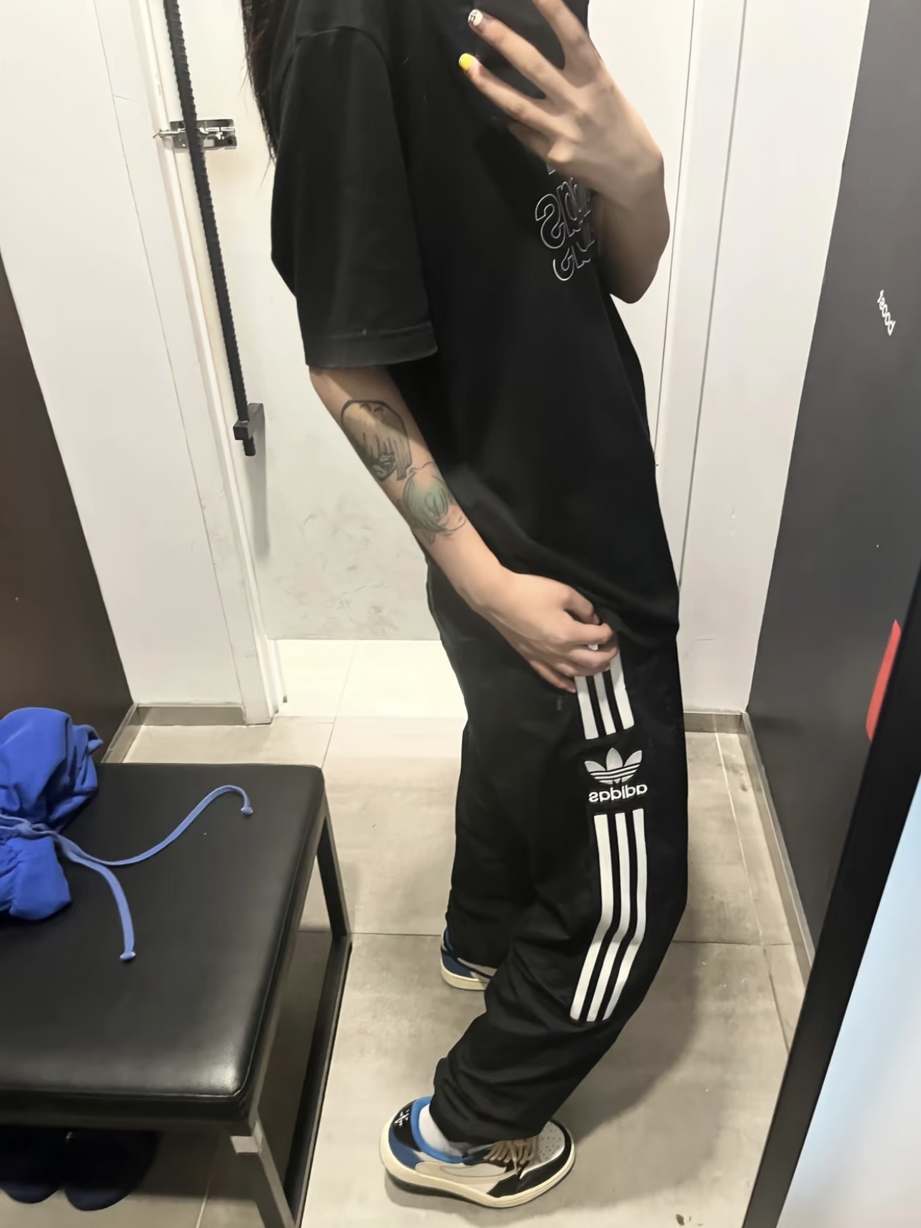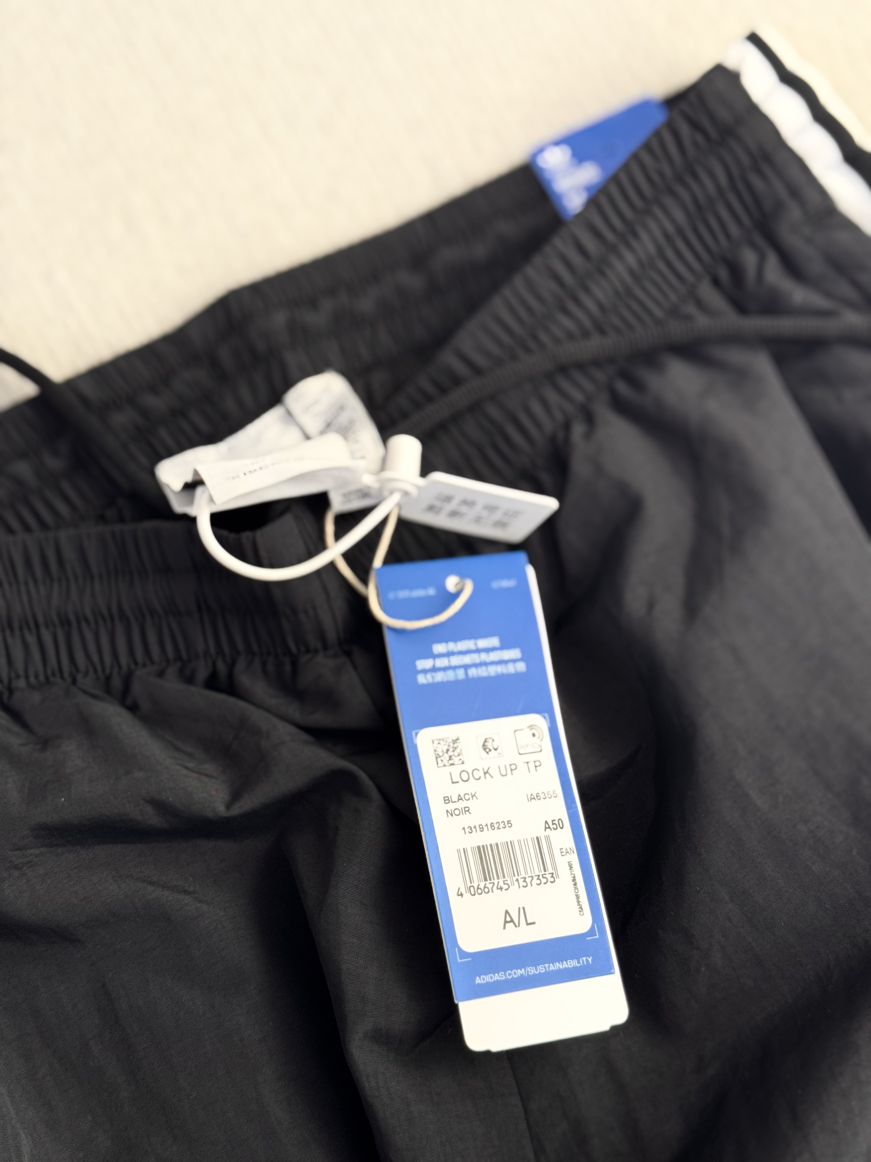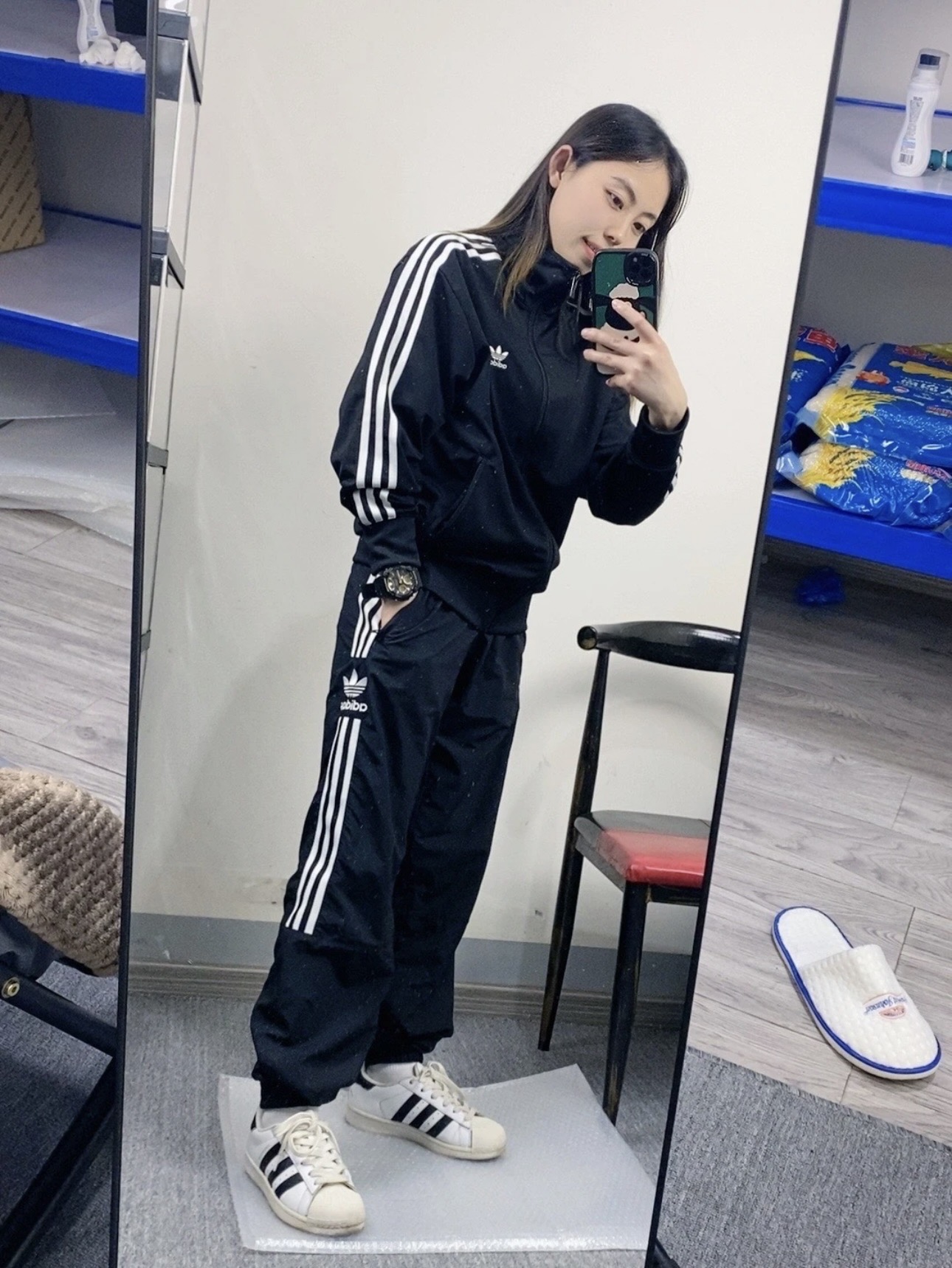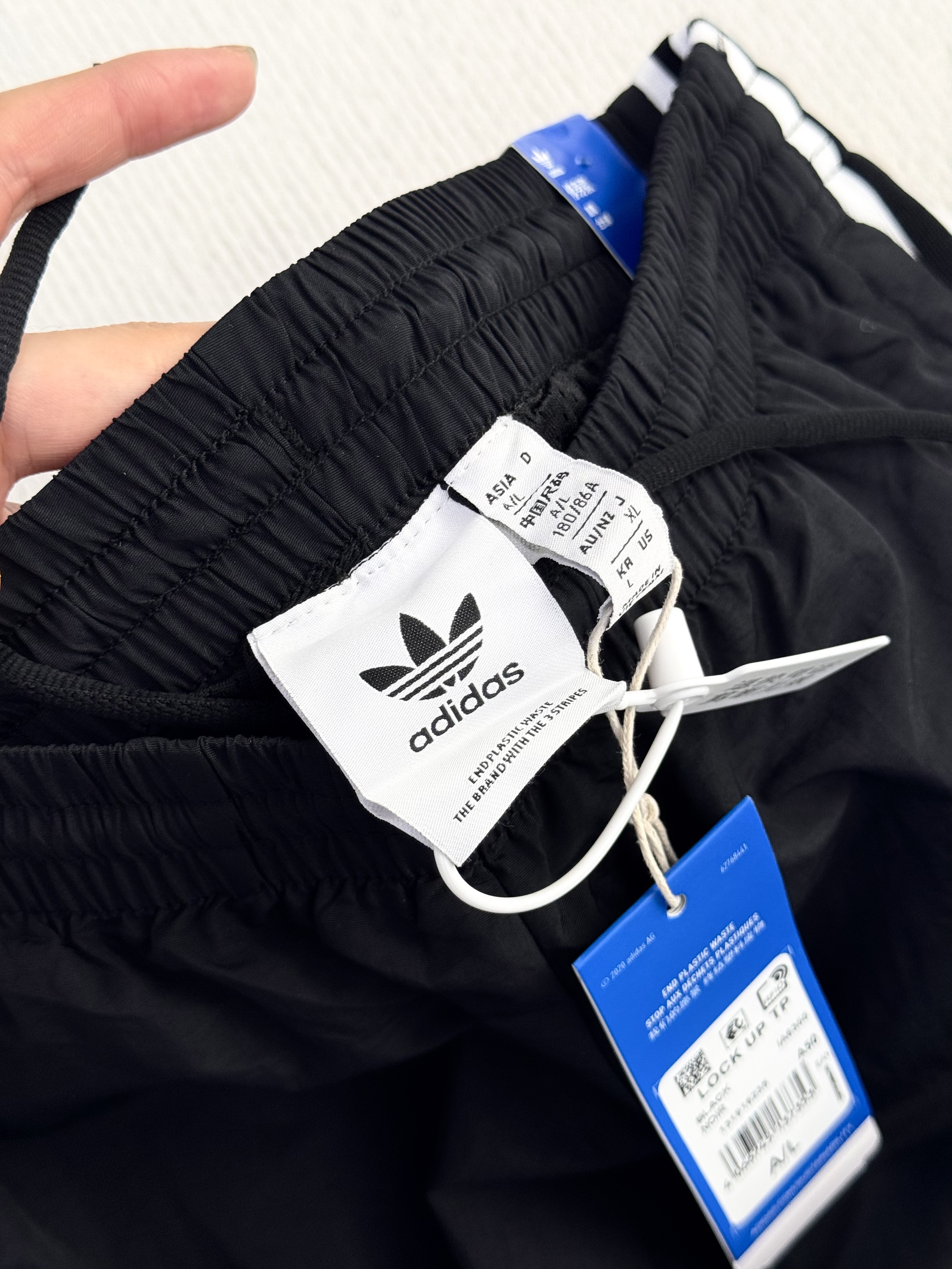 梭织面料! 带网眼内衬;侧缝经典三道杠加三叶草刺绣点缀!