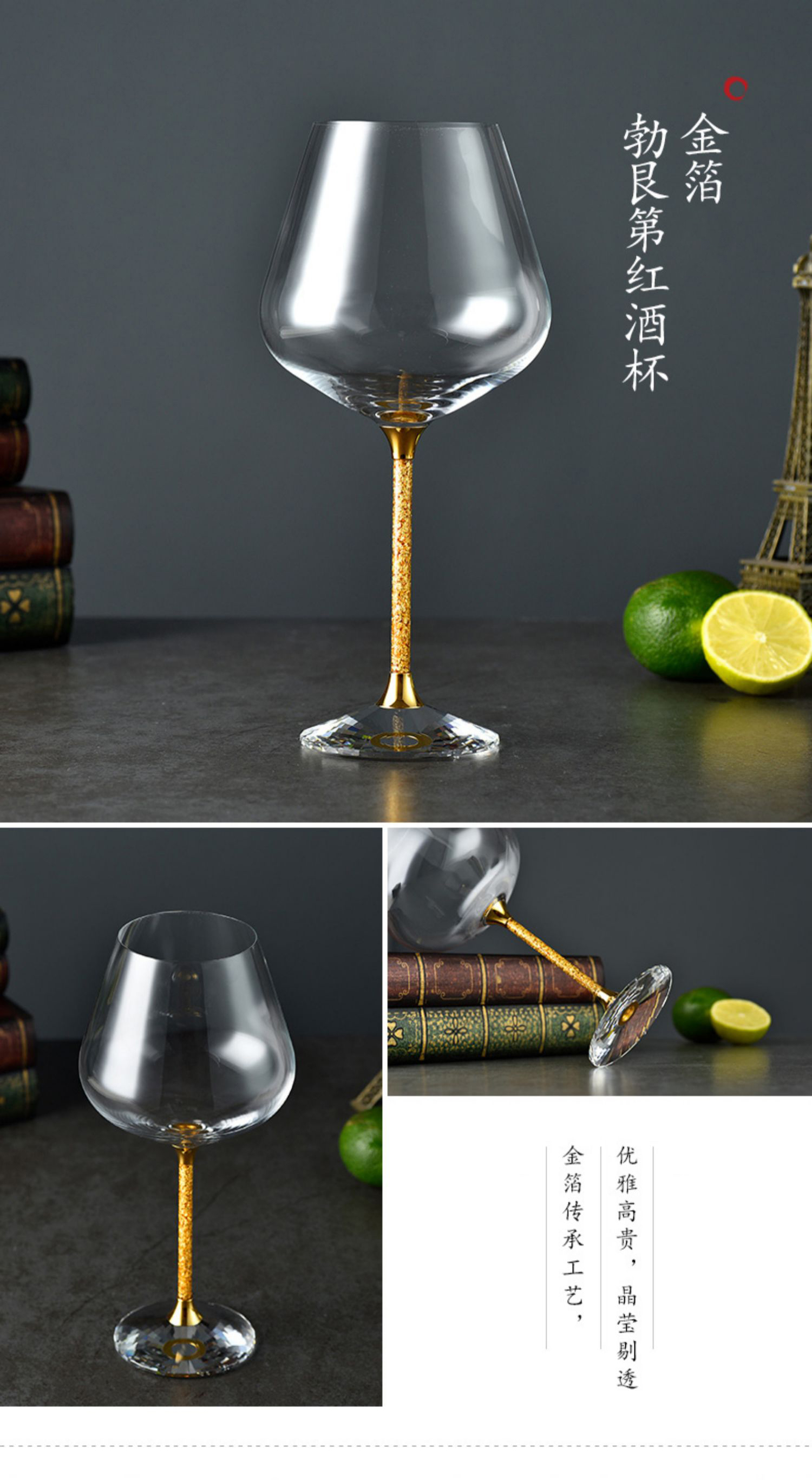 金陵金箔 时尚水晶玻璃红酒杯