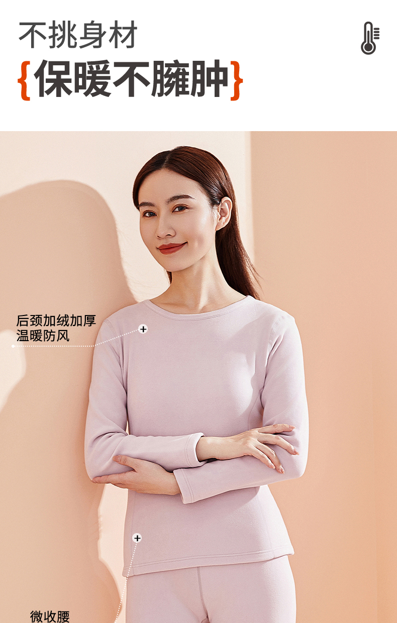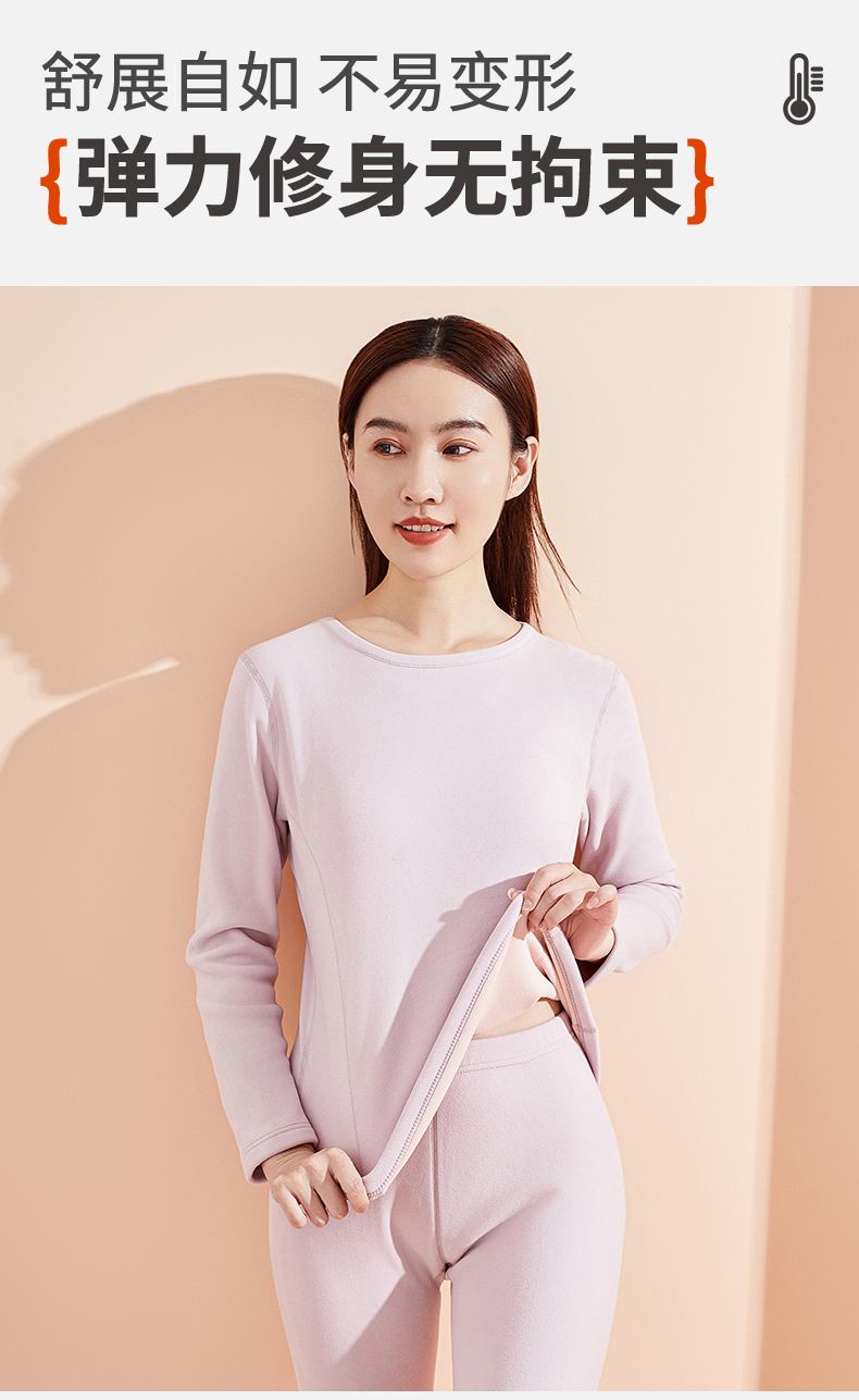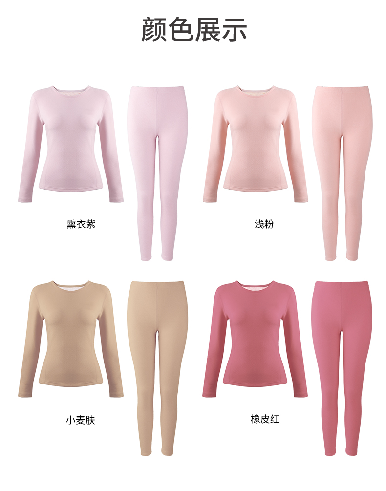 雅黛丽保暖内衣含羊毛桑蚕丝贴片秋衣秋裤加绒圆领显瘦套装秋冬季
