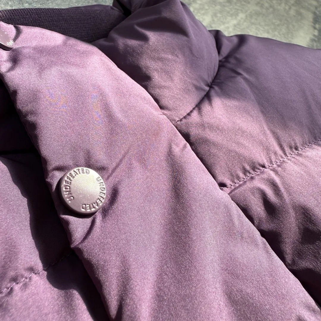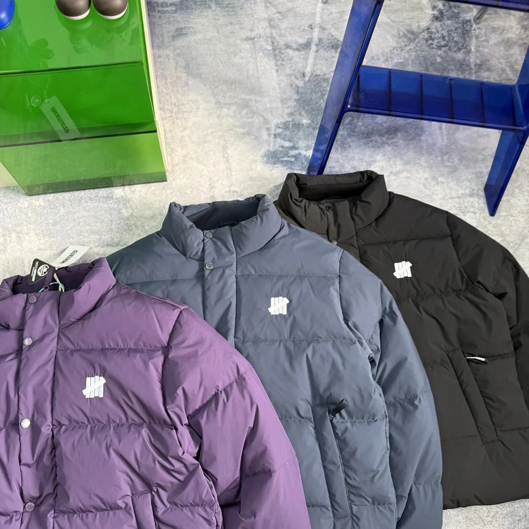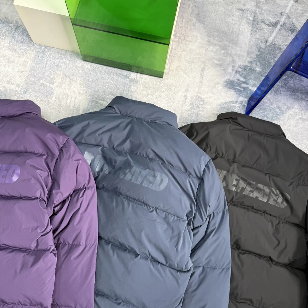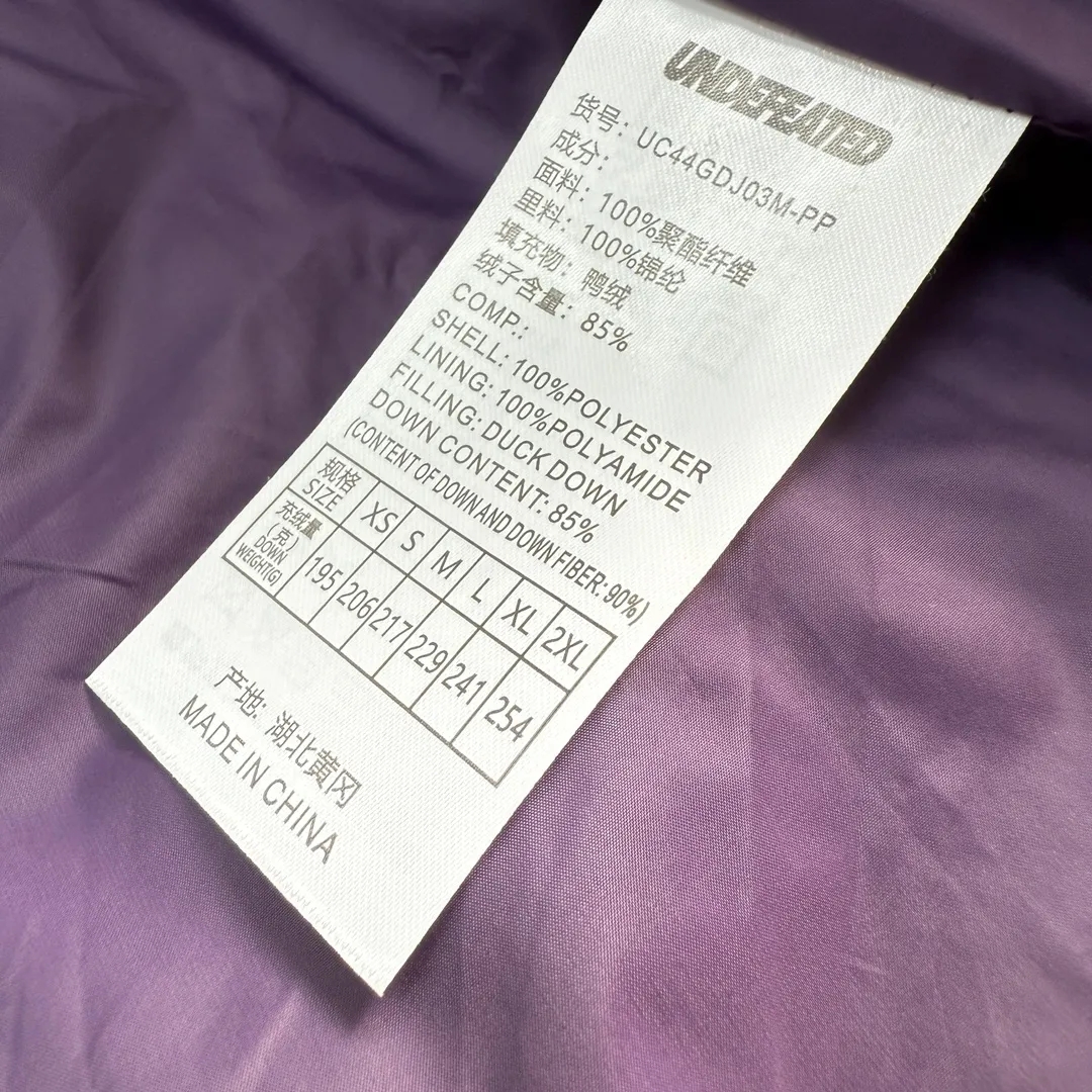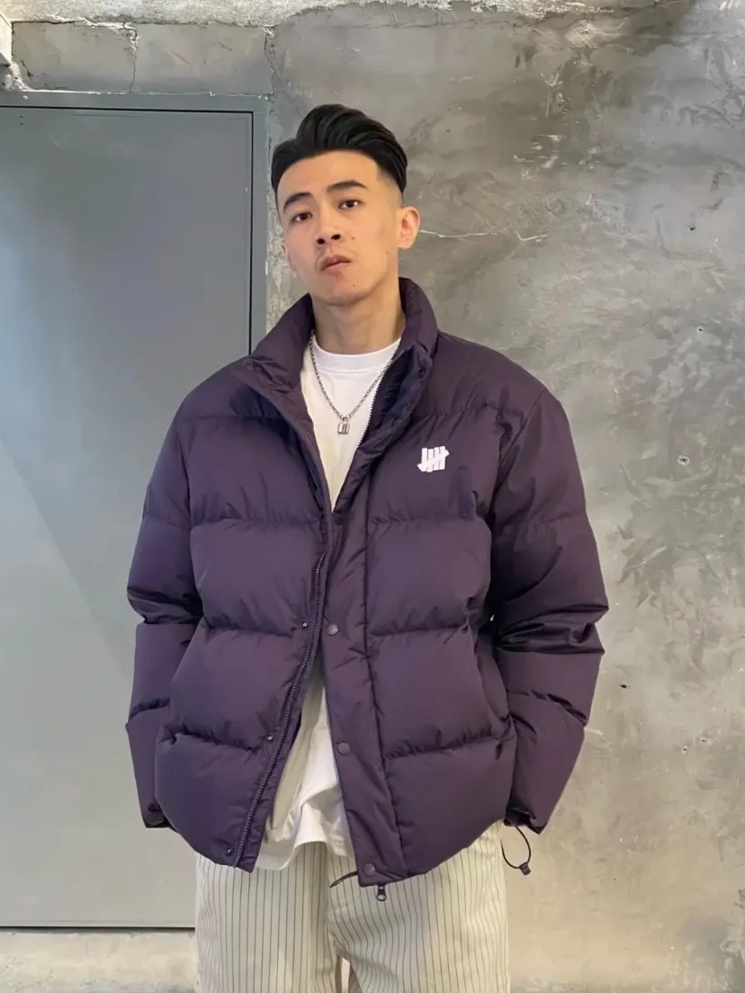 经典五条杠羽绒服 以“不败”姿态重塑冬日潮流规则! 潮标醒目,型格立现 胸前标志性五条杠Logo是街头身份的勋章,背后大尺寸字母印花更是行走的潮圈暗号,纯色基调让设计感在简约中爆发,黑、紫、海军蓝三色任选,每一款都是吸睛炸弹。 廓形为王,保暖破格 立领短款廓形,糅合韩系松弛感与街头利落感,300多克国标80白鸭绒填充牢牢锁住暖意,寒冬里依旧能放肆耍帅;拉链+纽扣双重闭合设计,搭配品牌定制五金件,细节处满是硬核品质。 风格无界,穿搭有戏 不管是内搭卫衣走美式街头风,还是单配高领衫打造韩系轻熟感,它都能完美适配。从滑板场到咖啡厅,从男生的痞帅腔调 to 女生的oversize酷感,一件解锁N种造型,让你在冬日潮流战中“不败”到底! 这个冬天--即刻入手,开启你的“不败”潮暖冬日!