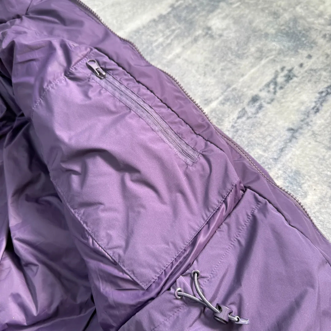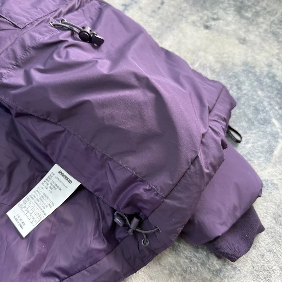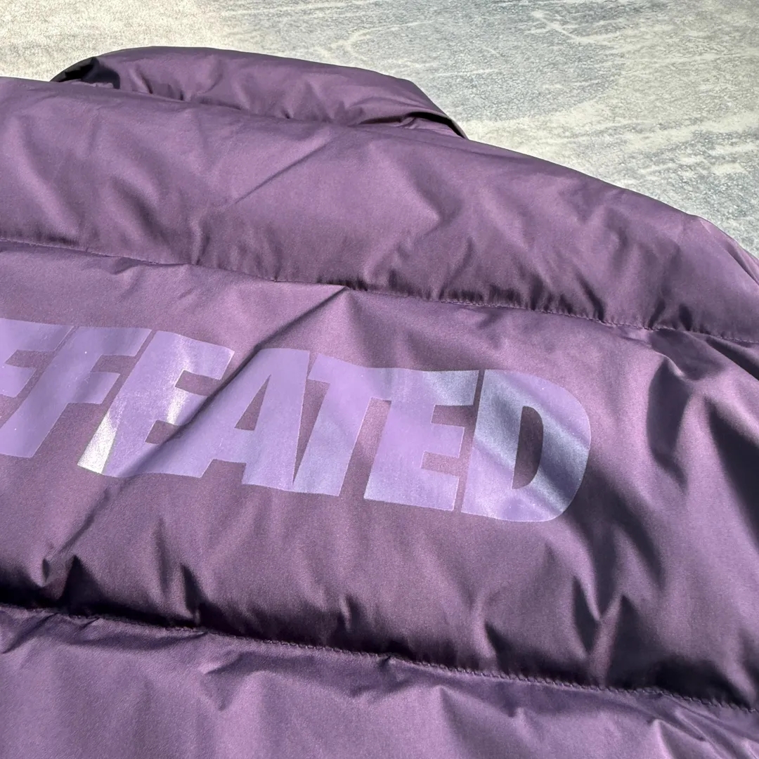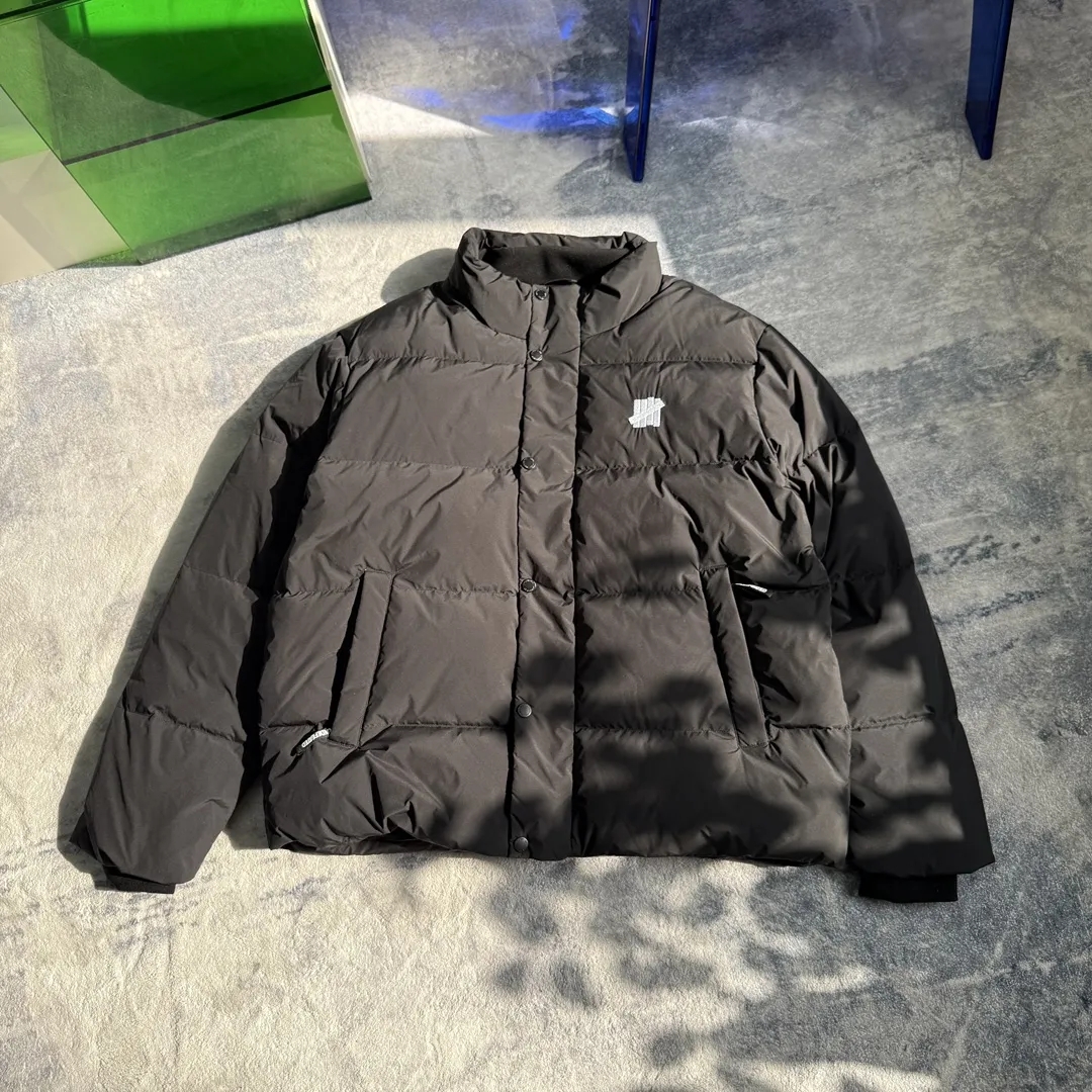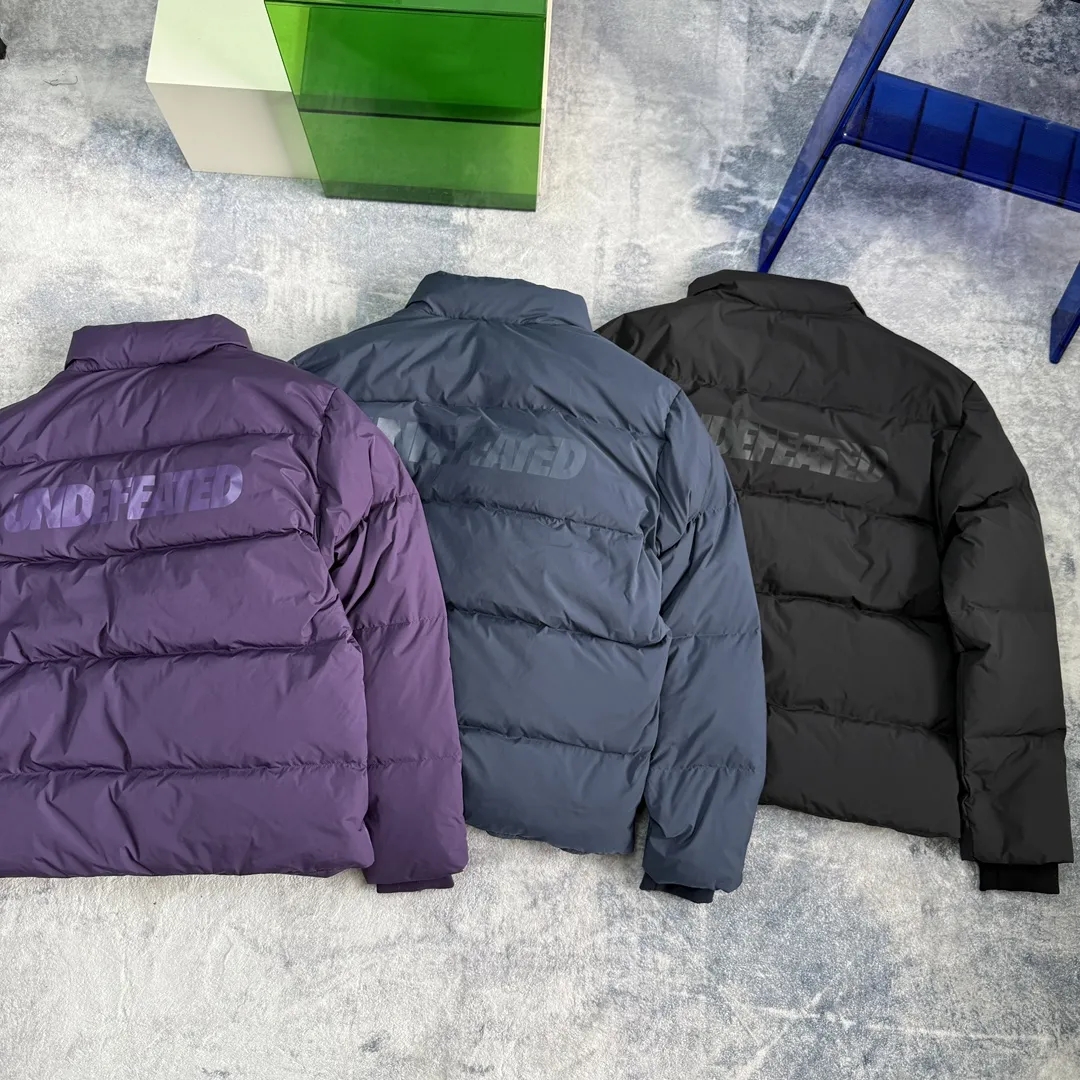 经典五条杠羽绒服 以“不败”姿态重塑冬日潮流规则! 潮标醒目,型格立现 胸前标志性五条杠Logo是街头身份的勋章,背后大尺寸字母印花更是行走的潮圈暗号,纯色基调让设计感在简约中爆发,黑、紫、海军蓝三色任选,每一款都是吸睛炸弹。 廓形为王,保暖破格 立领短款廓形,糅合韩系松弛感与街头利落感,300多克国标80白鸭绒填充牢牢锁住暖意,寒冬里依旧能放肆耍帅;拉链+纽扣双重闭合设计,搭配品牌定制五金件,细节处满是硬核品质。 风格无界,穿搭有戏 不管是内搭卫衣走美式街头风,还是单配高领衫打造韩系轻熟感,它都能完美适配。从滑板场到咖啡厅,从男生的痞帅腔调 to 女生的oversize酷感,一件解锁N种造型,让你在冬日潮流战中“不败”到底! 这个冬天--即刻入手,开启你的“不败”潮暖冬日!
