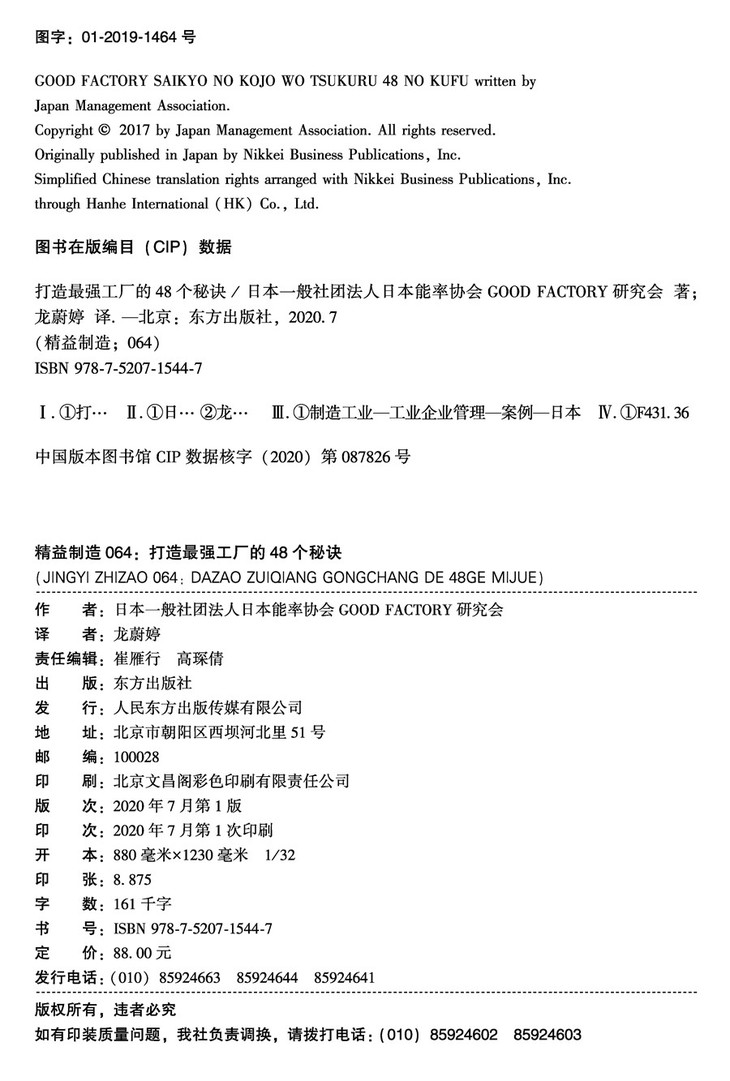 书 名:精益制造064:打造最强工厂的48个秘诀