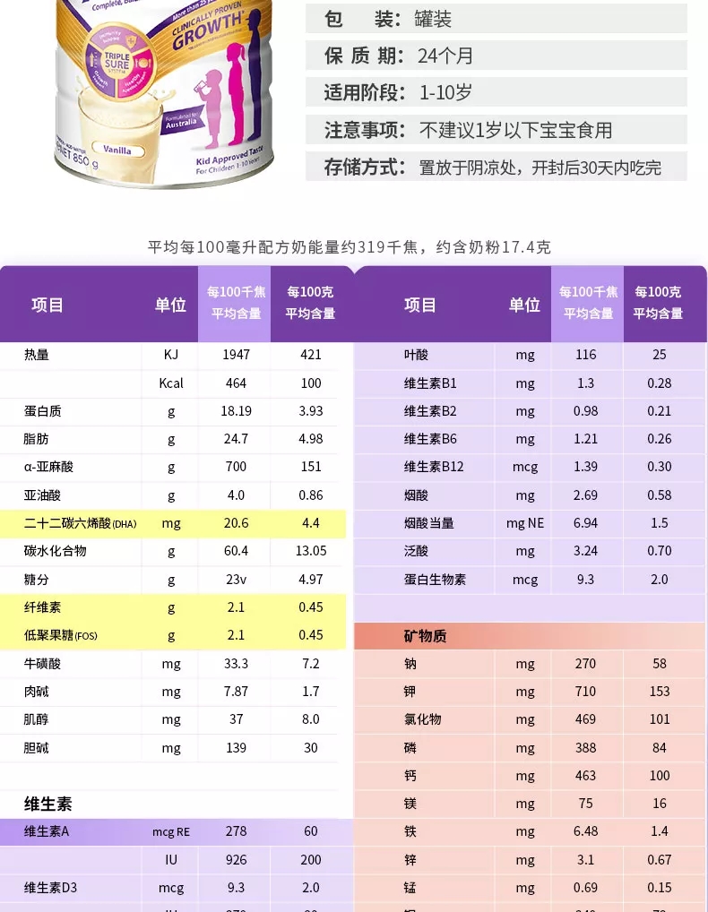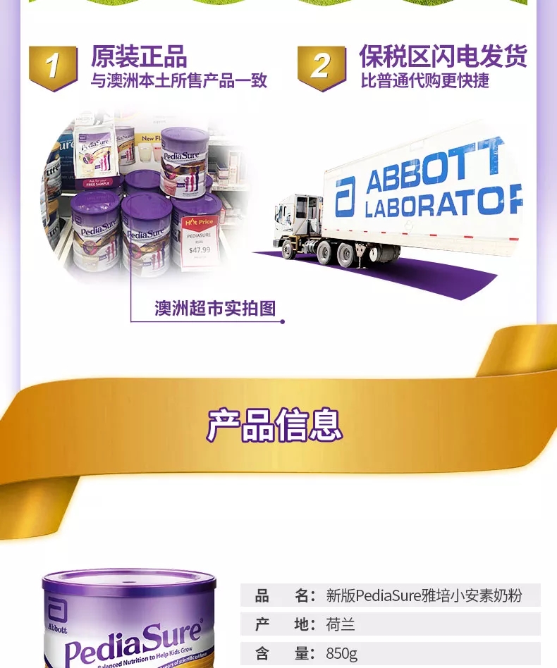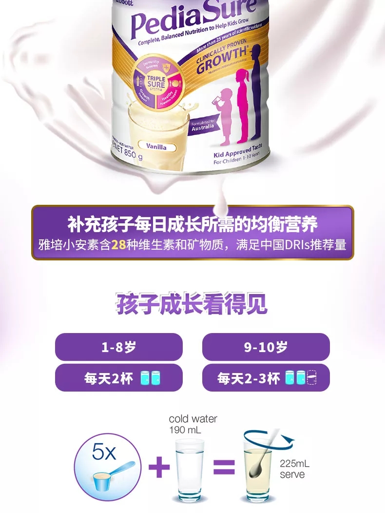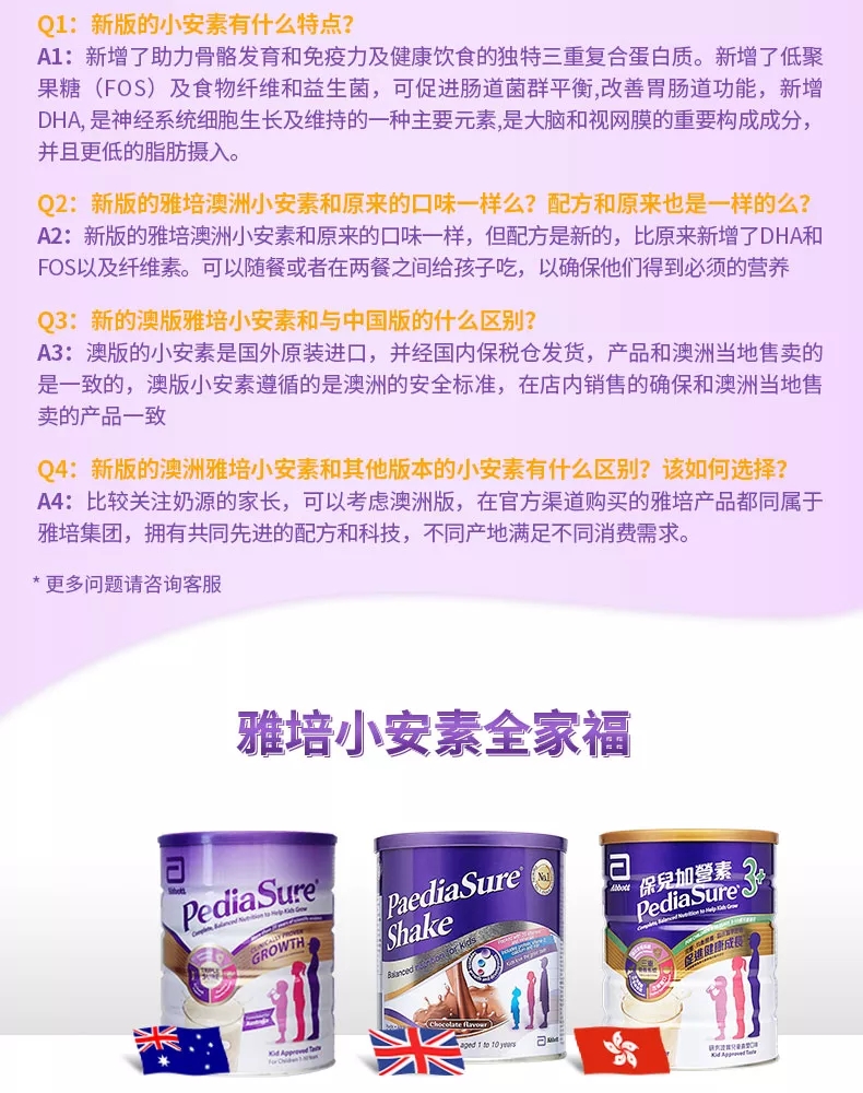 澳洲 雅培 小安素营养粉香草口味850g 【保税仓】