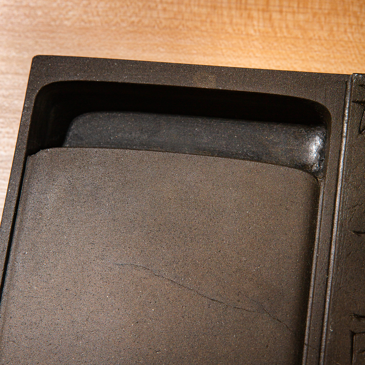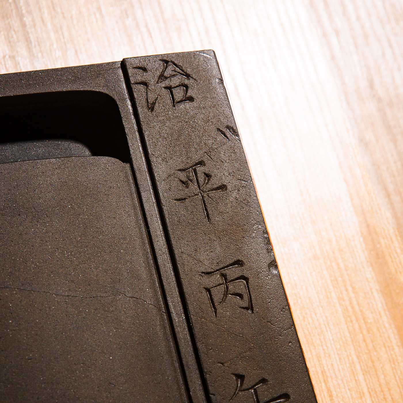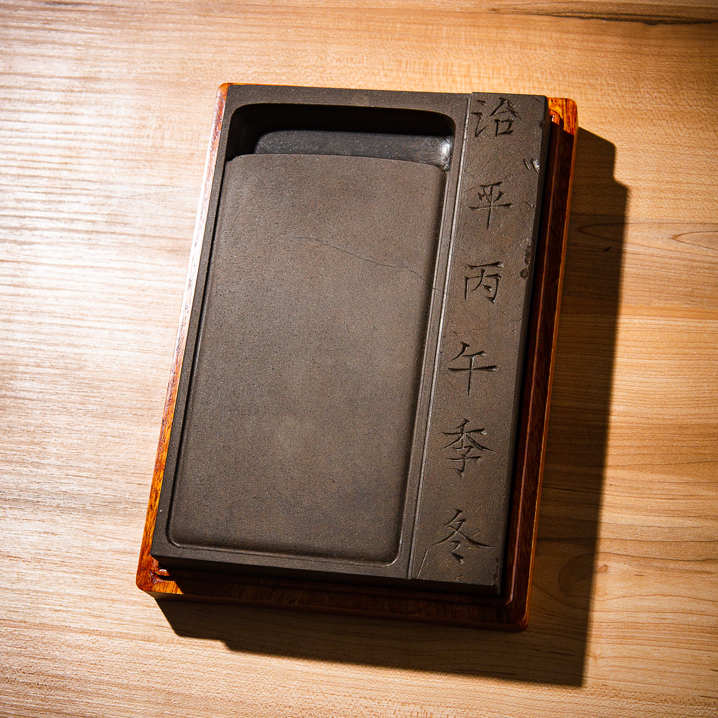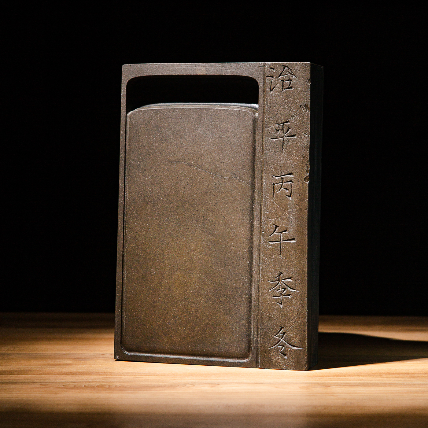 宋代“治平年号”残碑制砚。“治平”为宋英宗赵曙的年号,历时仅四年,也是司马光编纂《资治通鉴》的开端。此残碑极稀有,用此残碑制砚,为独一无二之佳品。此砚器型大且典雅,鳝鱼黄石色沉稳古朴。