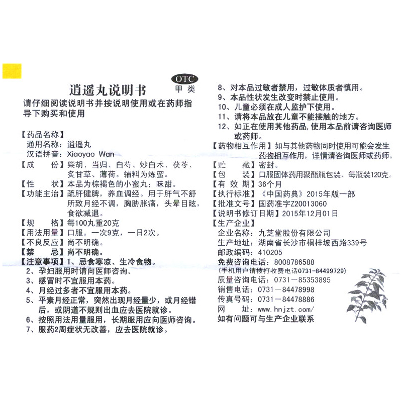 九芝堂 逍遥丸 小蜜丸 120g*1瓶/盒疏肝健脾 养血调经 胸肋胀满