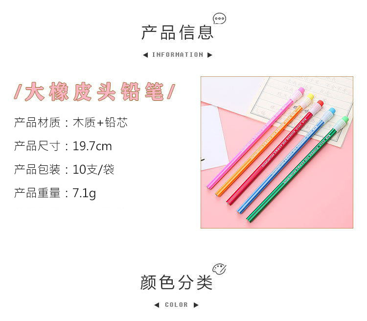 HB橡皮铅笔创意大皮头写不断铅笔学生儿童画画素描笔奖品文具 9g/支