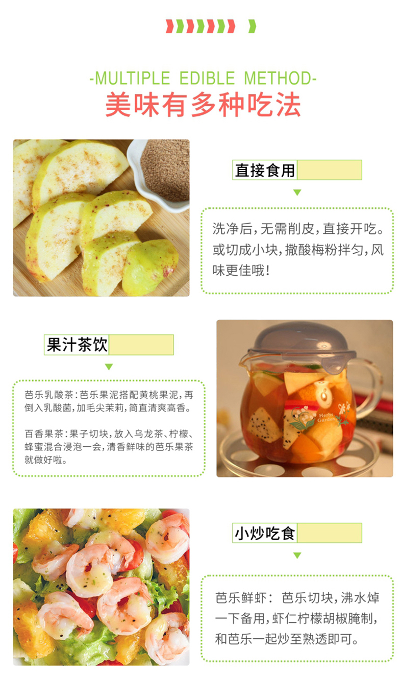 2.芭乐不分生熟,只分青黄,稍青的果子口感偏清脆爽口,泛黄的果子口感偏软,带有独特香气