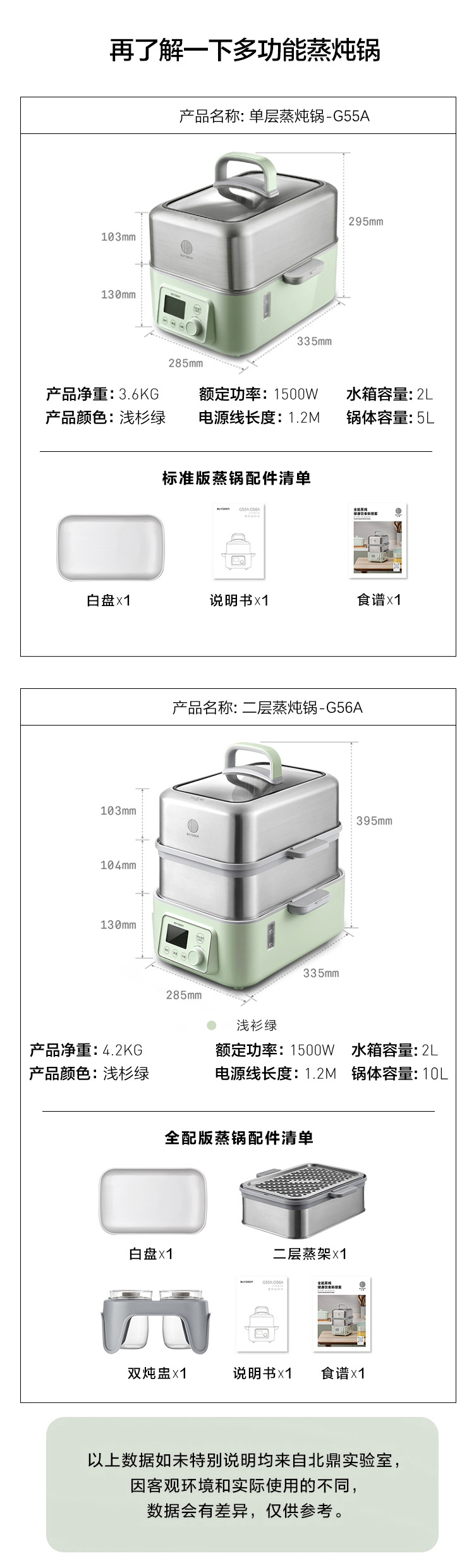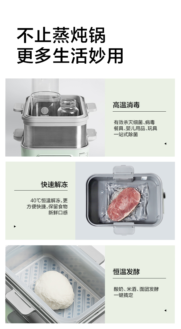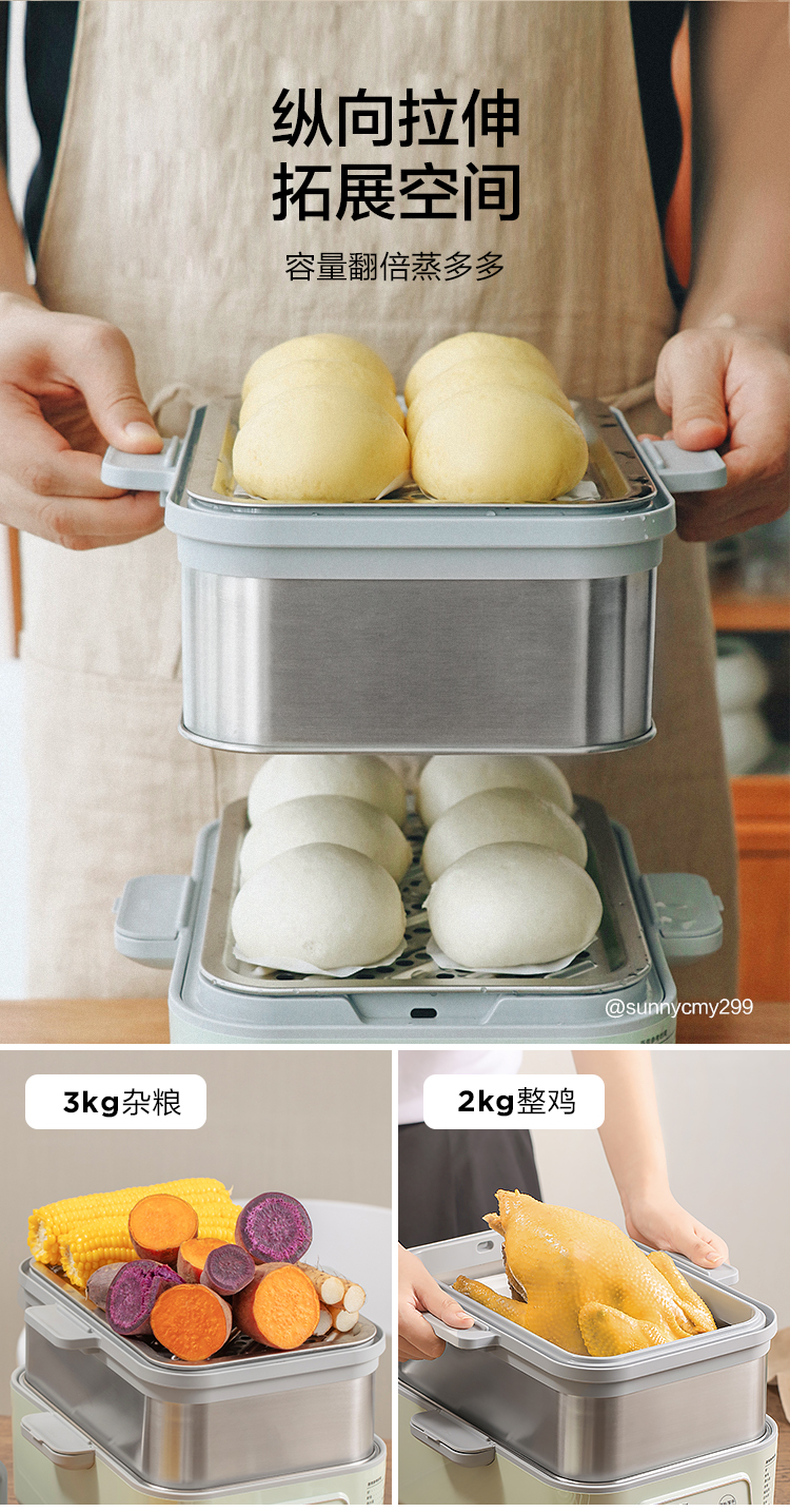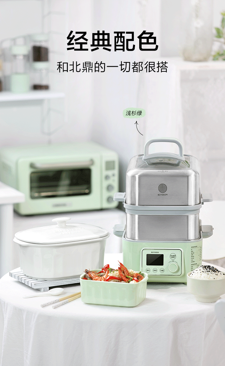 6F北鼎G56A/021 多功能电蒸锅 浅杉绿 同A500 A501组合