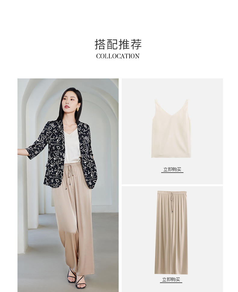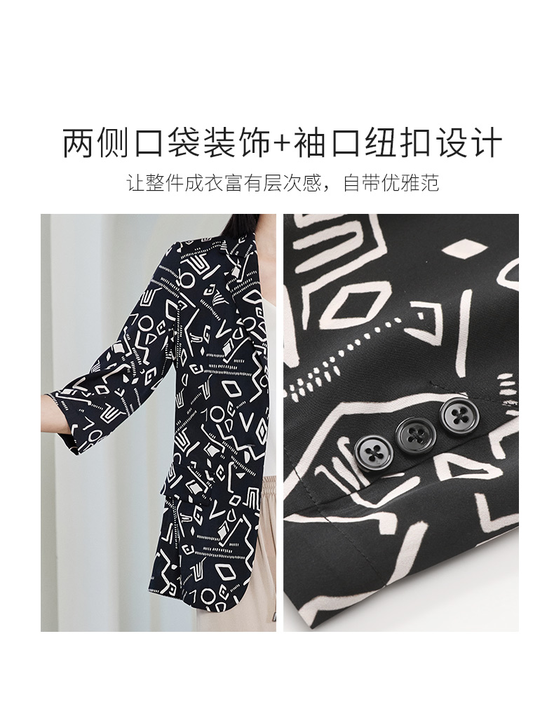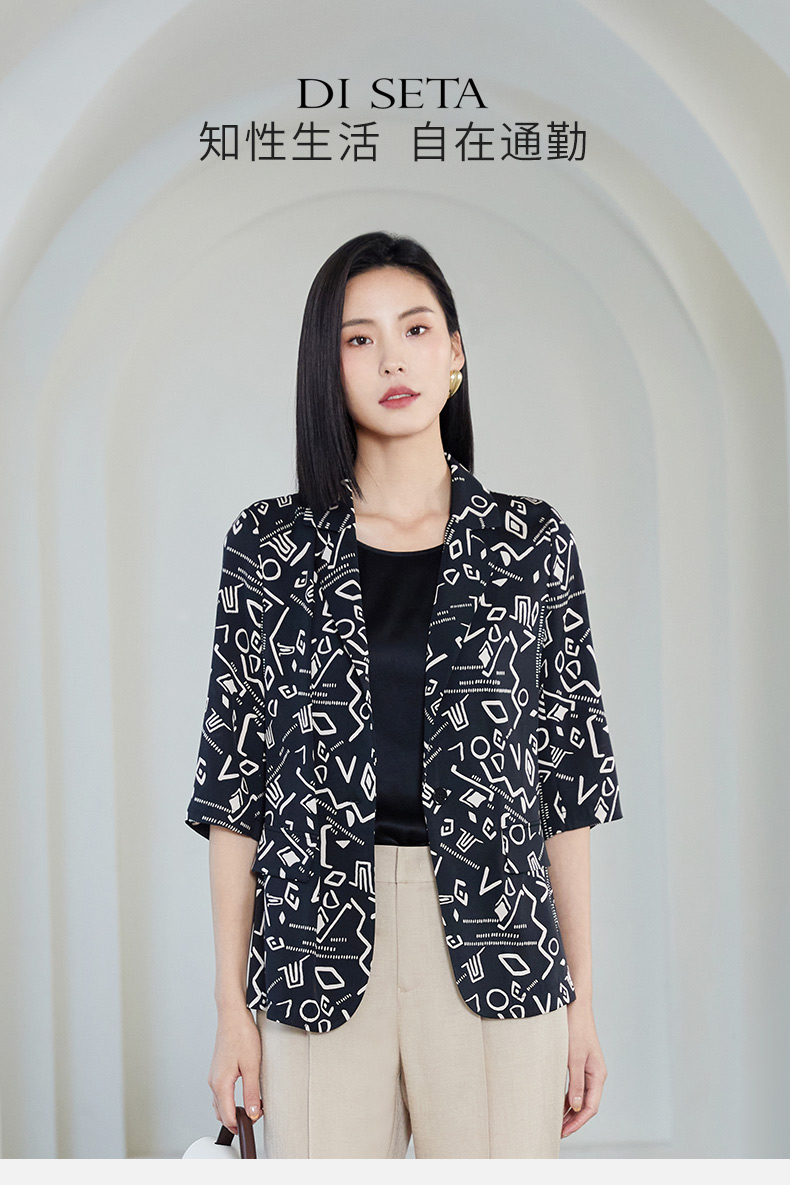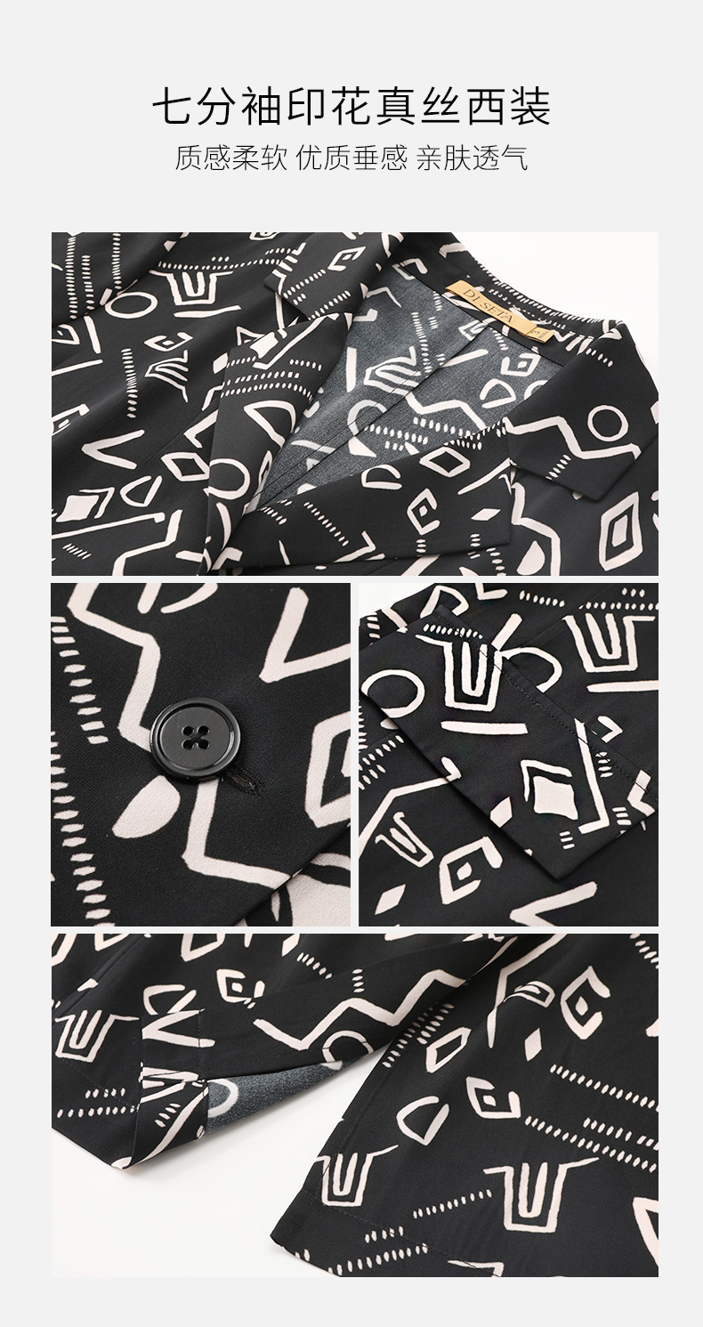 玳莎重磅印花真丝西装女2023年夏季新款简约设计感两色印花七分袖防晒外套 DB37202