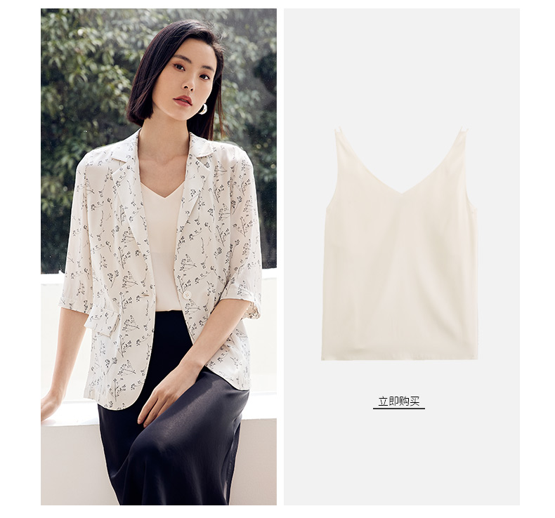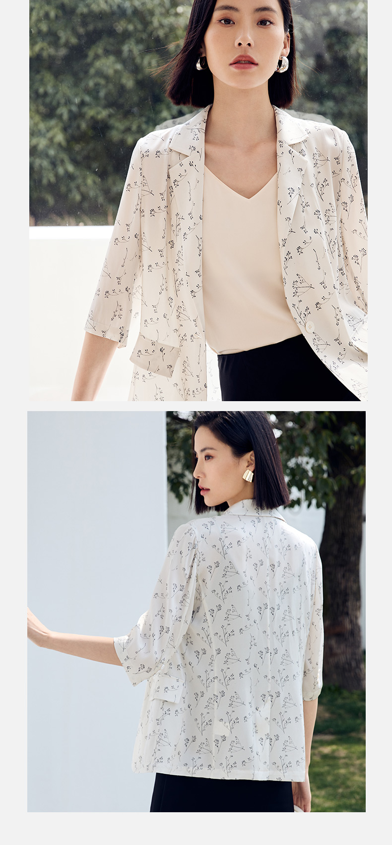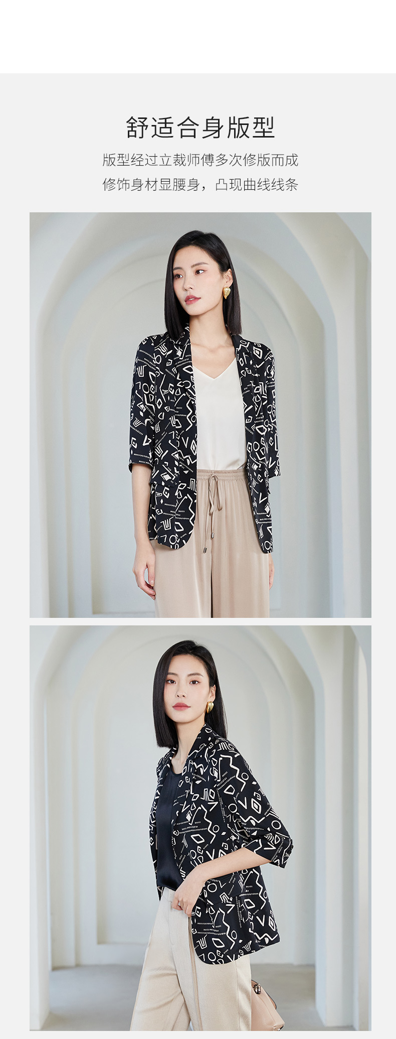 玳莎重磅印花真丝西装女2023年夏季新款简约设计感两色印花七分袖防晒外套 DB37202