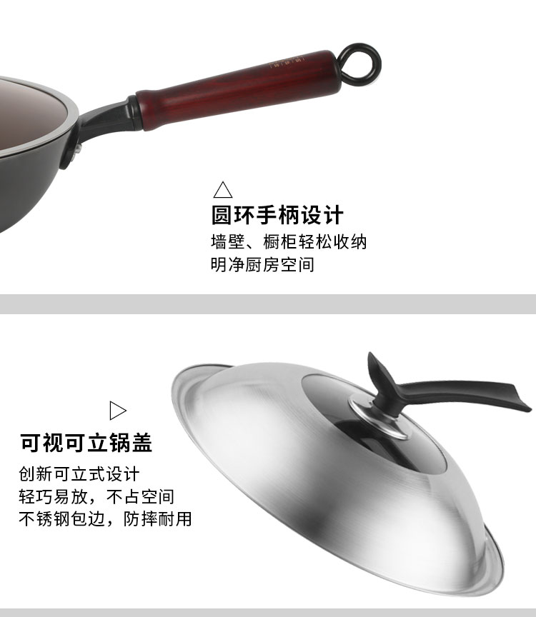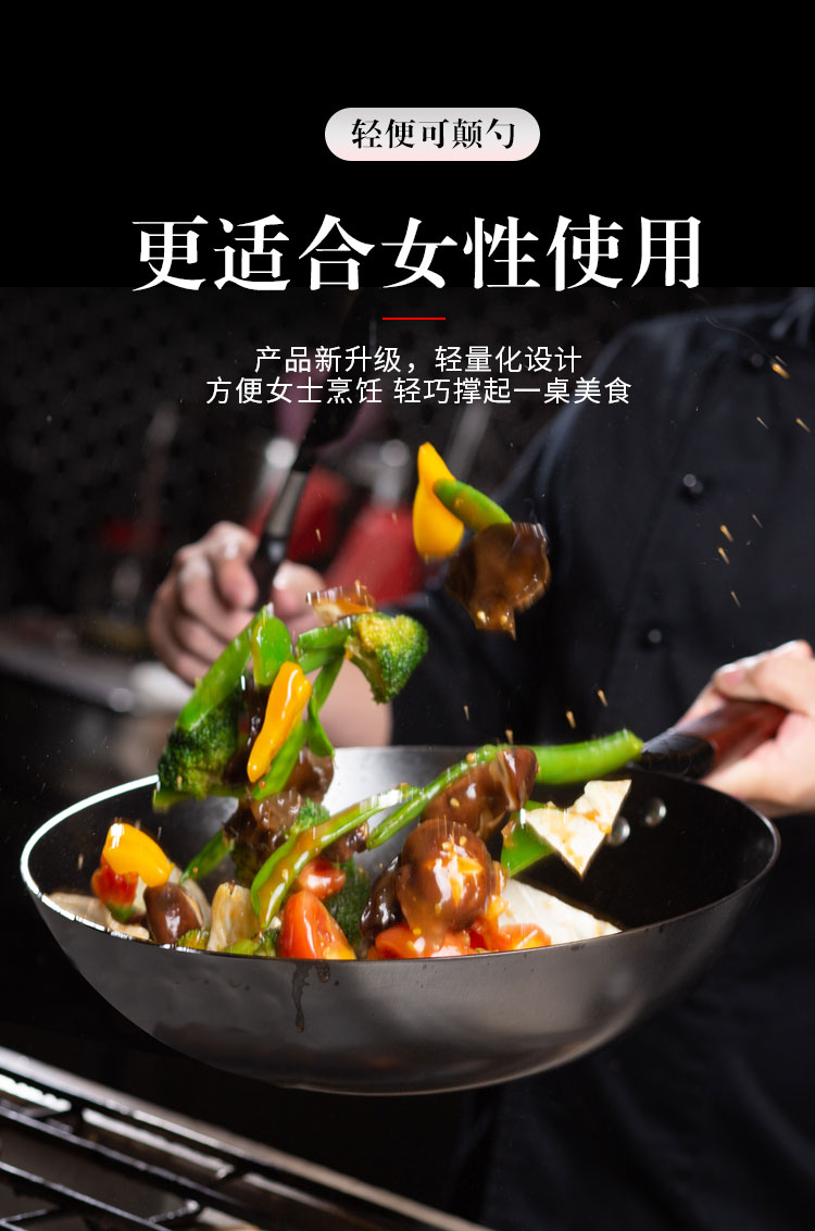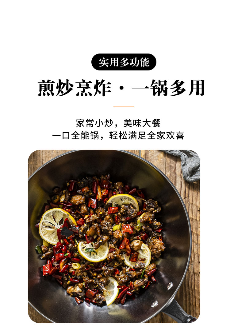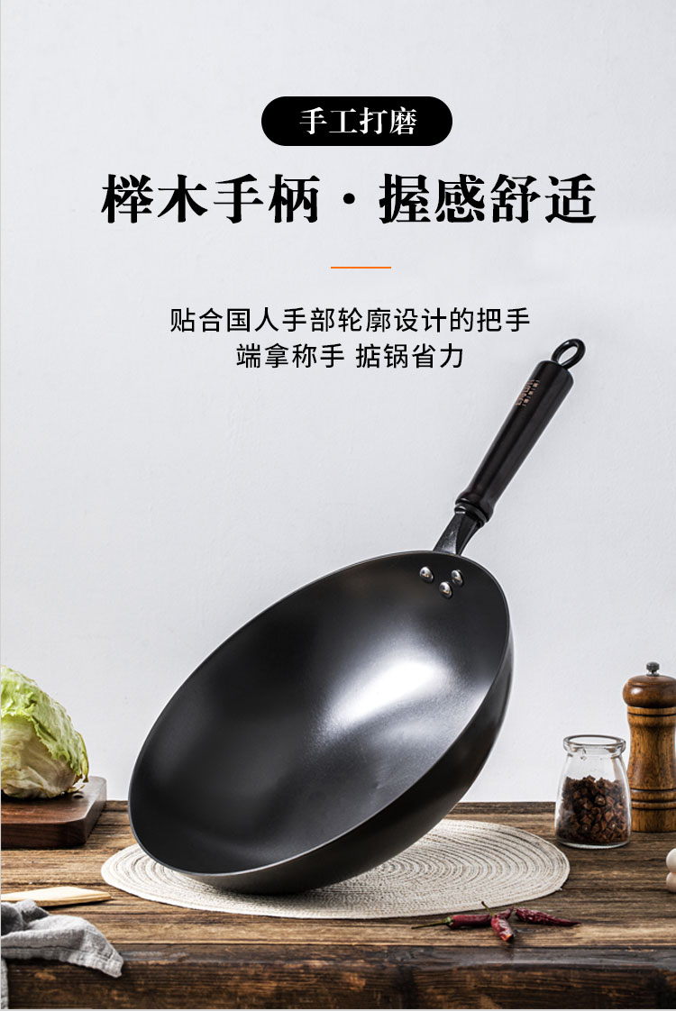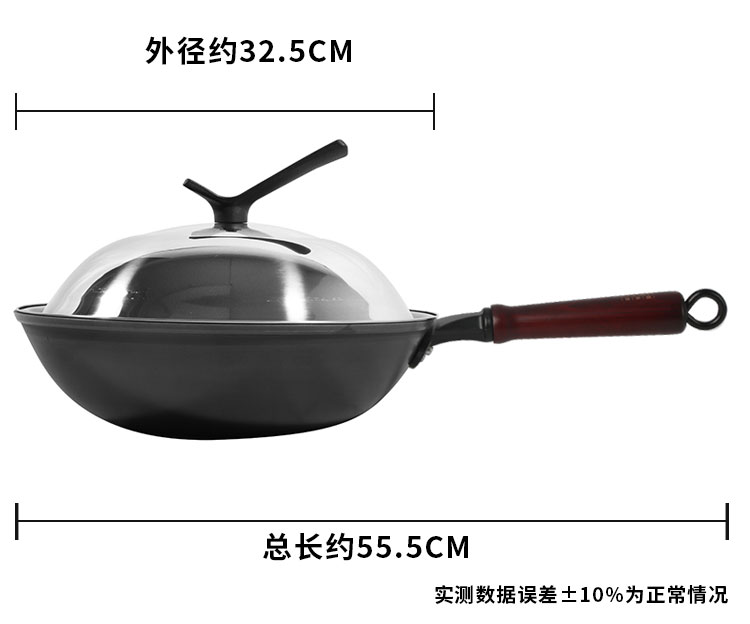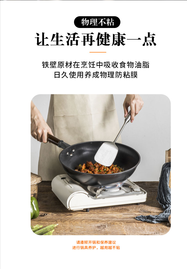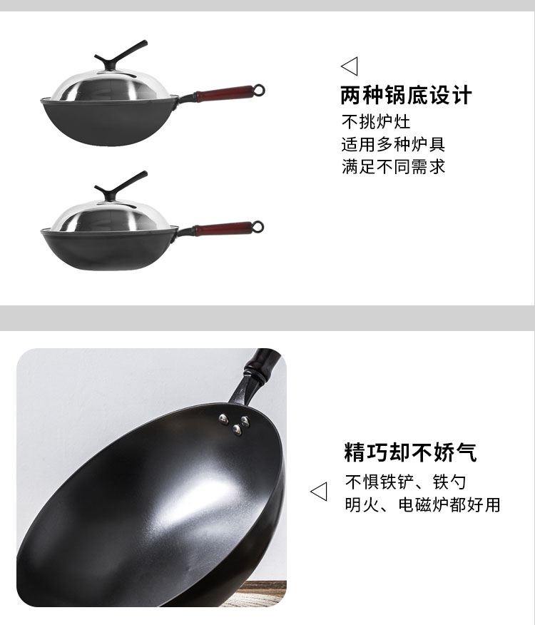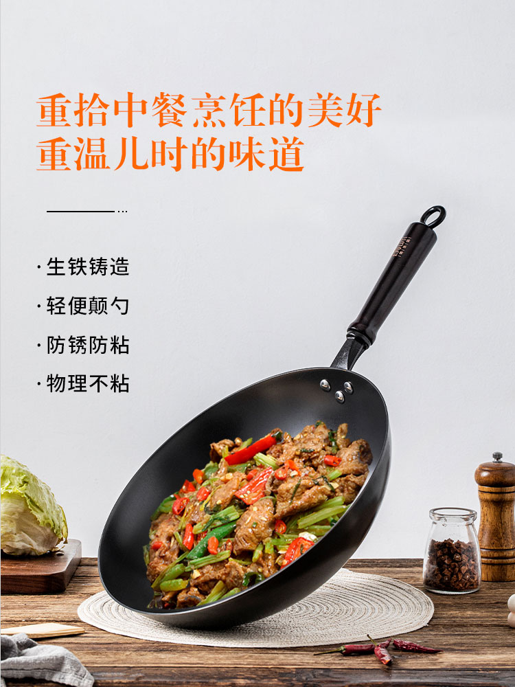 铸味真不锈 | 单柄30-34cm铁锅带锅盖无涂层不生锈炒锅燃气明火专用家用铸铁平底炒菜锅