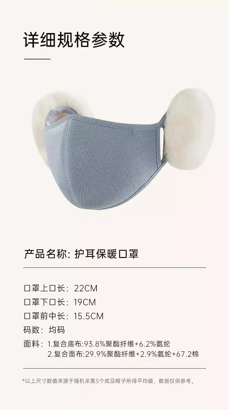 毛绒加厚云朵护耳口罩 升级保暖 护耳护脸 3D立体裁剪开口 呼吸顺畅 修饰脸型 防冻伤