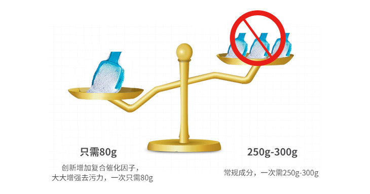 而它因为去污效果极好,一次只用80g,就能泡得很干净,一瓶可以用3次!