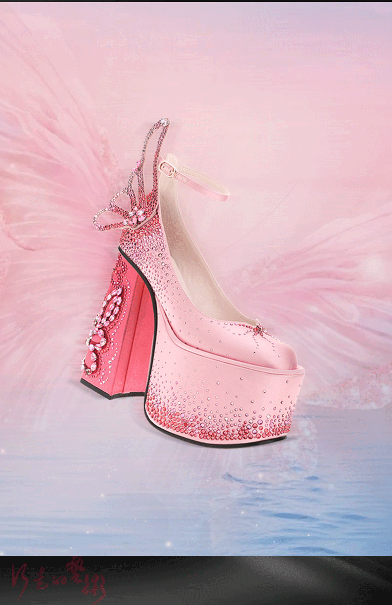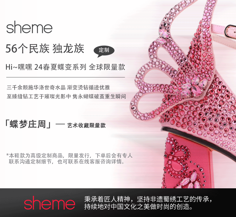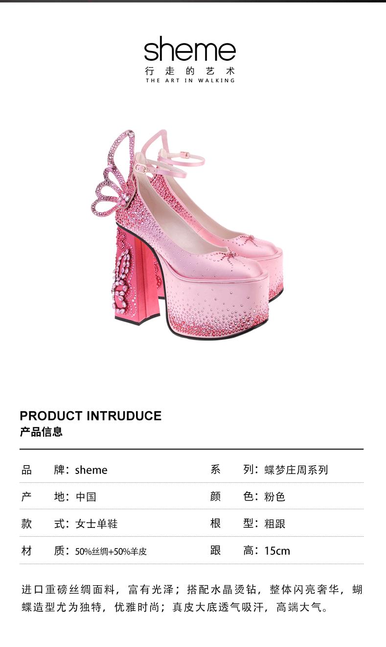 sheme蝶梦庄周系列进口丝绸搭配蝴蝶水晶新中式烫钻优雅时尚女士单鞋可定制