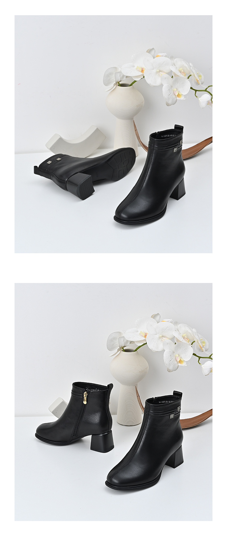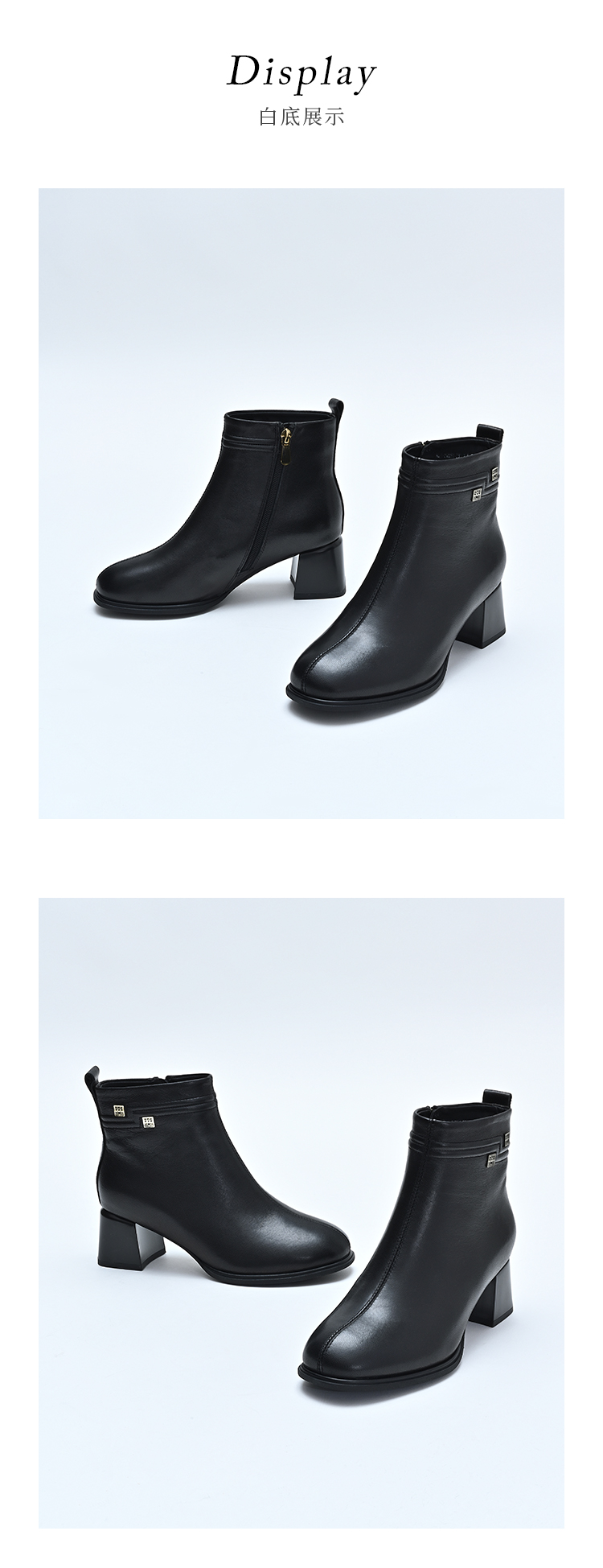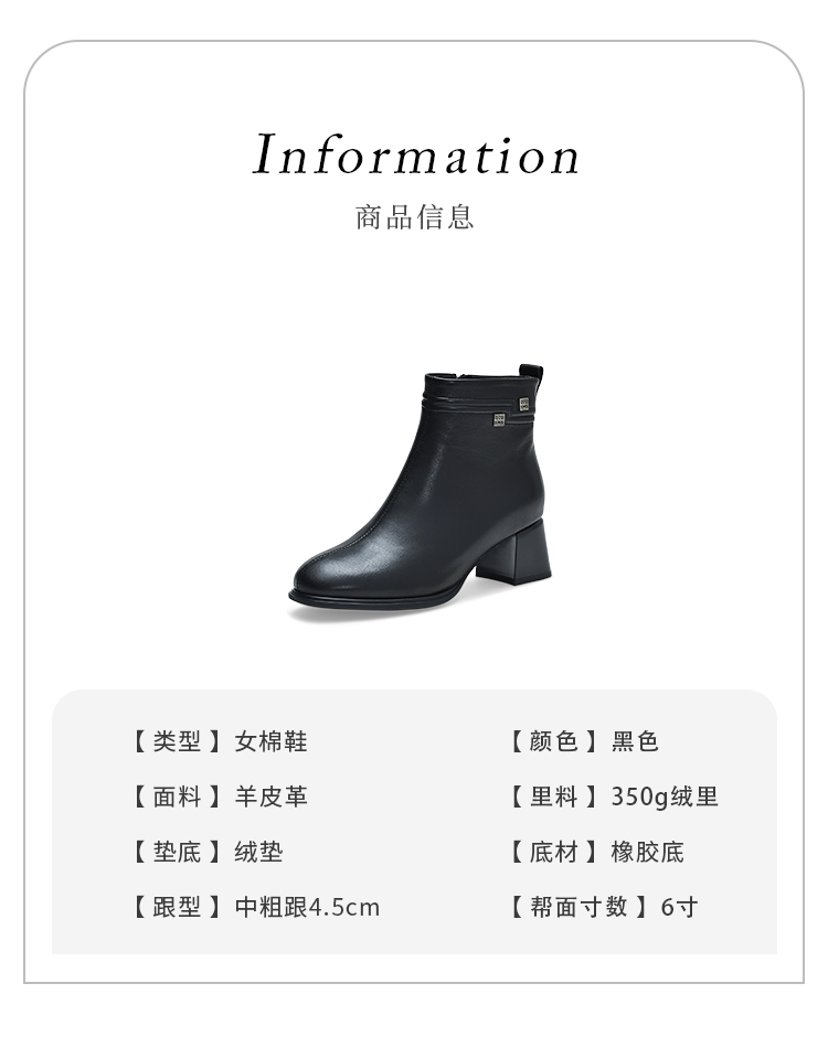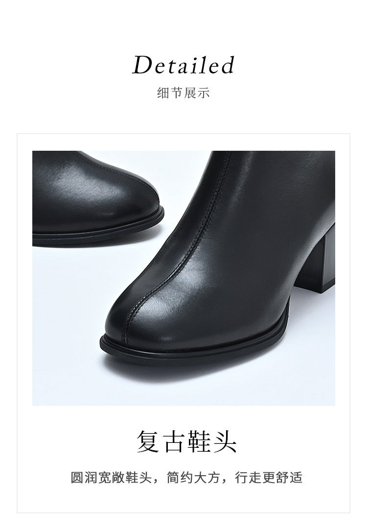 经典鲨2024年冬季新款百搭黑色侧拉链加绒中粗跟显瘦短靴女KD29-D58091