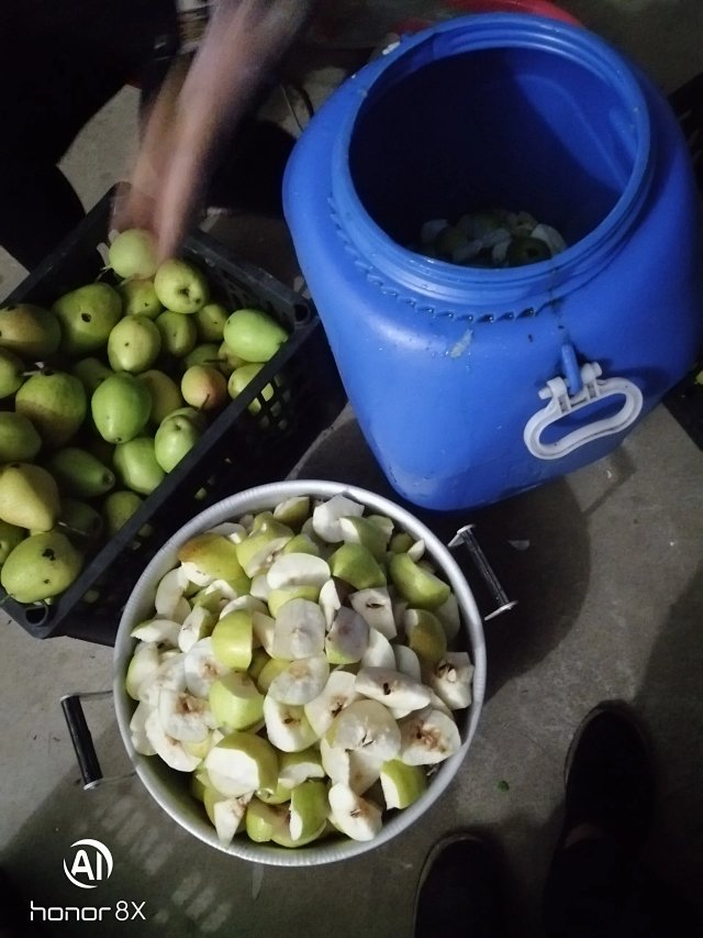 期间,每天投入到育地育树的工作中。满地石头,大如牛头,小如鸡卵,一条石堰一条石堰地垒,手套不知用烂多少双,满手老茧。用爱人的话:“你算卖给地里了“。2016年买了6只母羊目的是繁殖和积肥,2018年开始用EM菌做羊粪堆肥。2019年梨初果,在如朴门永续农耕群做首场拍卖,认识了广州荔湾义工郑启坚郑老师,10月25日拉俺去了灵珠阿姨的生态农耕2群,开始系统的学习酵素的制作,应用,扩培大神,堆肥,功能性酵素制作(一神八仙)从此爱上了酵素制作,痴醉于酵素生态种植。同群师兄广东茂名蜂蜜黄小军黄老师推荐上海生态达人储老师把俺推向了酵素人生的顶峰:陈光老师的生态农耕联盟,光荣加入联盟组织。