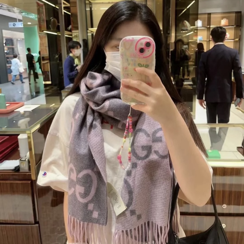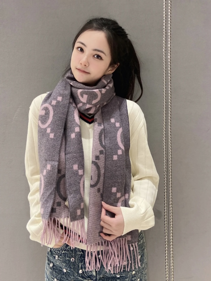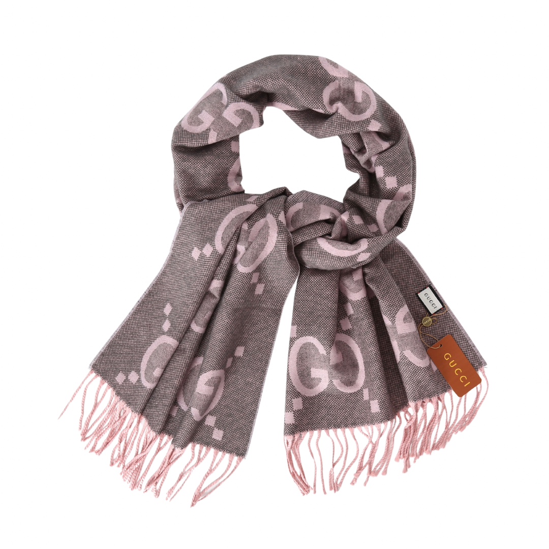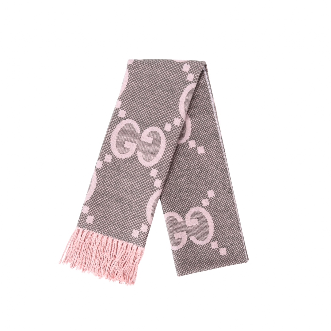 Gucci 古驰 灰粉色双面提花双面围巾🧣