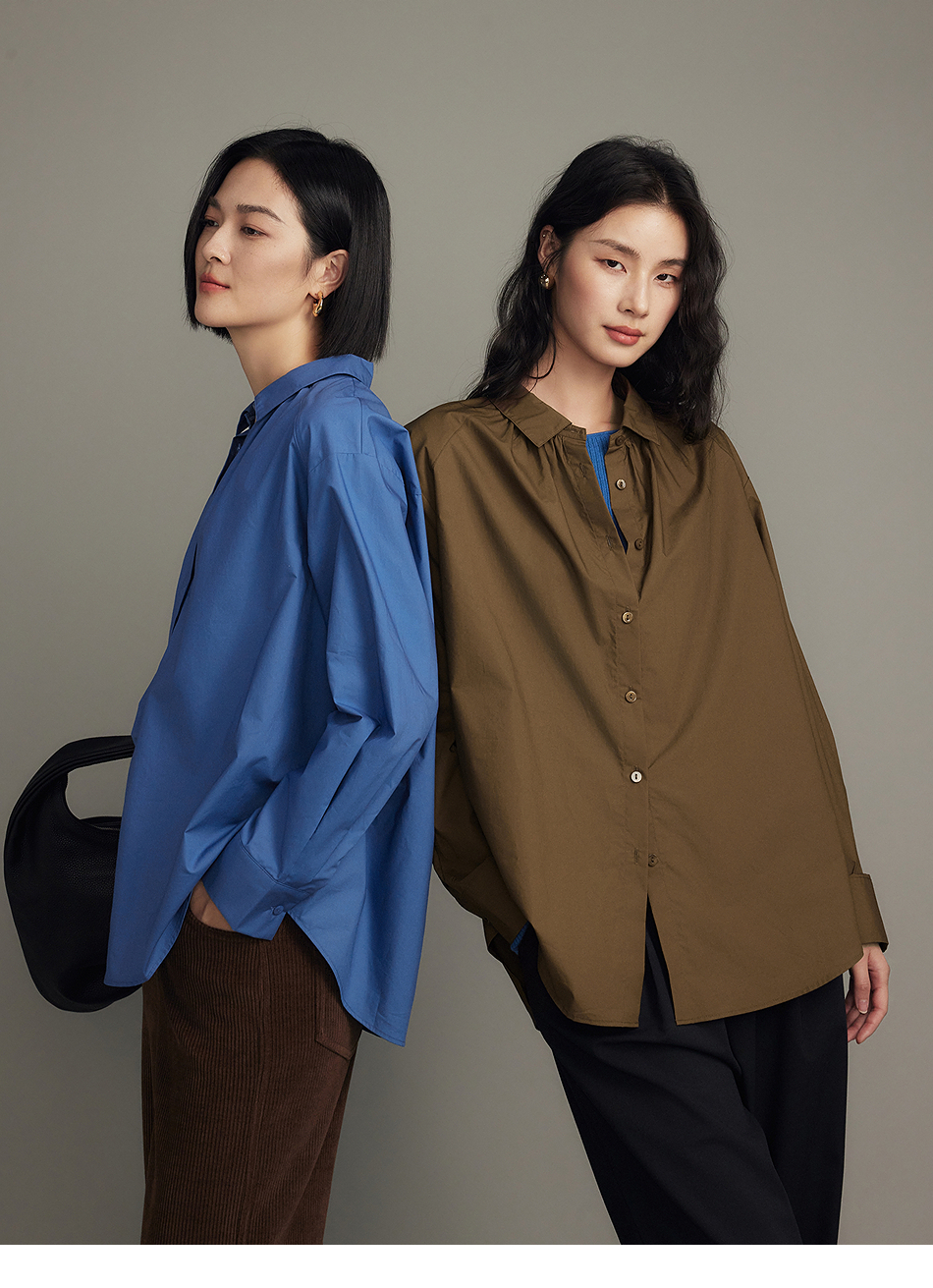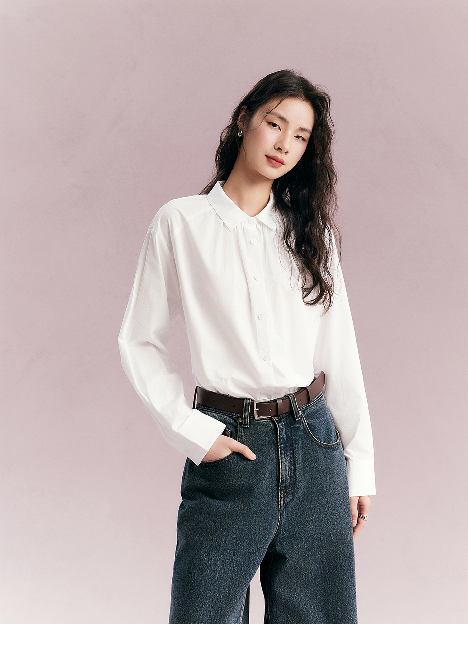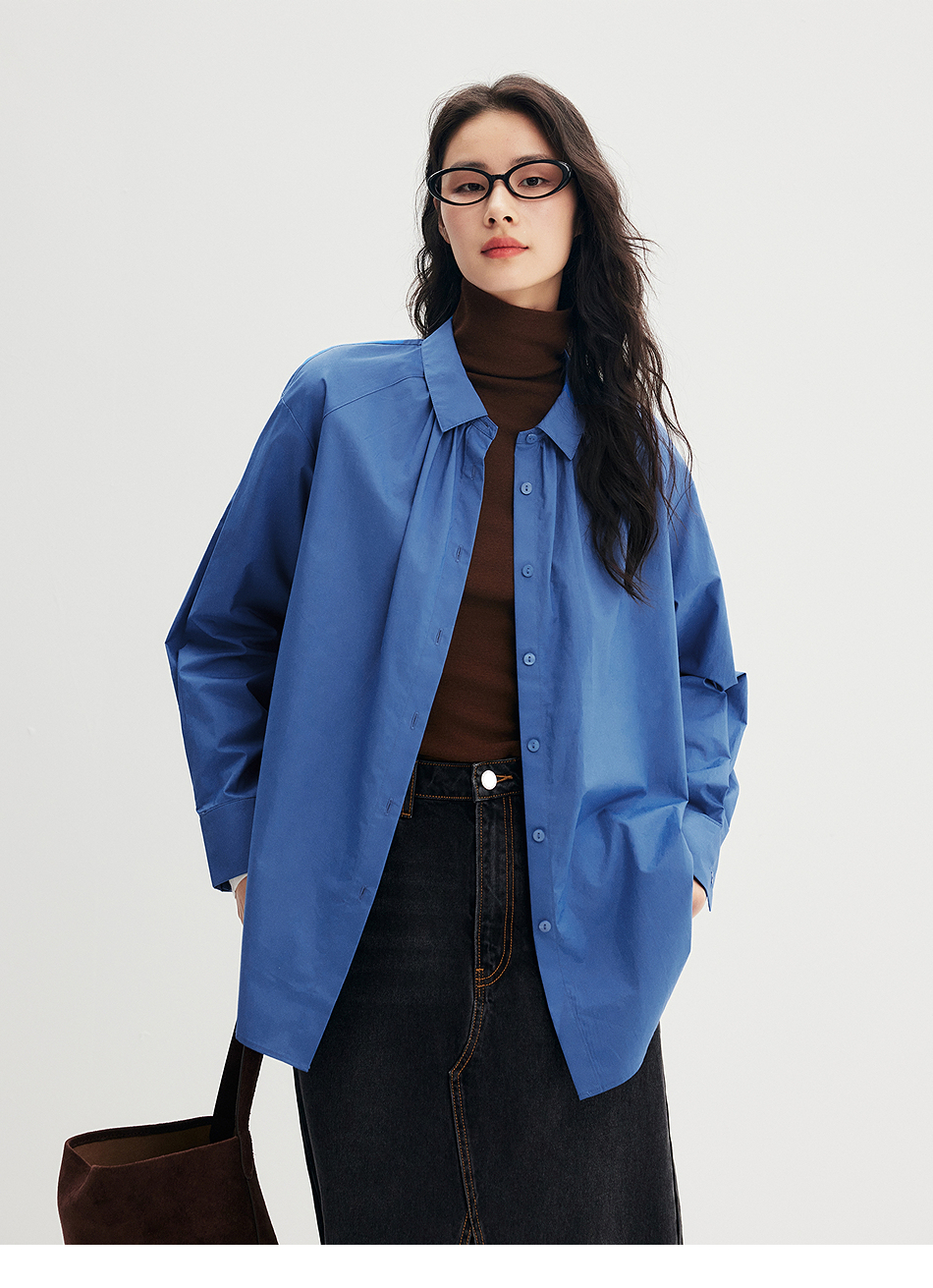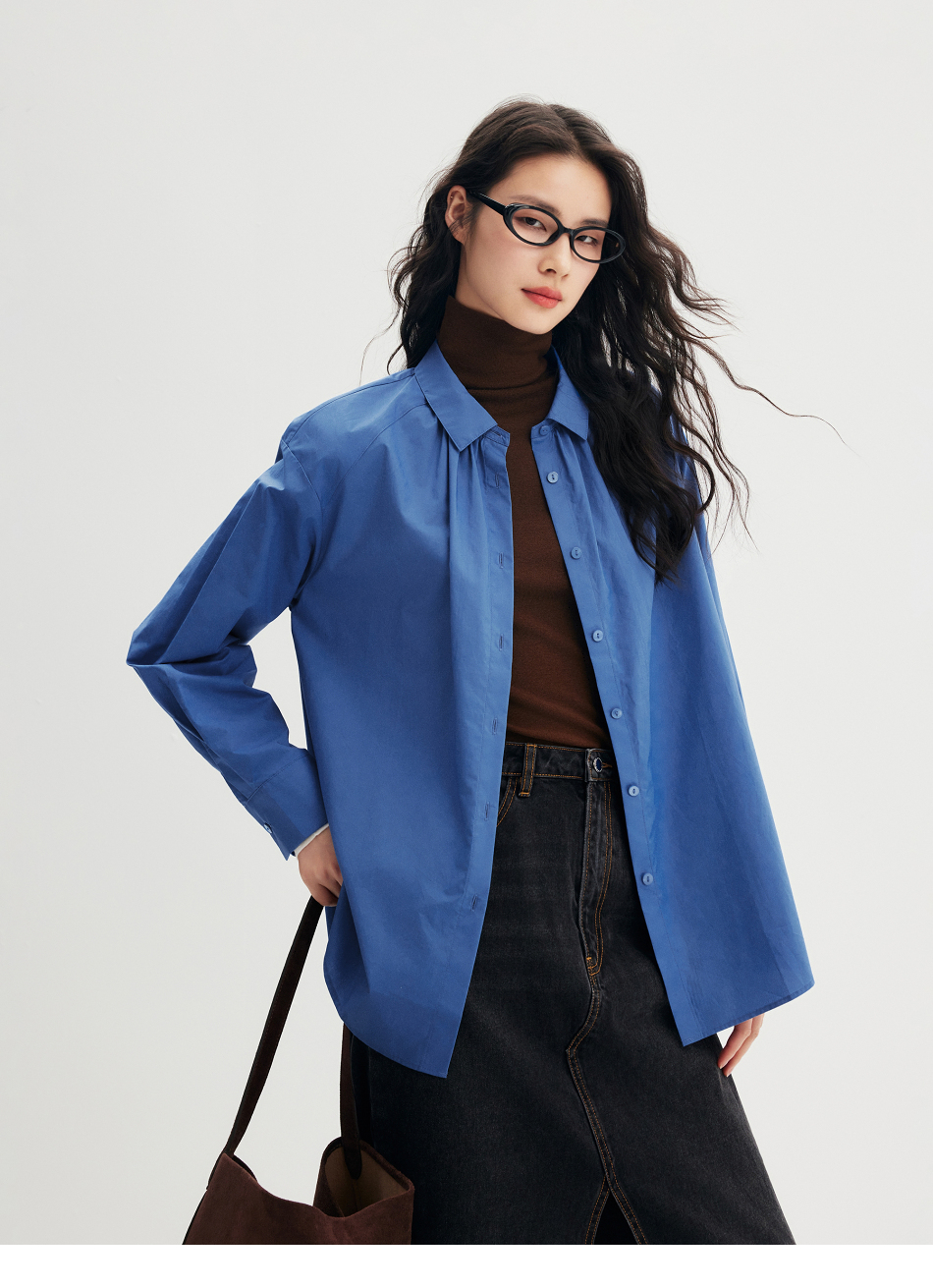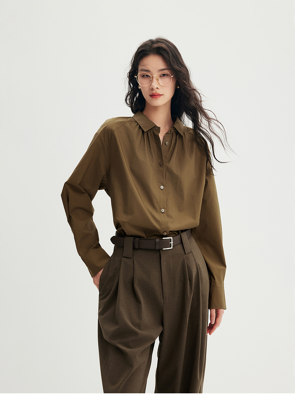 棉仓356604012-小方领碎褶纸质府绸衬衫