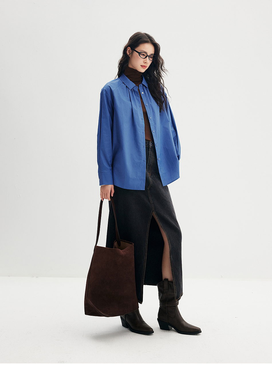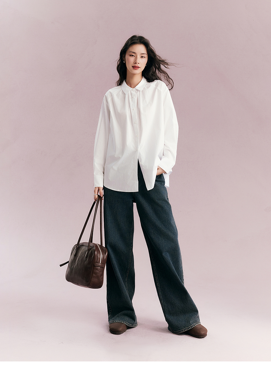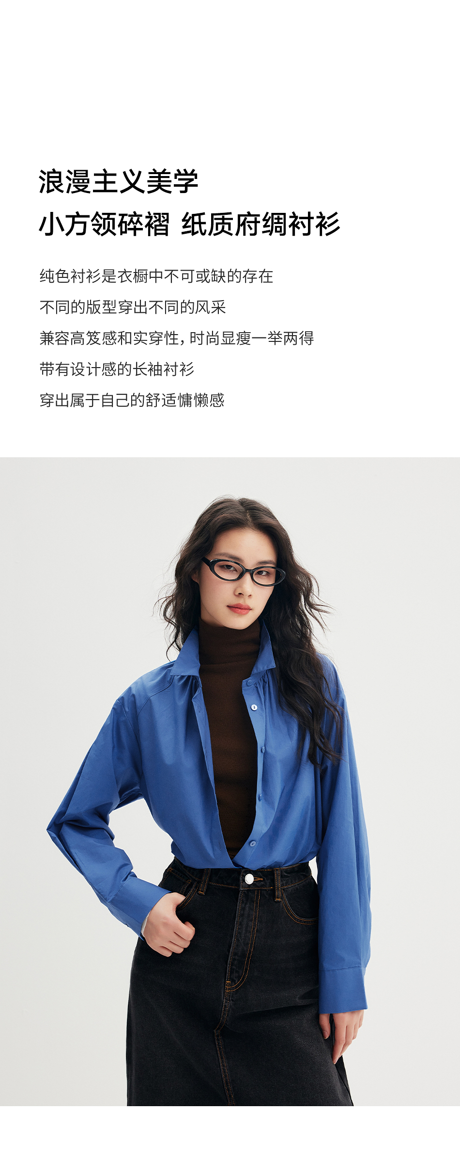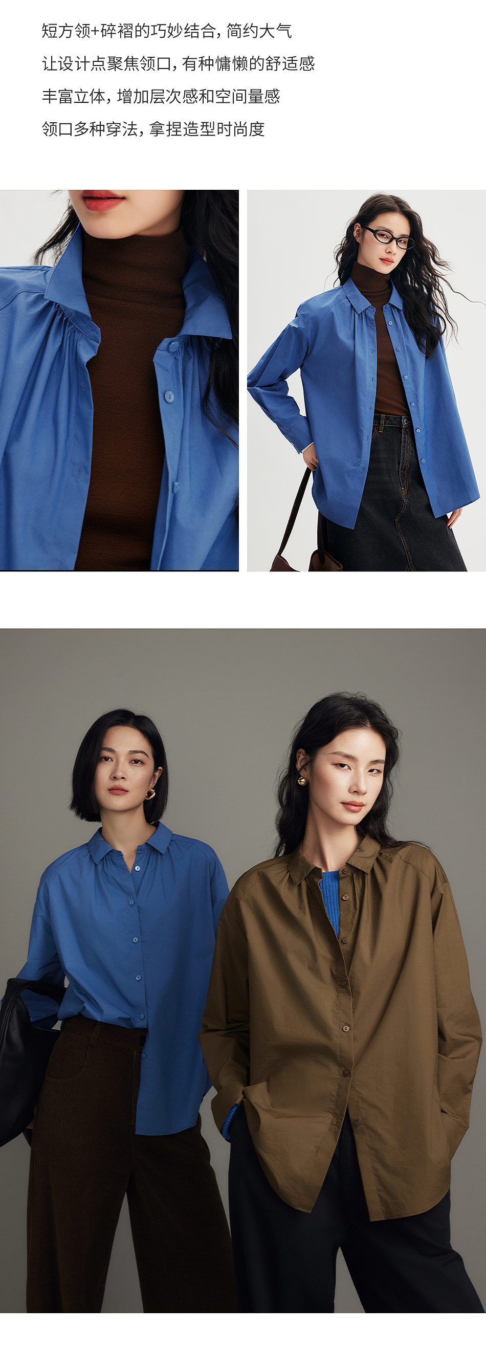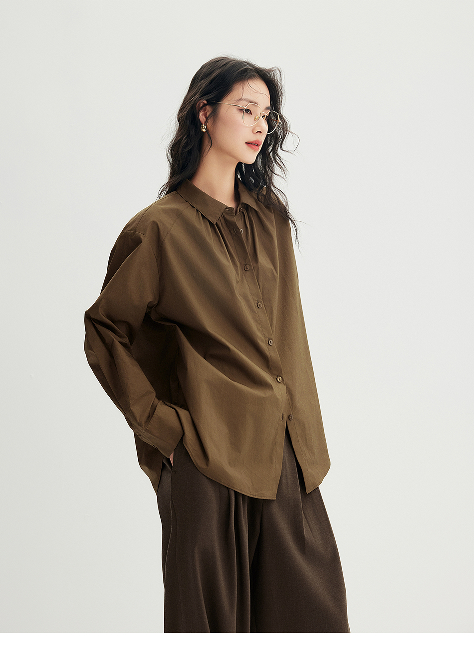 棉仓356604012-小方领碎褶纸质府绸衬衫