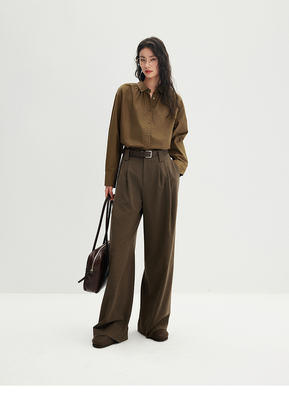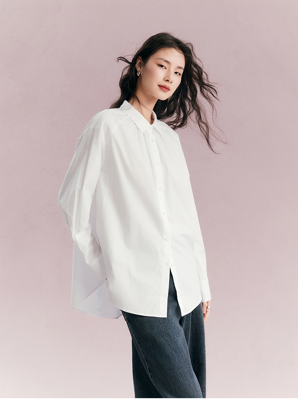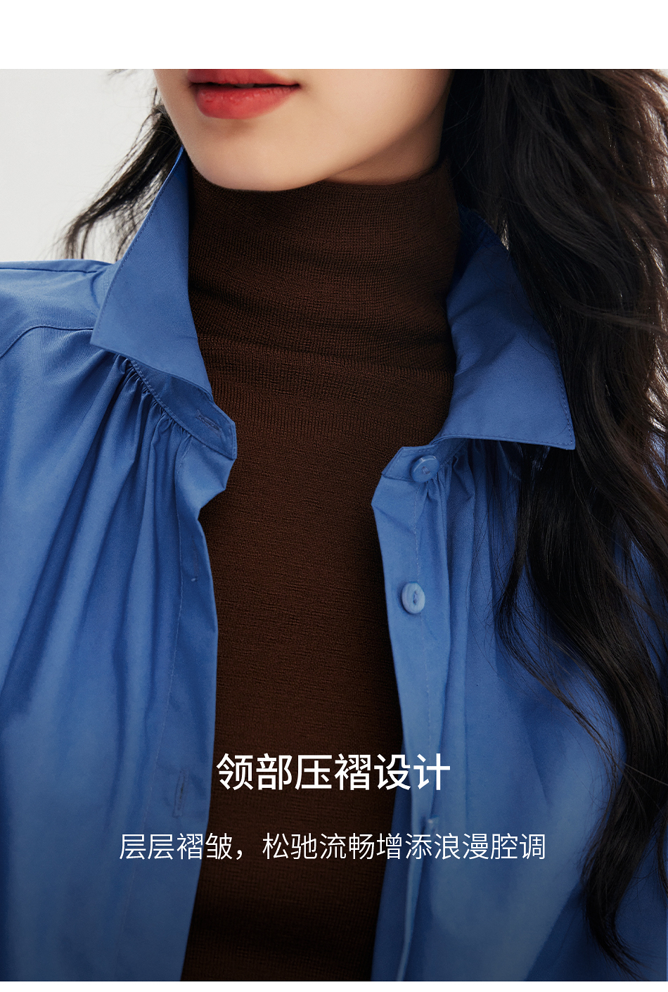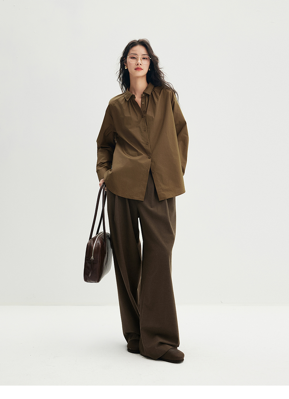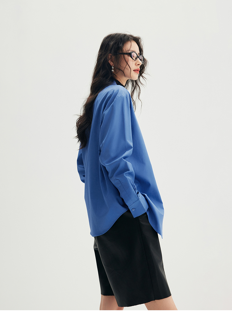 棉仓356604012-小方领碎褶纸质府绸衬衫