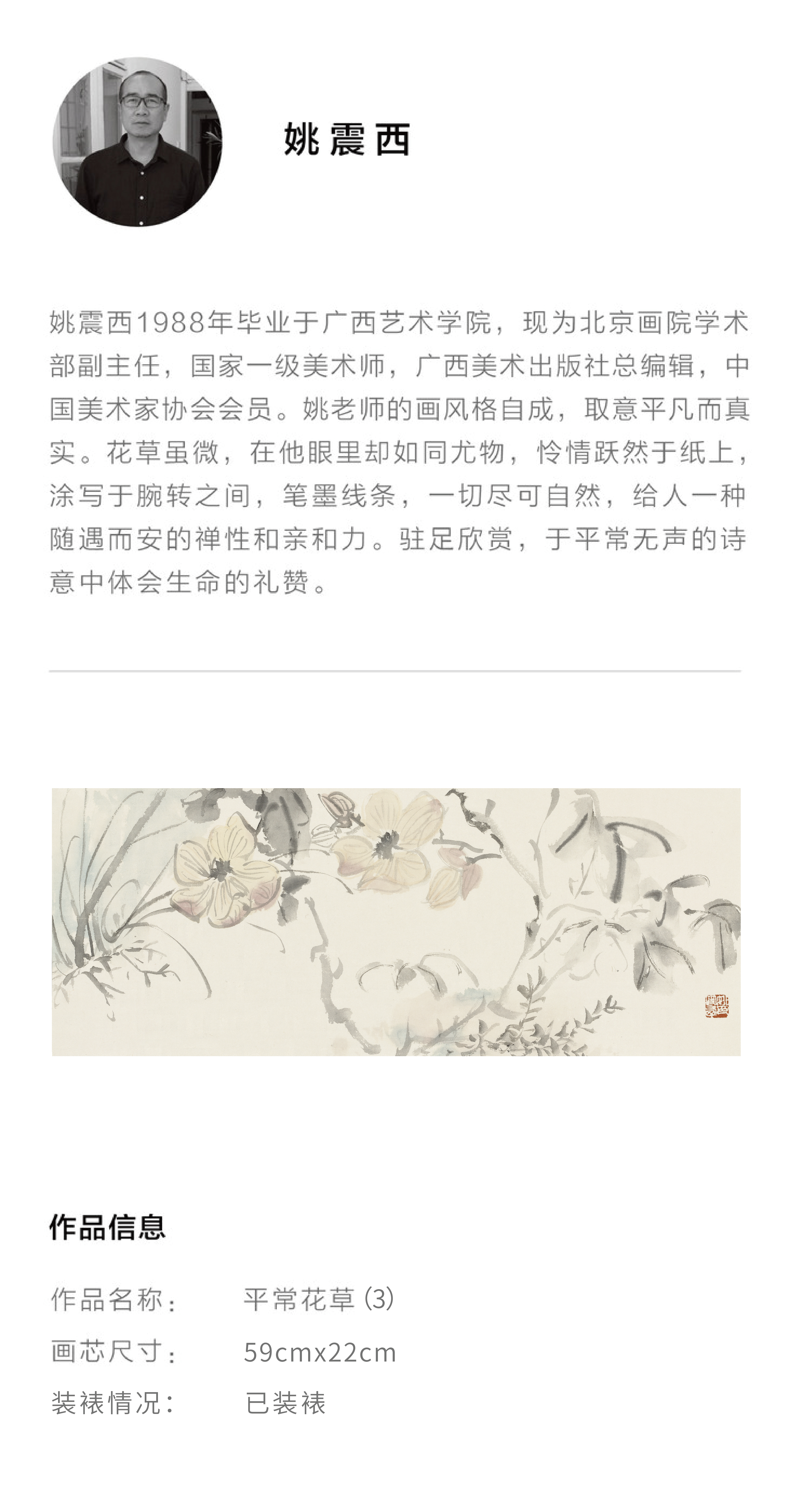 姚震西《平常花草3》/画芯尺寸59*22cm/已装框
