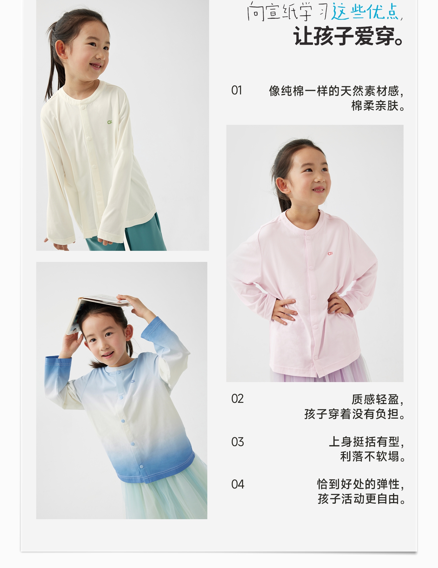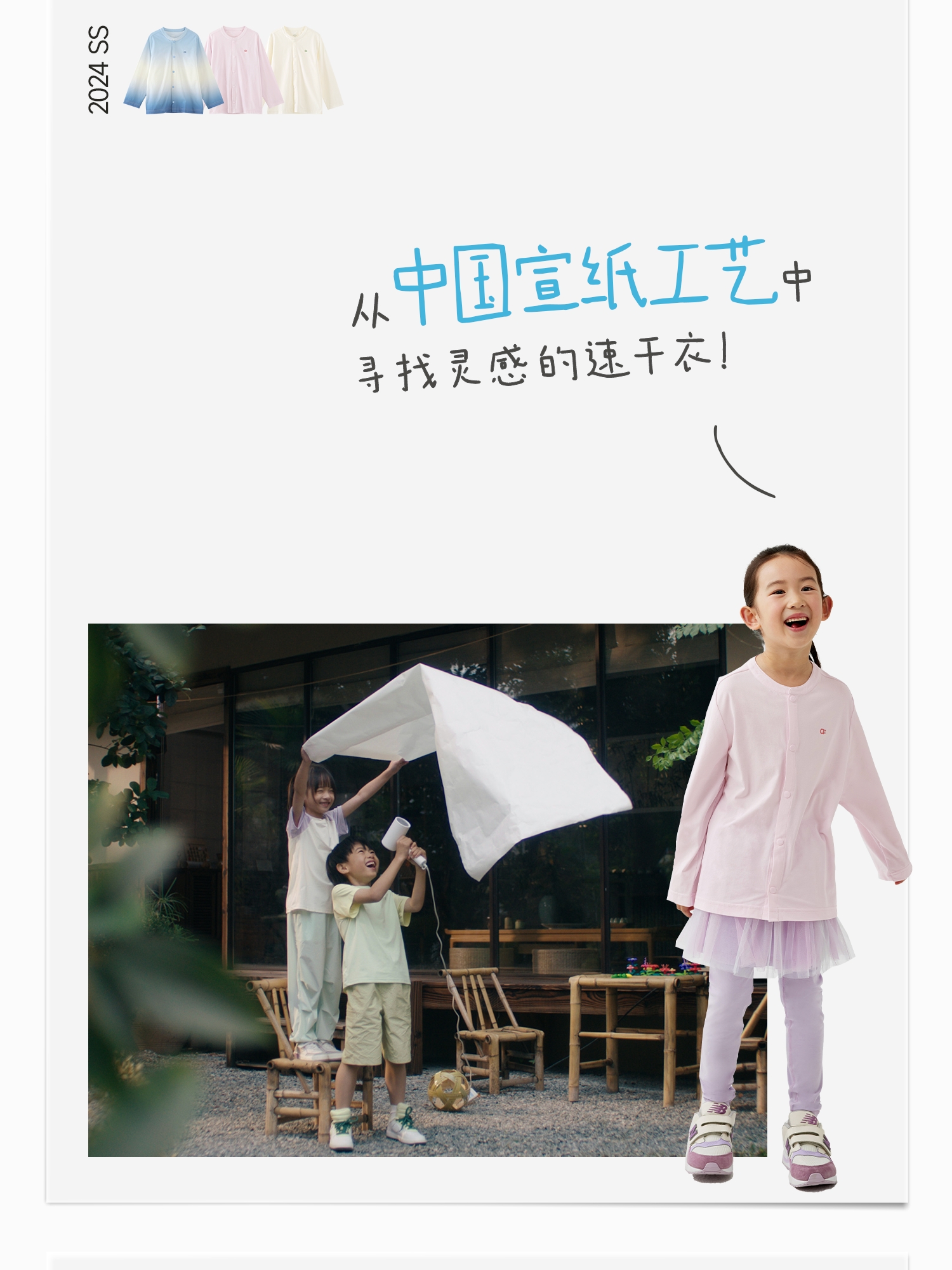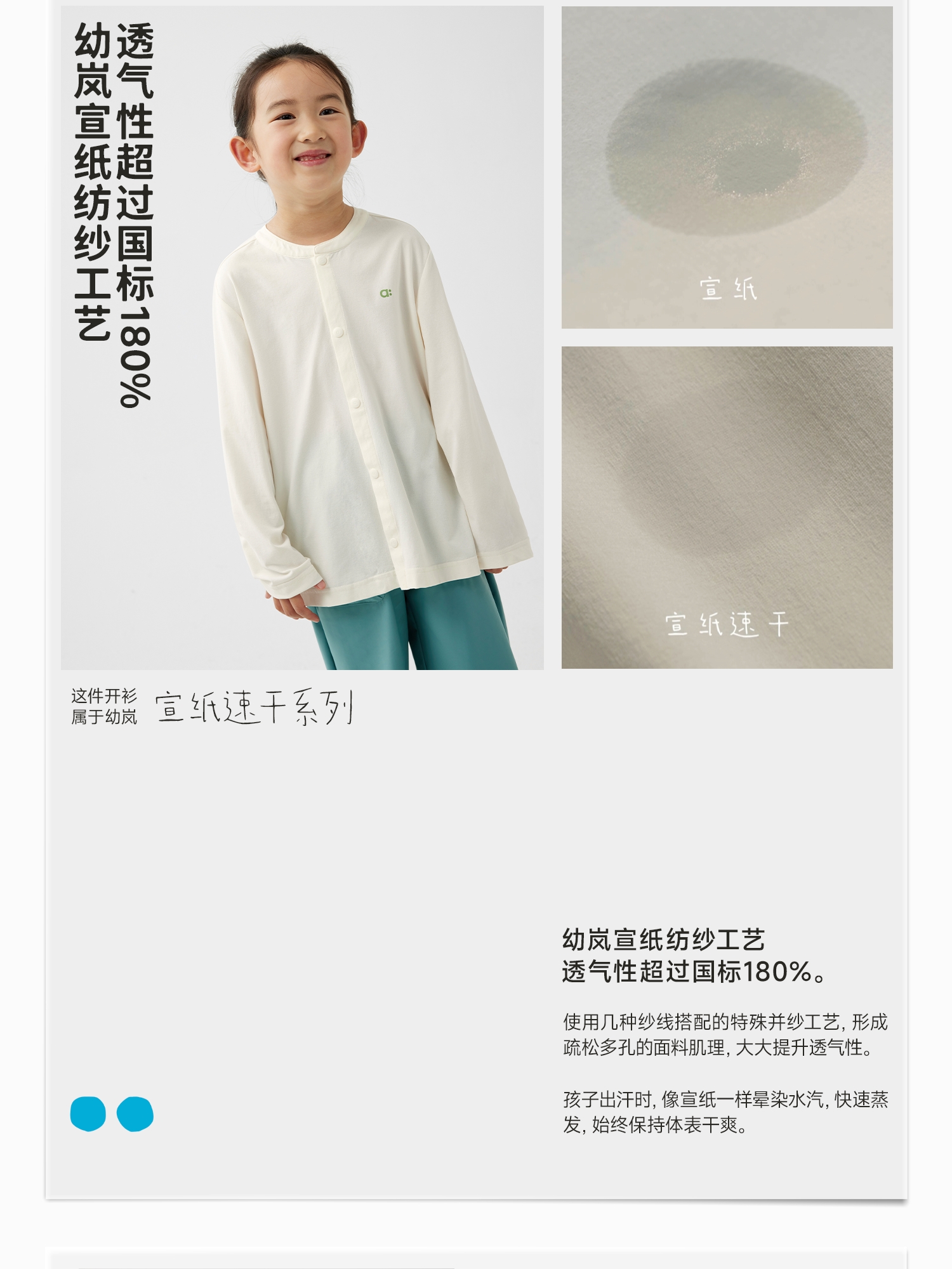【8月焕新】幼岚「宣纸速干」柔软亲肤速干儿童T恤开衫24春季新款儿童外套ZY