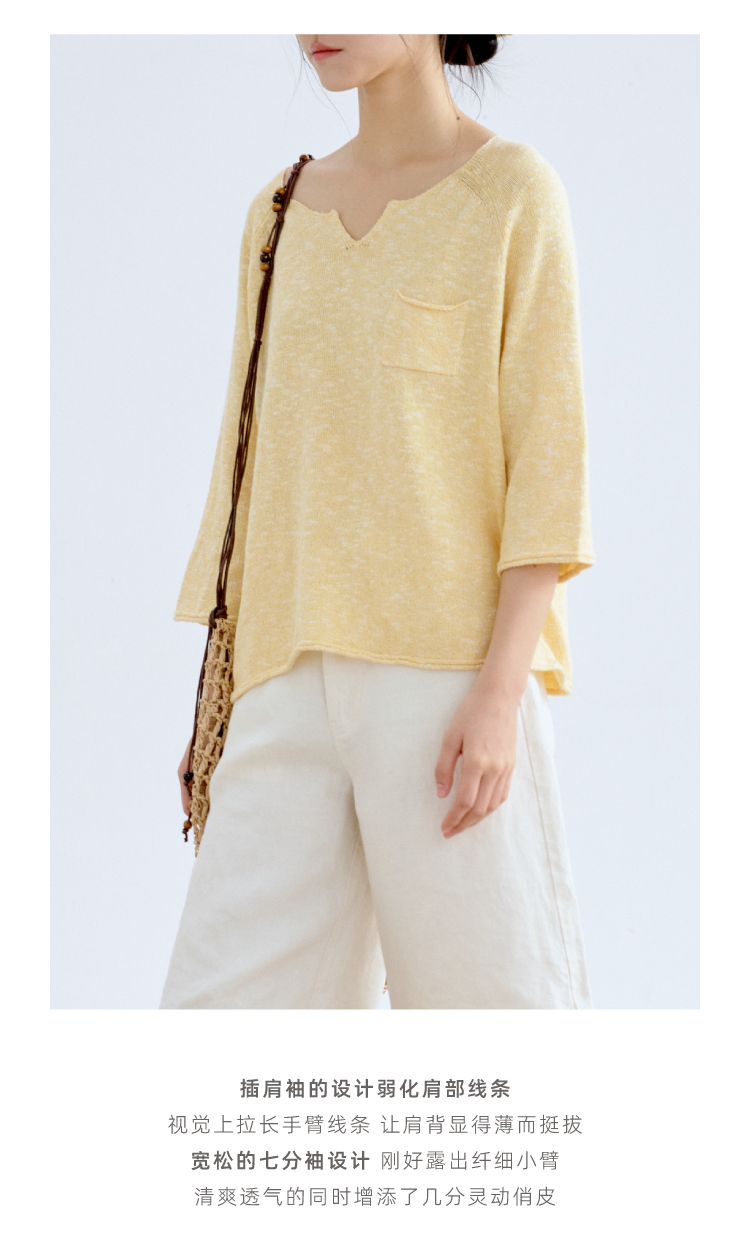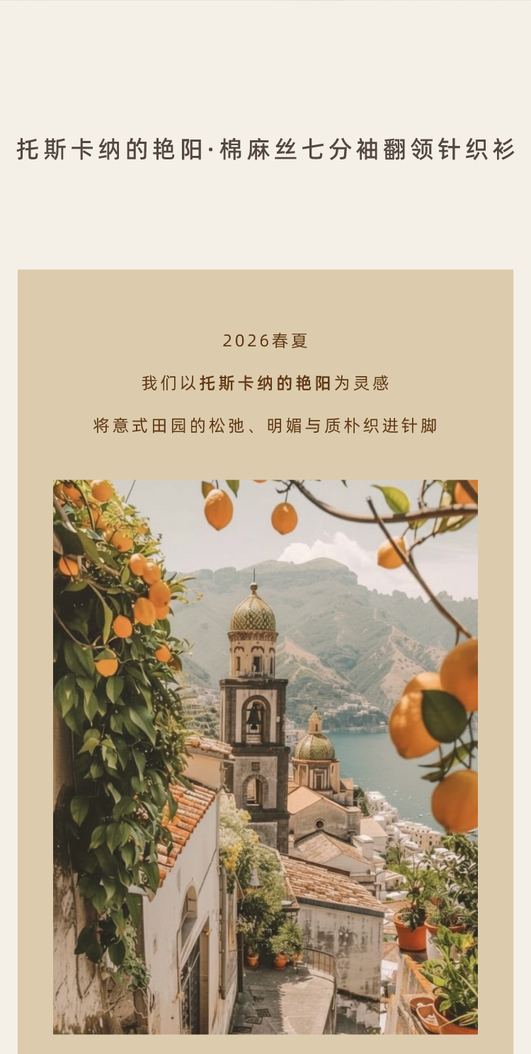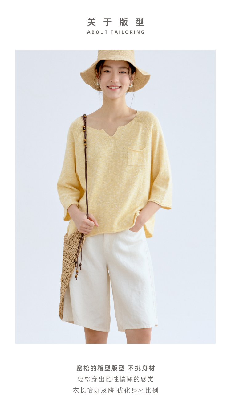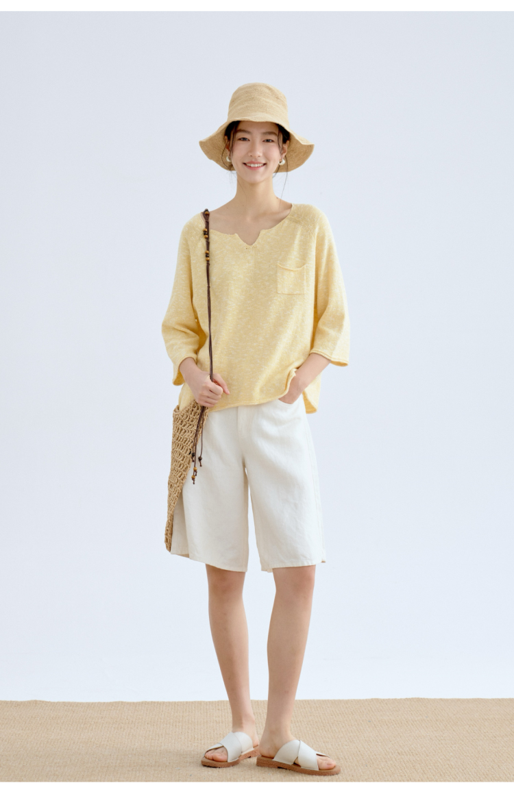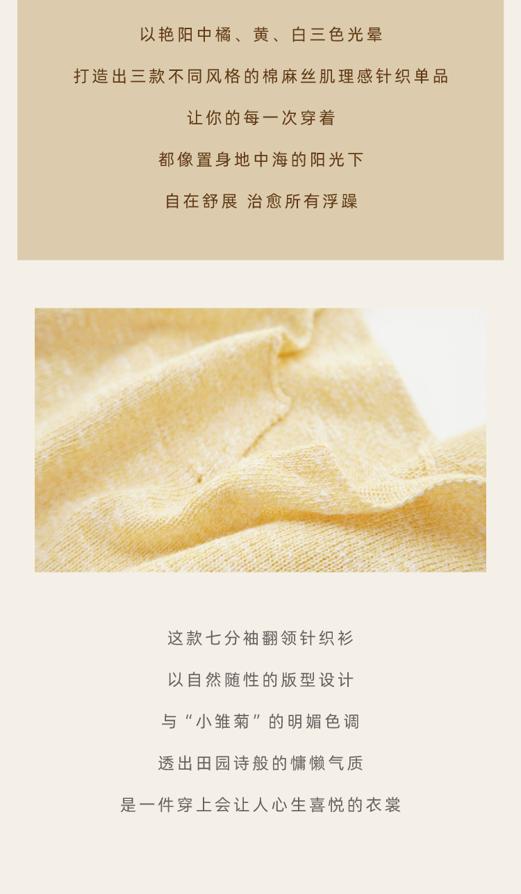 托斯卡纳的艳阳·棉麻丝七分袖翻领针织衫