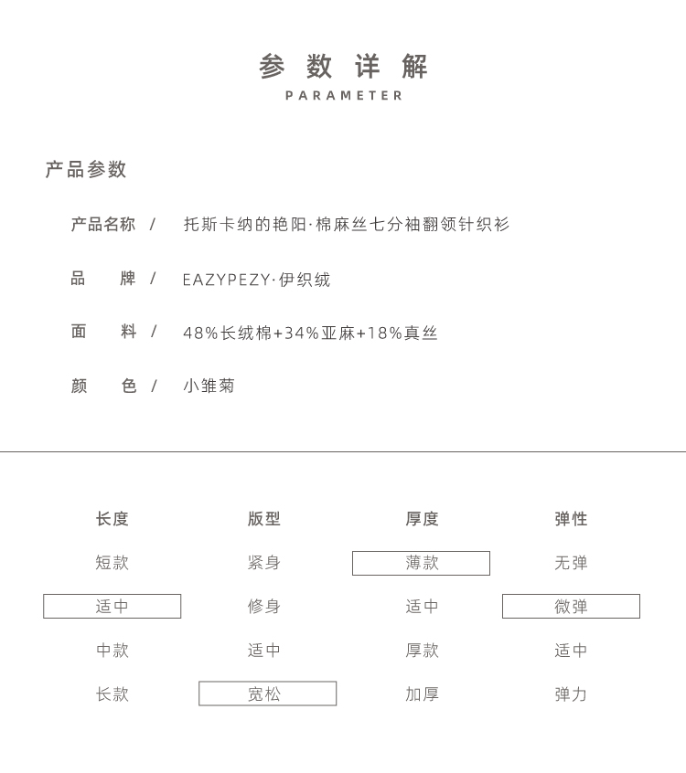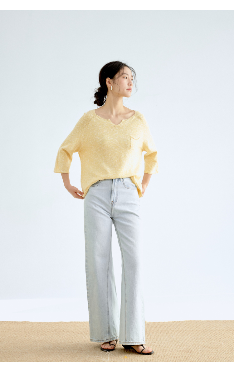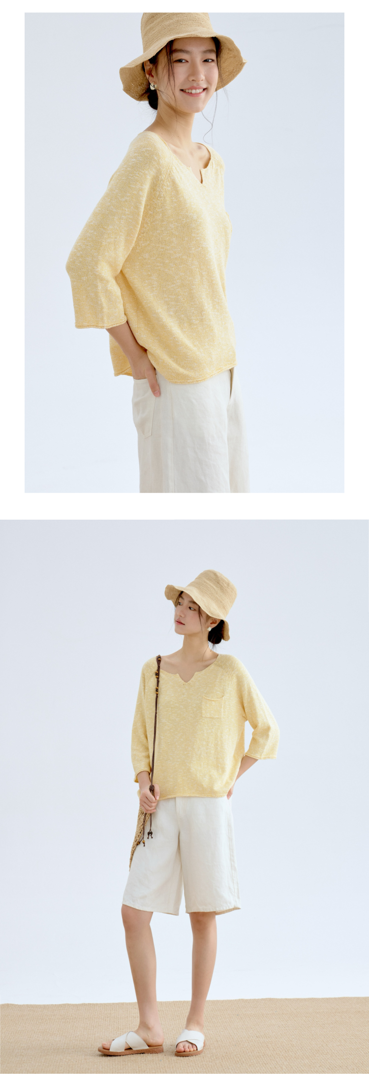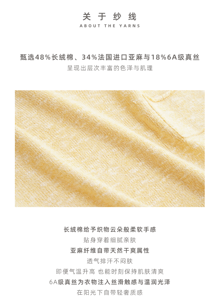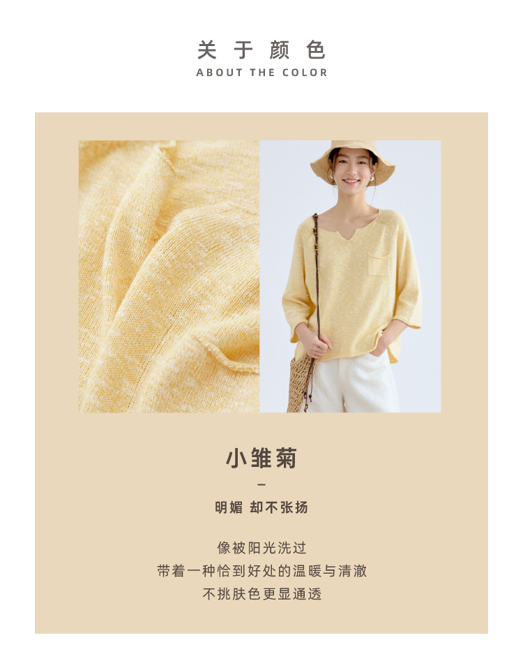 托斯卡纳的艳阳·棉麻丝七分袖翻领针织衫