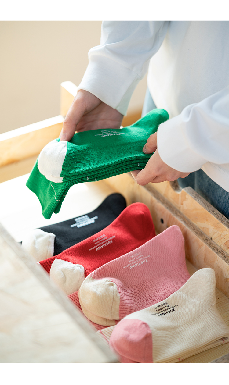 靴下物薄款棉质坑条撞色条纹运动透气中筒袜白搭堆堆袜