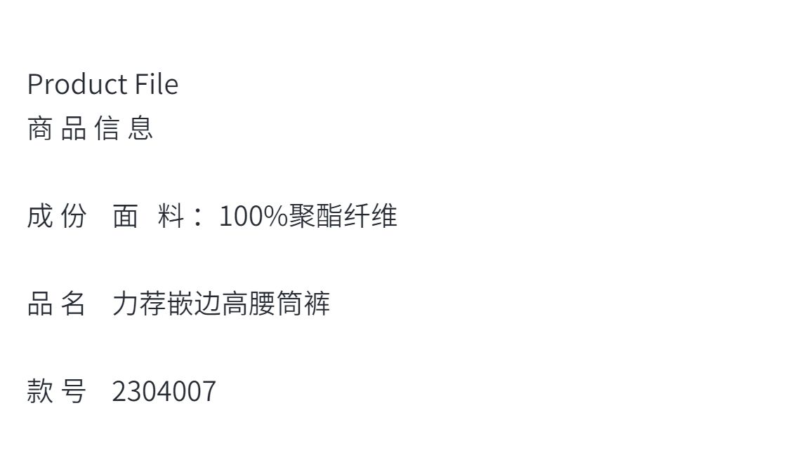 力荐—通勤气质时尚休闲嵌边高腰女士筒裤 2304007