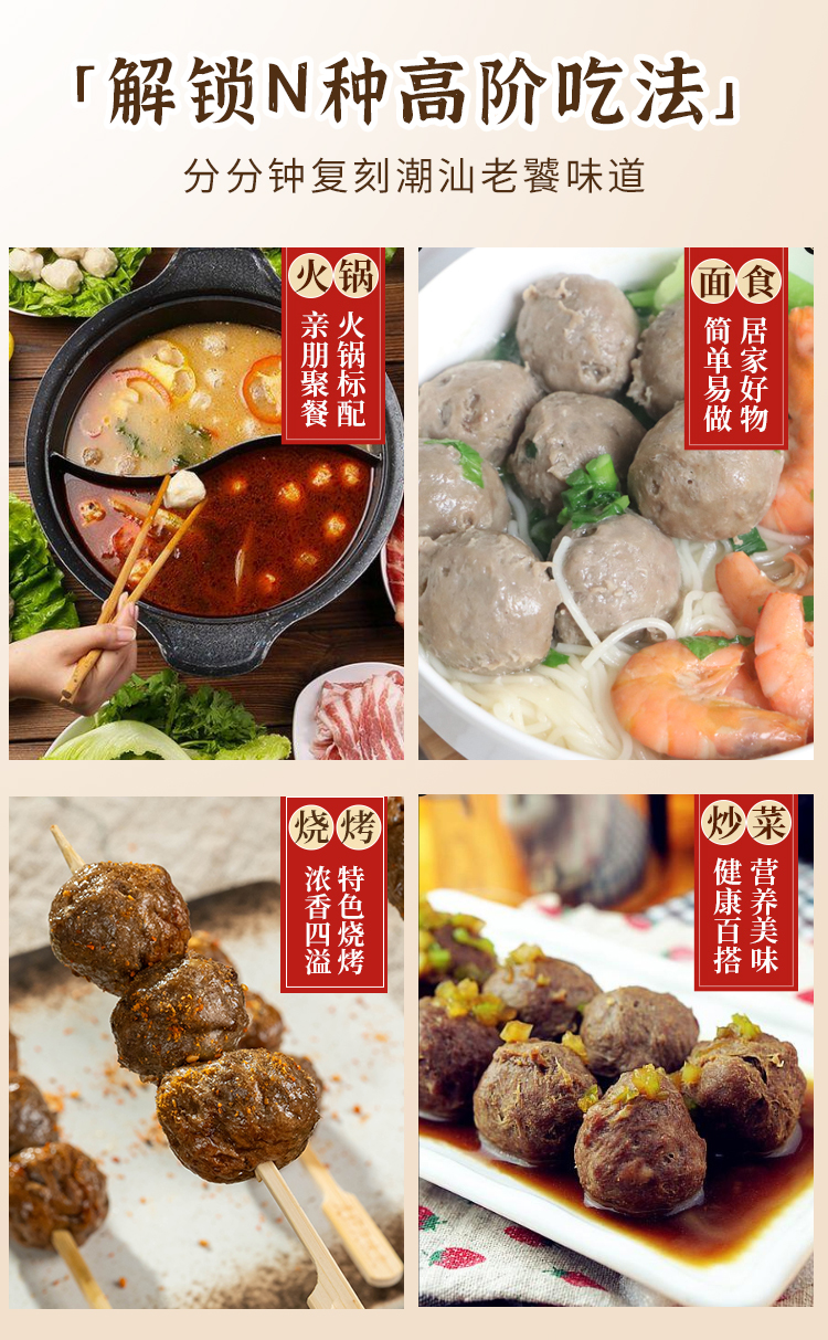 潮汕牛筋丸/黑虎虾虾滑丨潮汕传统味道,定制款鲜牛肉含量高达90%,肉质紧实,饱满多汁,无添加剂,可蒸煮炖烤;黑虎虾虾滑鲜美弹脆,黑虎虾仁含量≥95%,无腥味,煎炸炖煮涮皆可⭐️顺丰快递