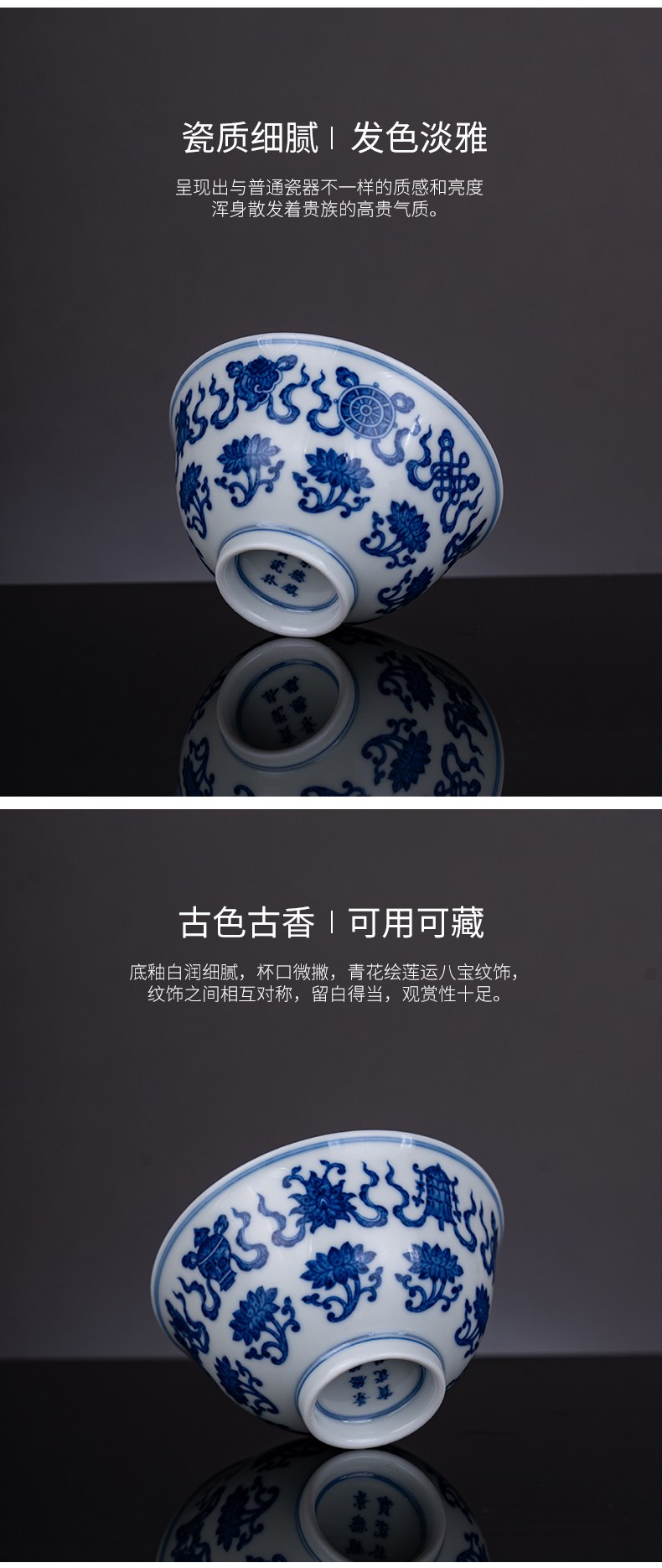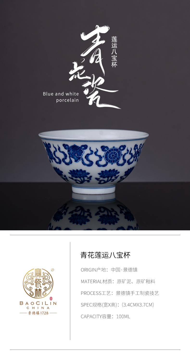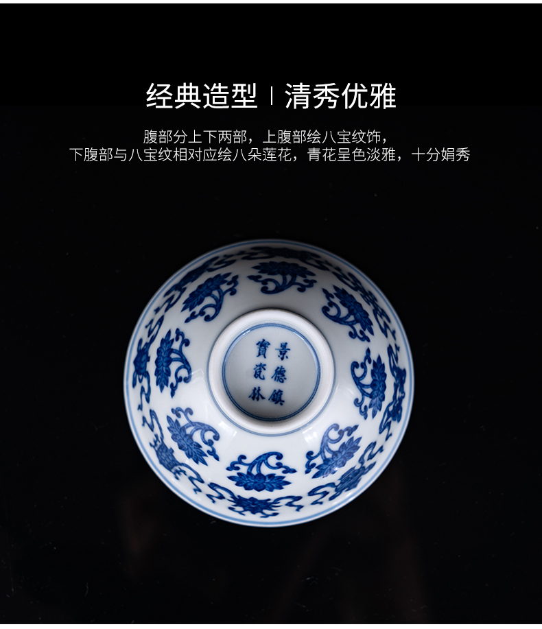 青花莲运八宝杯