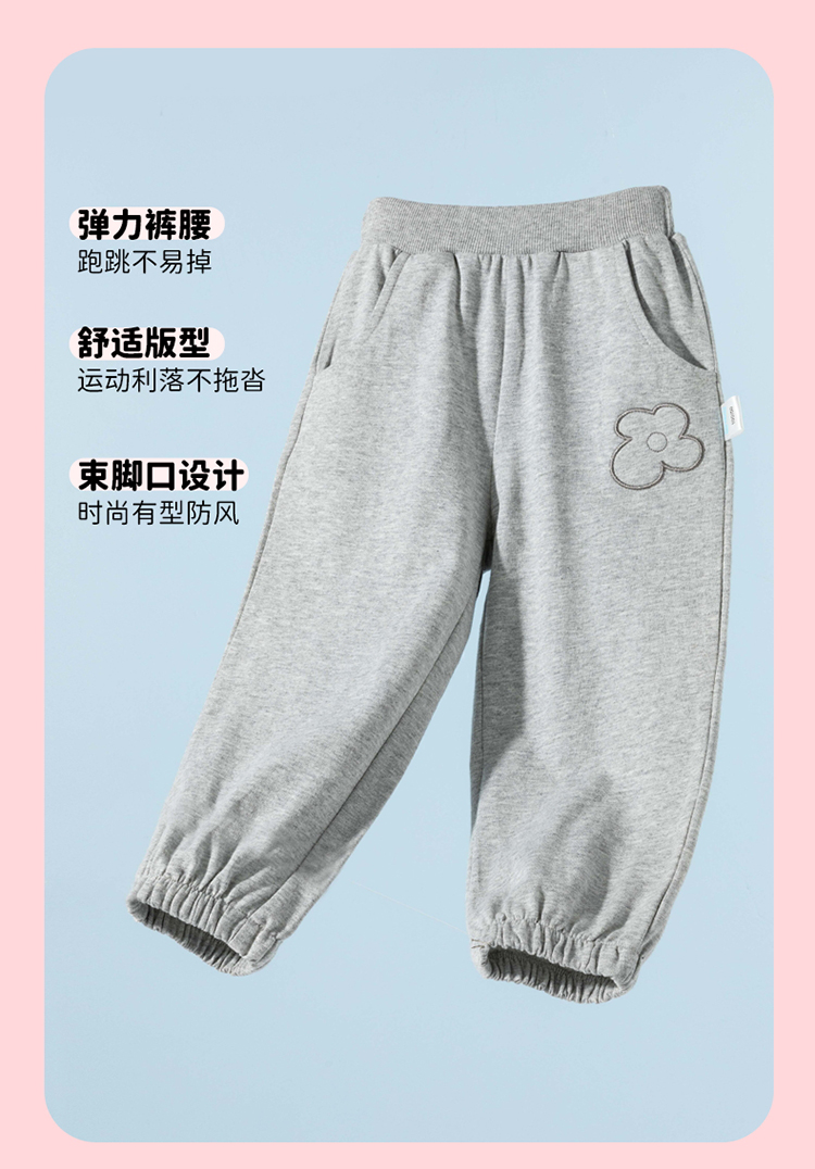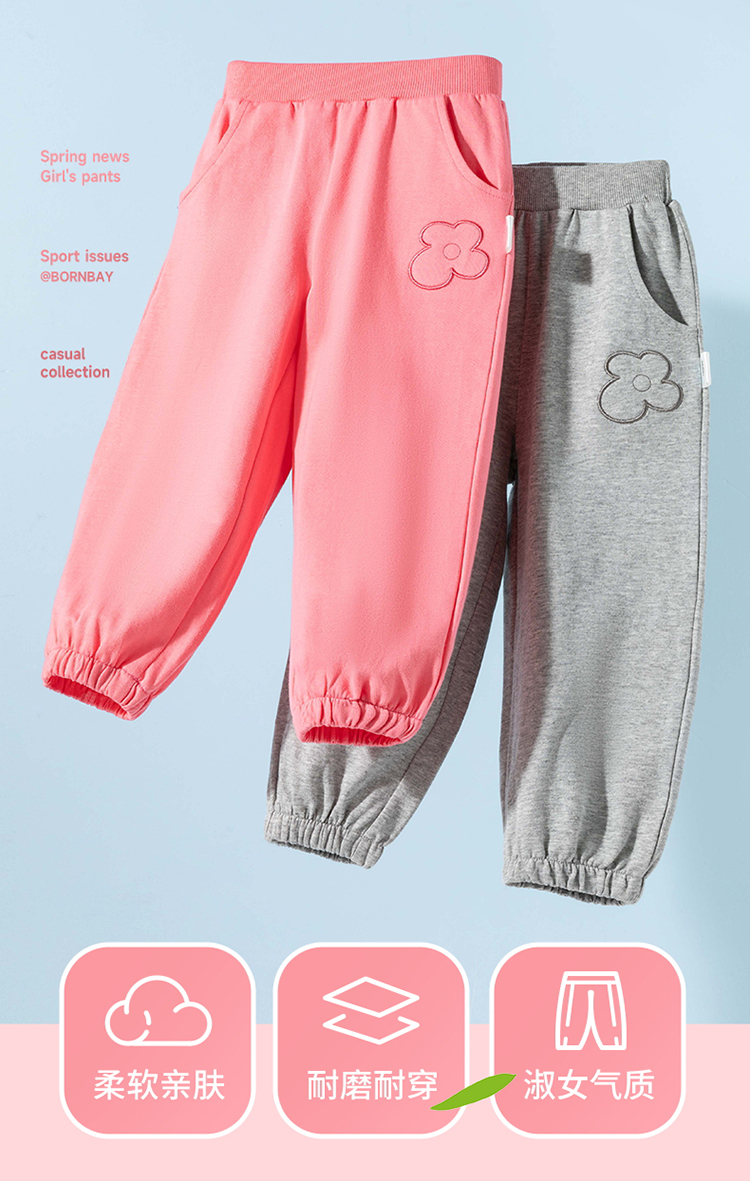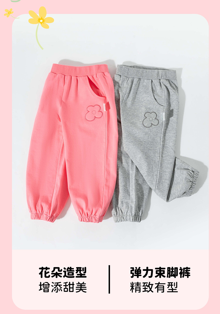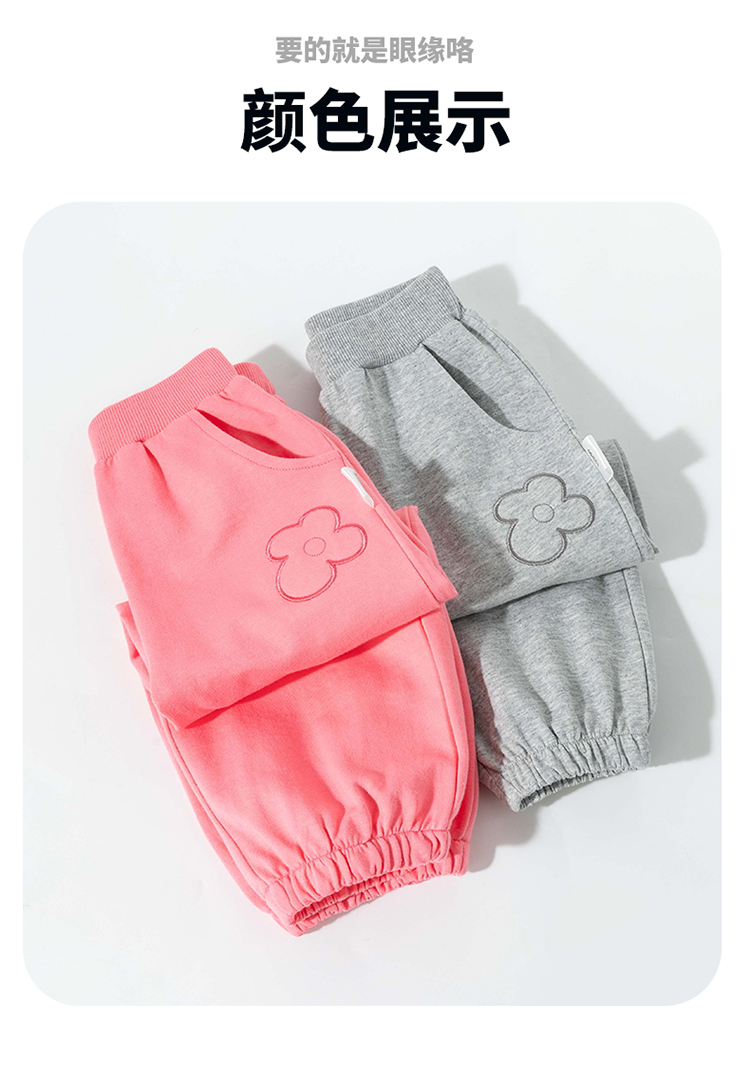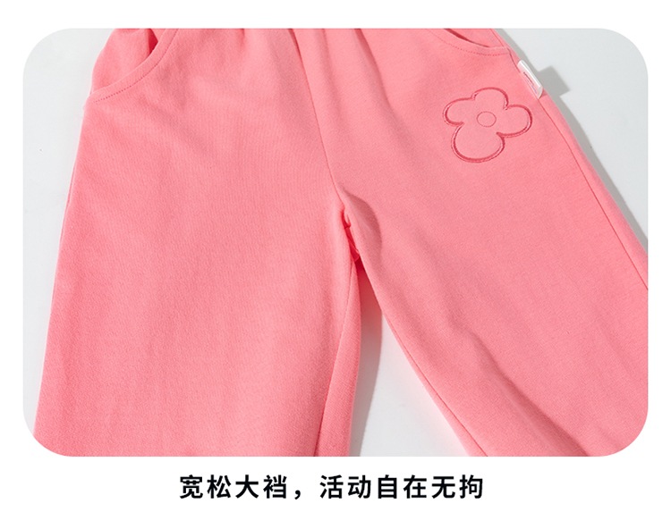 2025春季新款女童长裤时尚刺绣花朵休闲裤子儿童纯棉运动卫裤