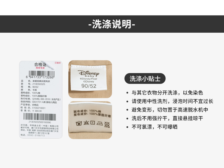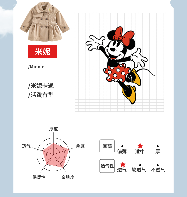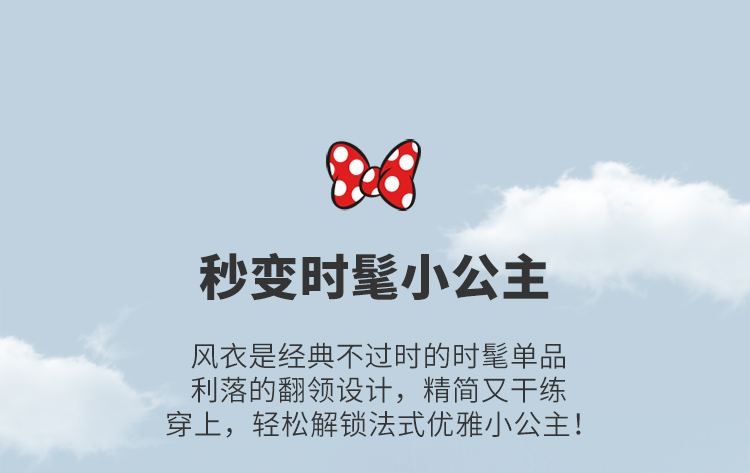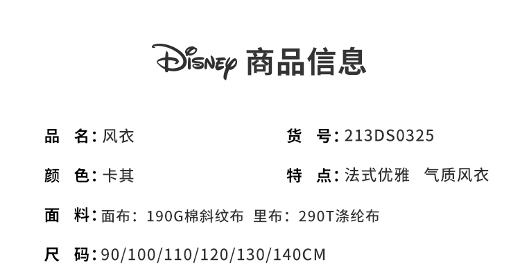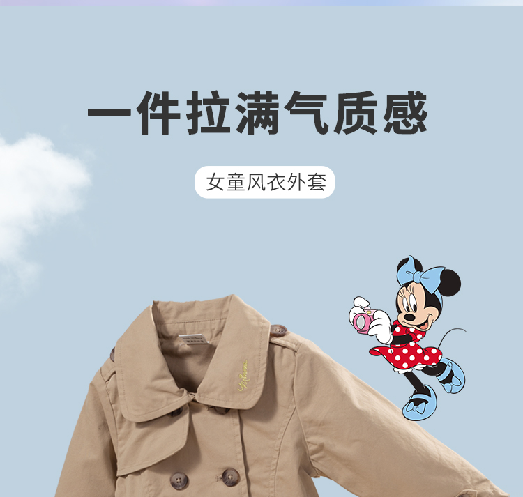 【商场同款】迪士尼童装女童风衣春秋季中大童女孩宝宝法式优雅中长款外套213DS0325