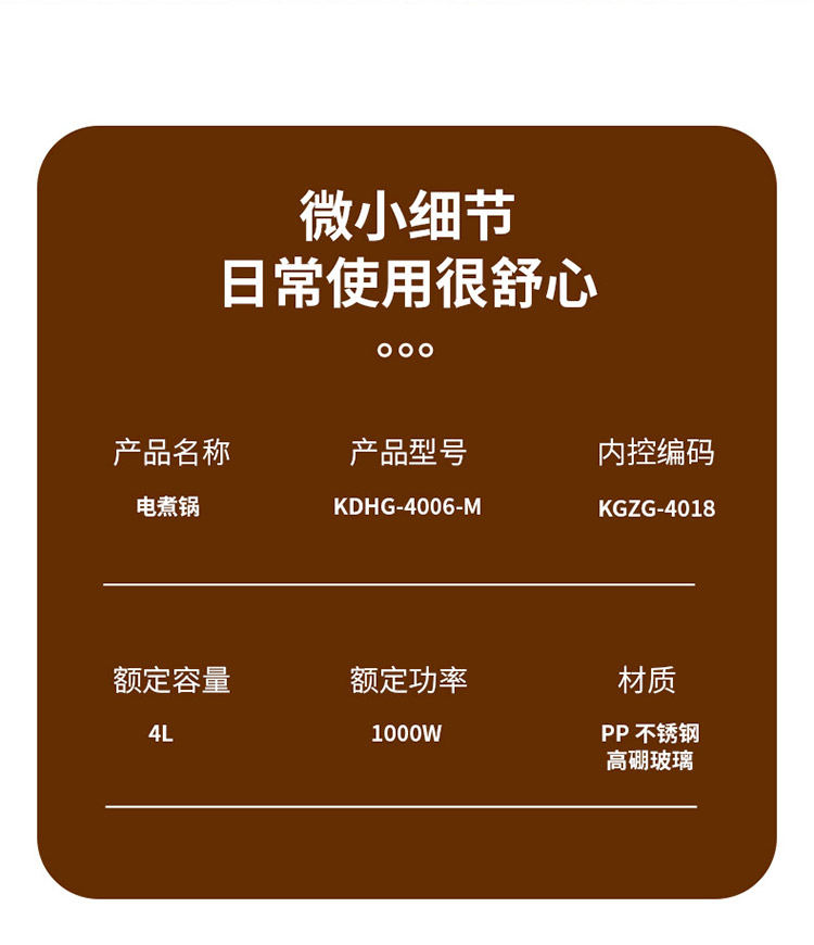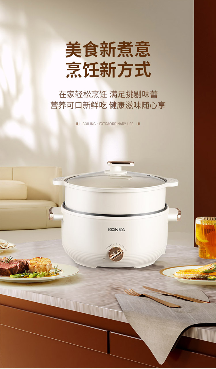 康佳液体加热器(电煮锅)KGZG-4018 4L 带蒸笼
