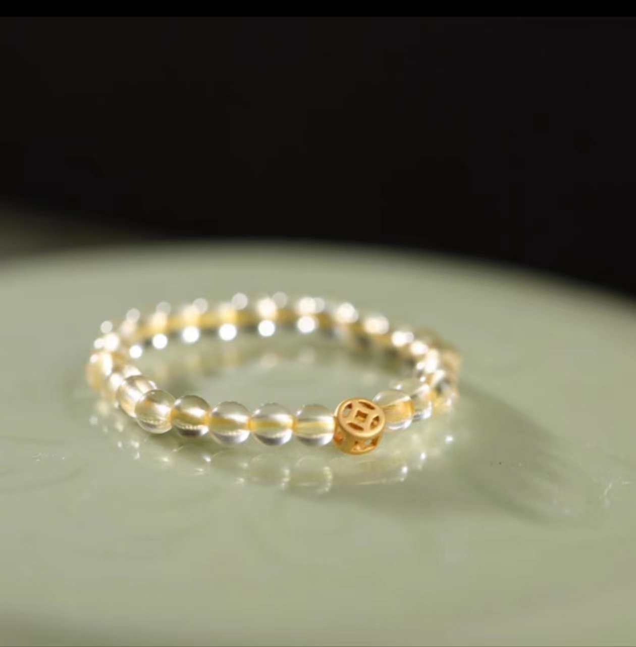 灵机生活馆 黄水晶金银满仓手链 五路财神金发晶黄水晶手串