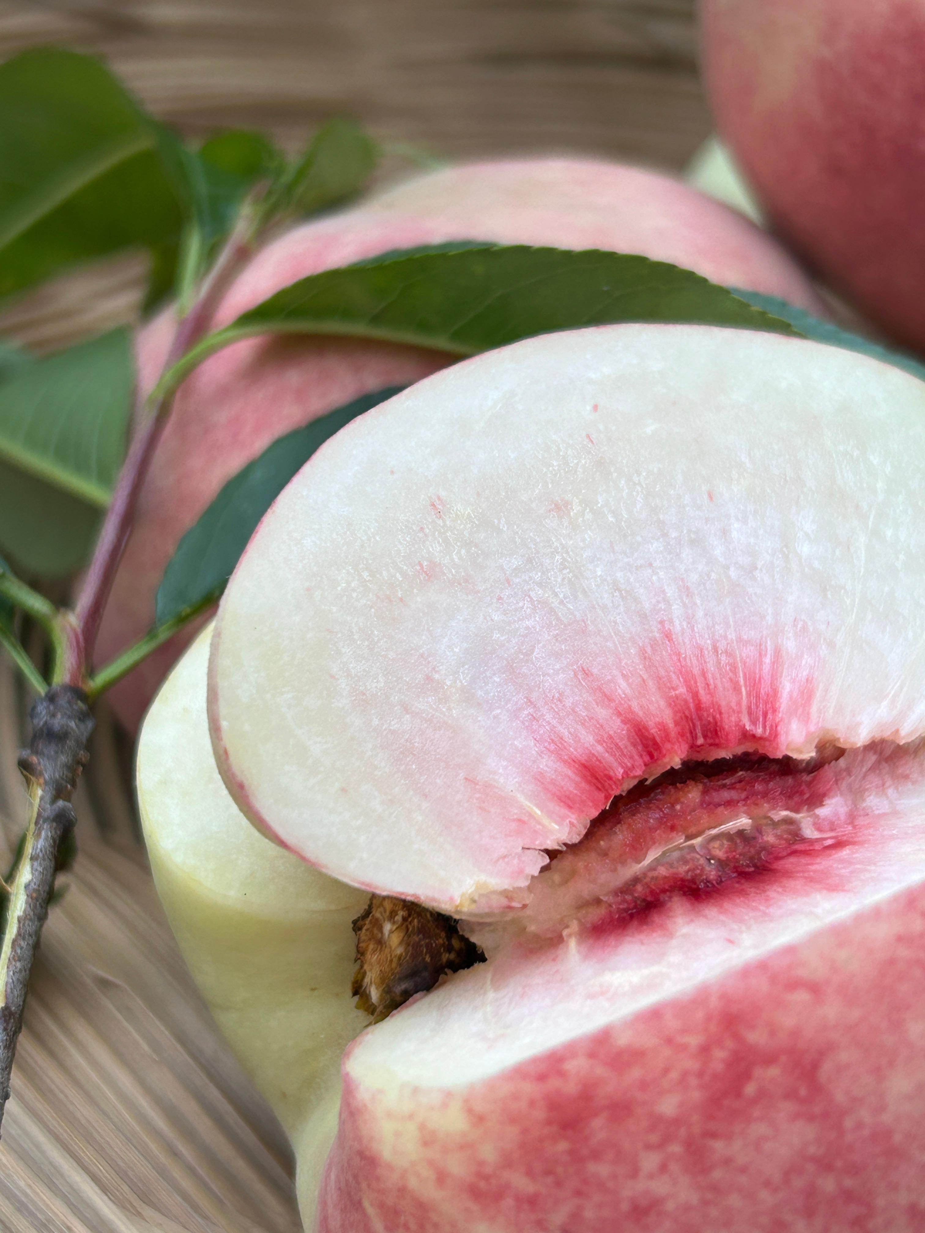 🍑【品尝那一刻】一颗大理雪桃生长周期需要200天,是普通桃的2倍,长成后灿若烟霞,形如仙桃,果色,果肉雪白,脆而香甜。